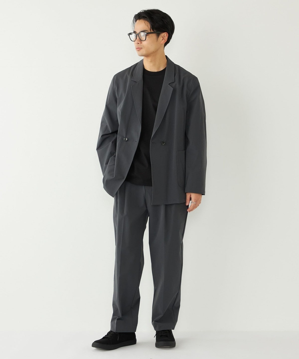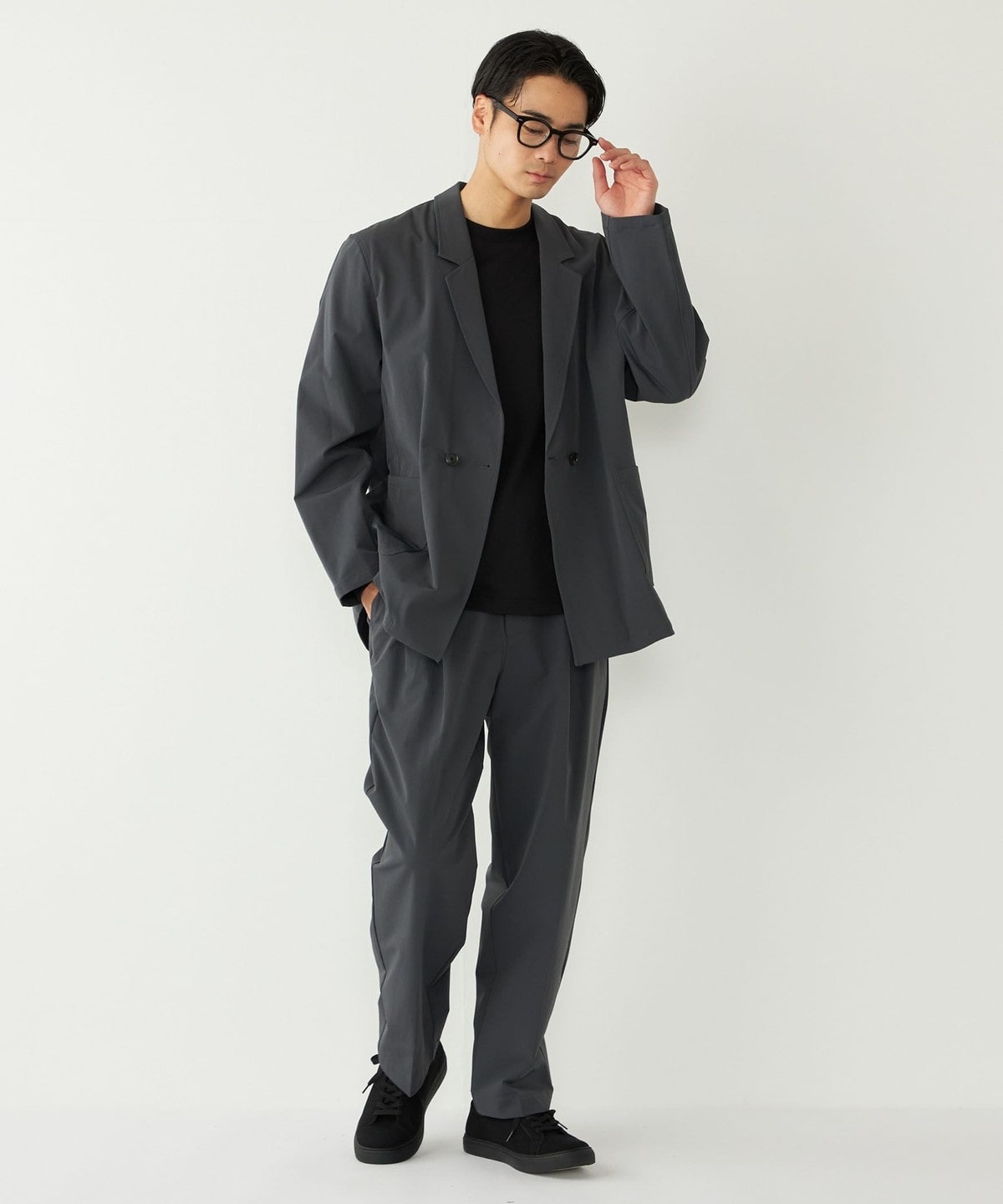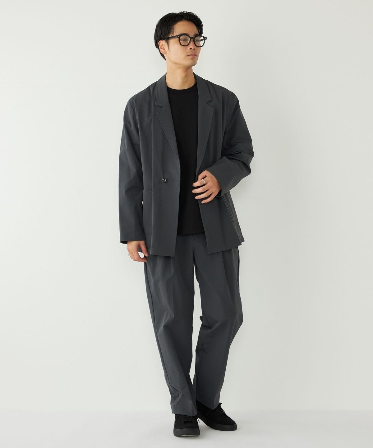 ストレッチ性に加え、トレンド感のあるややゆったりとしたシルエットで、ストレスフリーな着心地が魅力です。