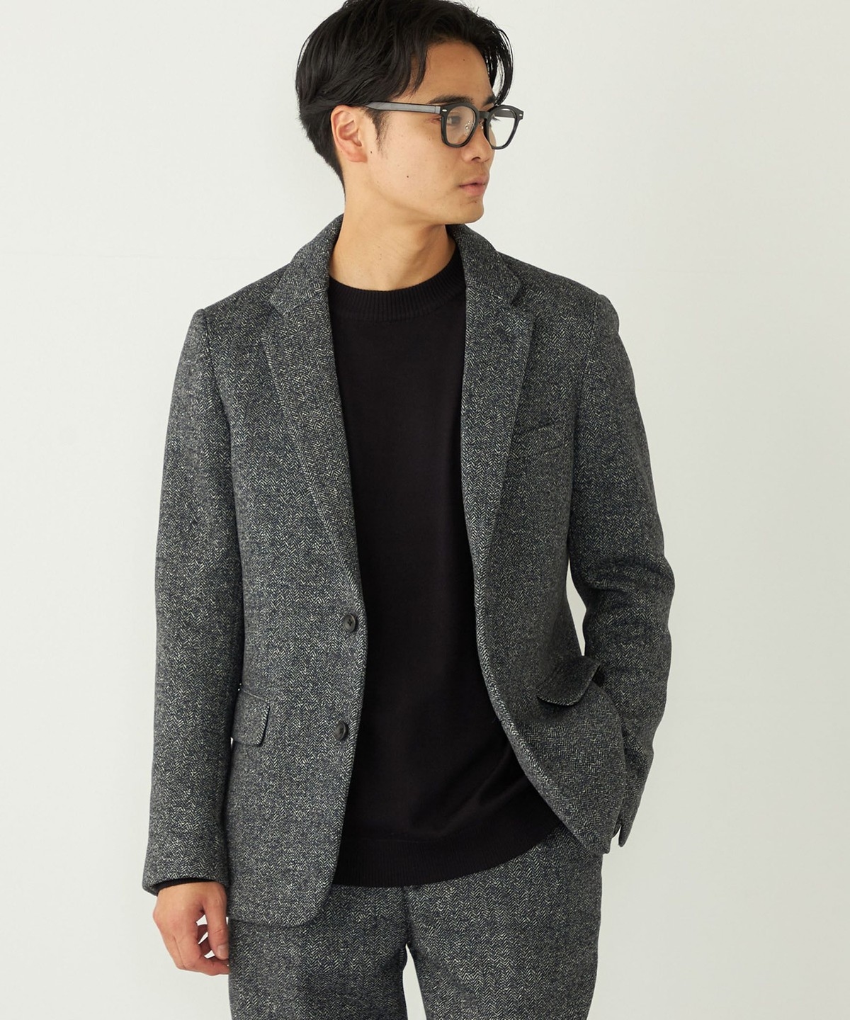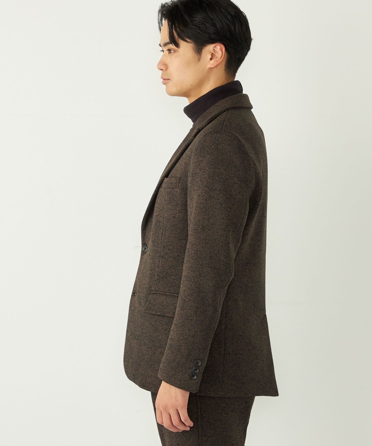 上品な2ボタンジャケット型ながら、ジャージーのようなストレッチ性と柔らかなタッチ感が魅力です。