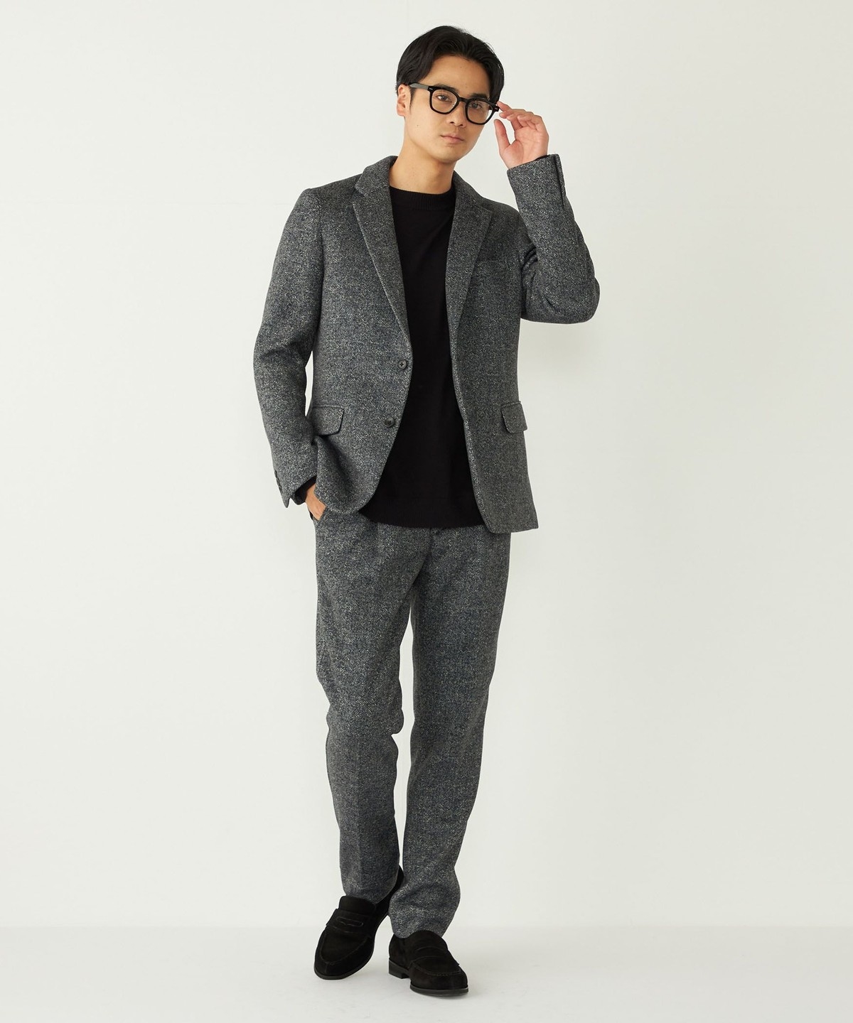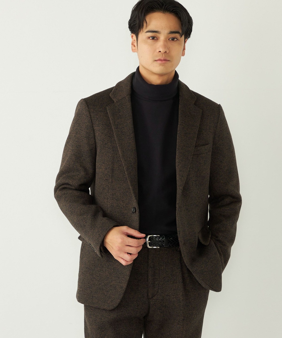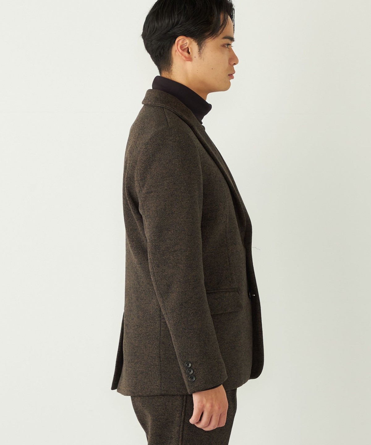 上品な2ボタンジャケット型ながら、ジャージーのようなストレッチ性と柔らかなタッチ感が魅力です。