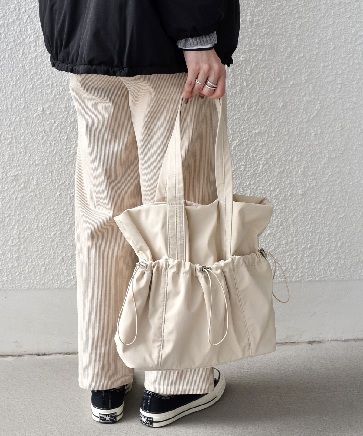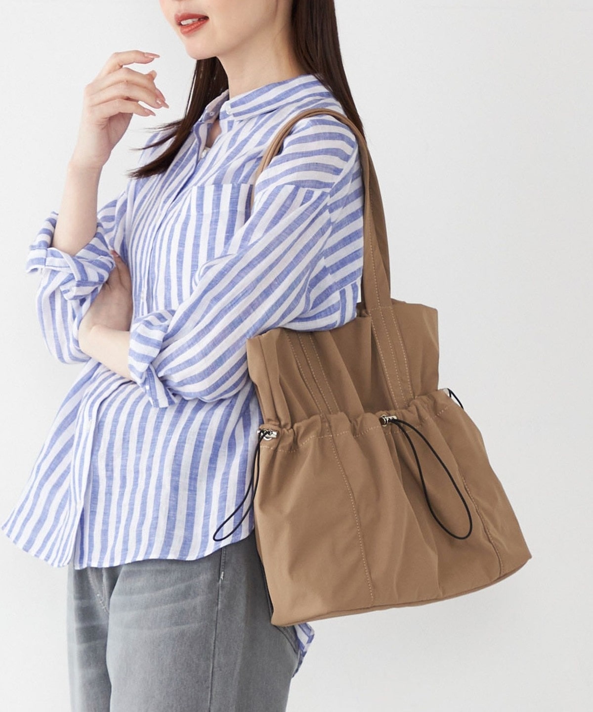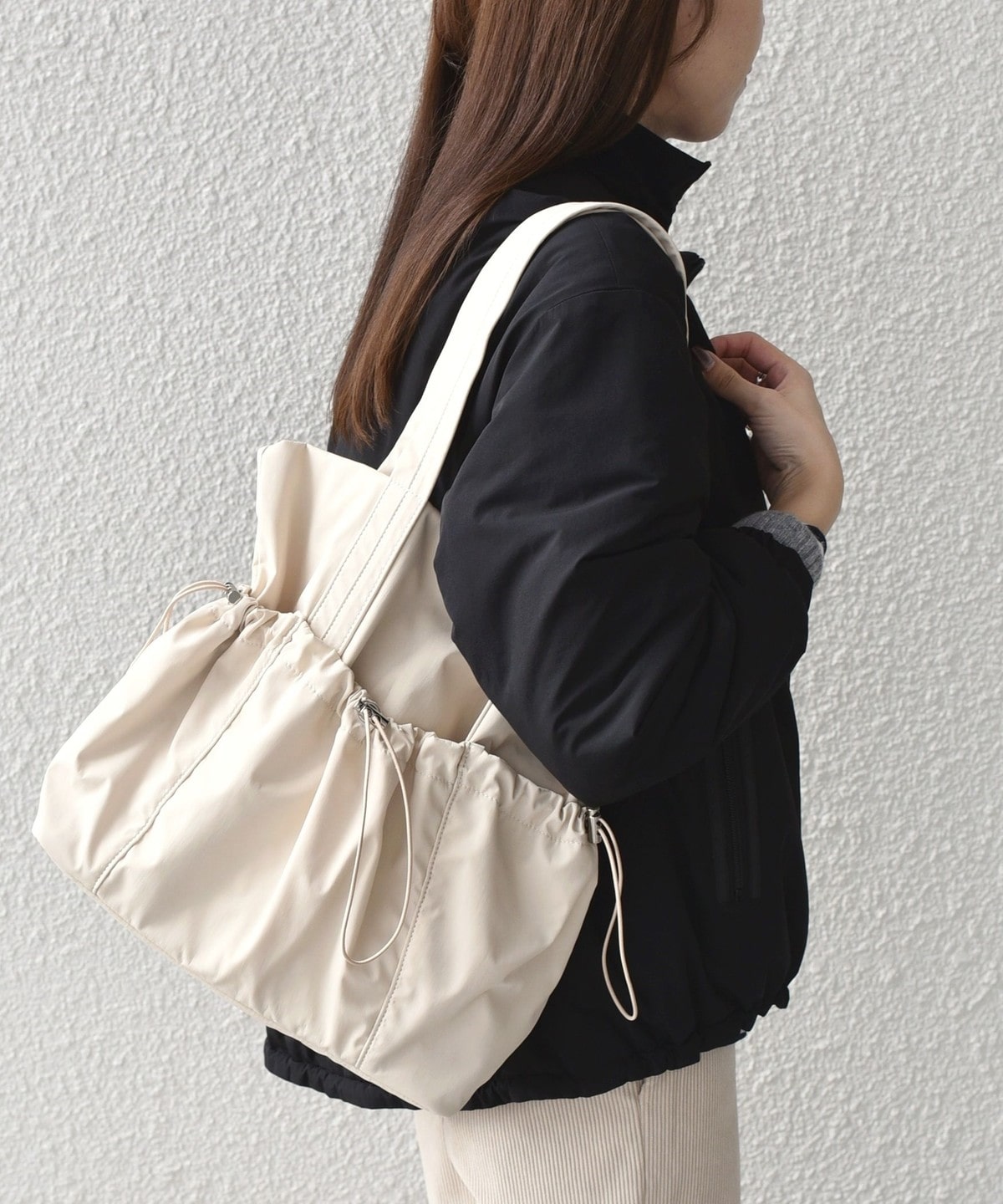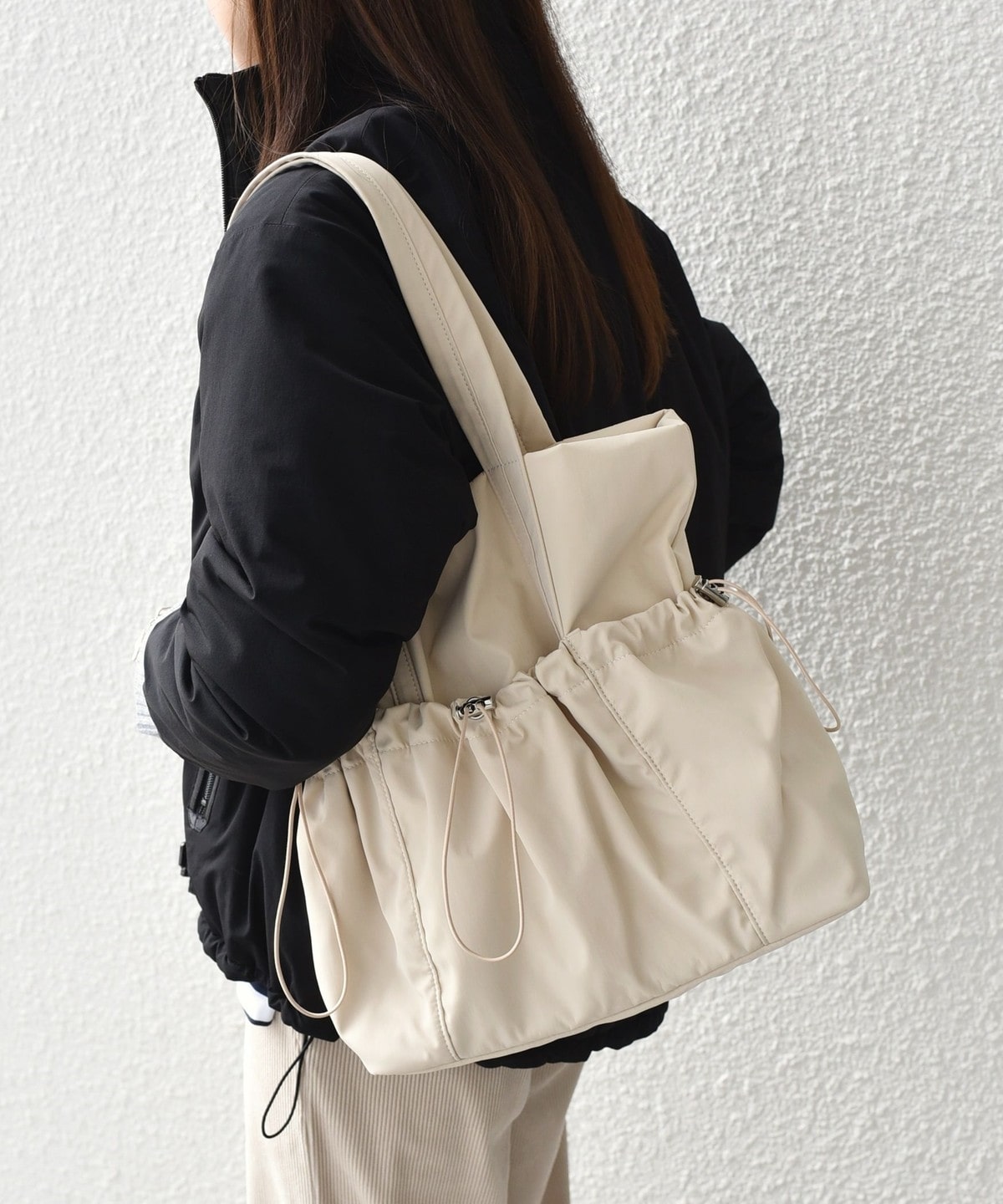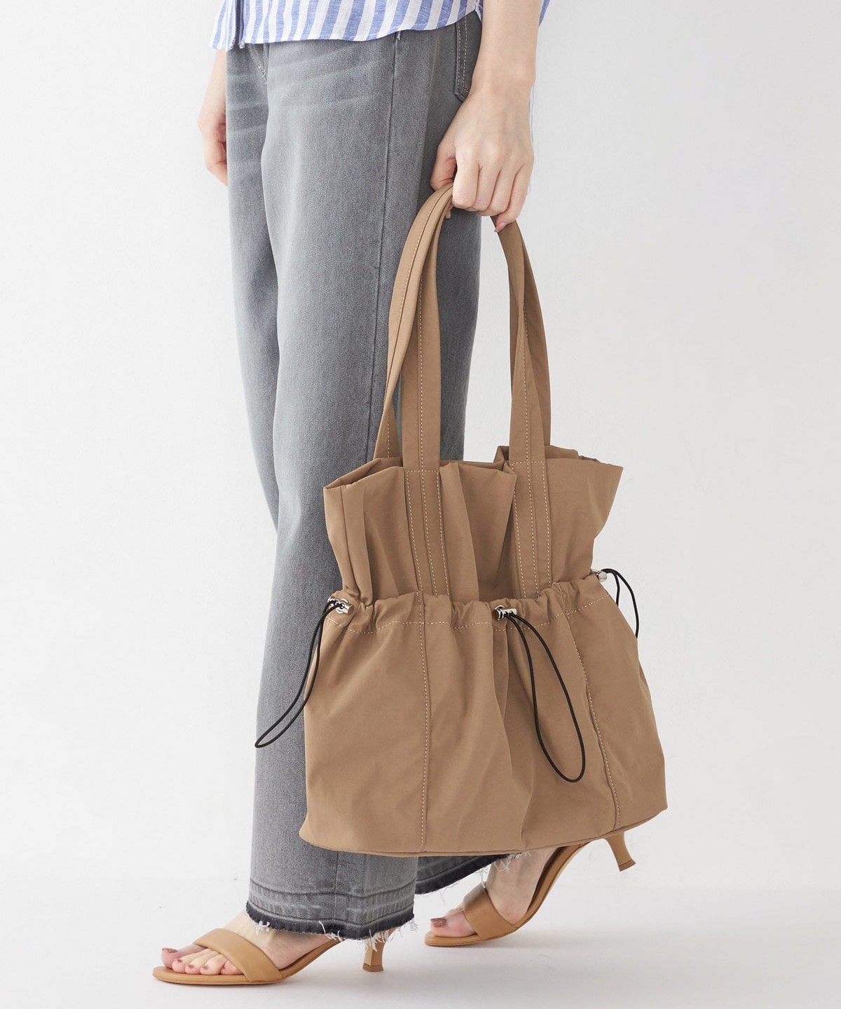 2. 《新色予約》SHIPS Colors: A4 ナイロン ギャザー トートバッグ ◆ ナチュラル