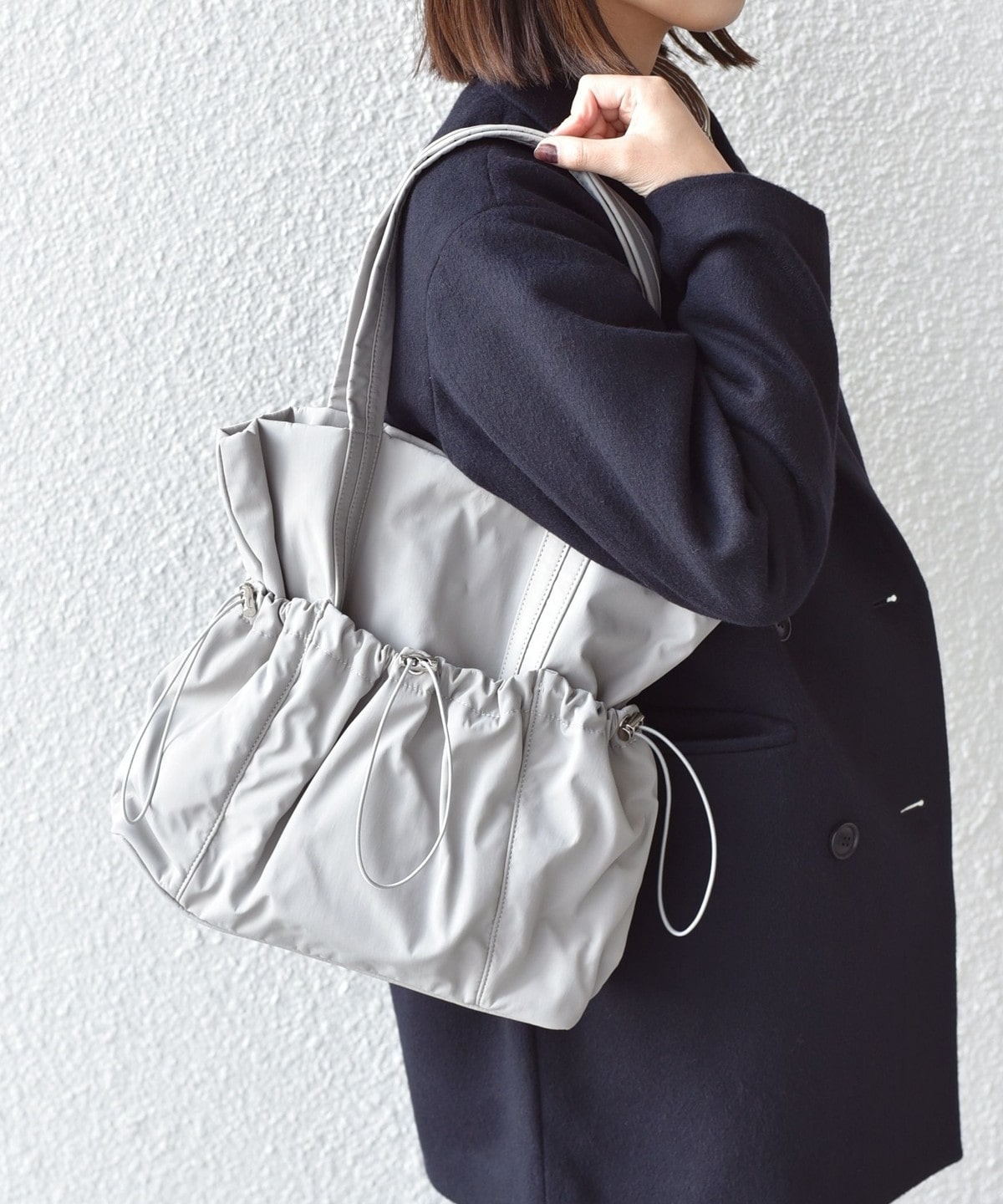 1. 《新色予約》SHIPS Colors: A4 ナイロン ギャザー トートバッグ ◆ グレー