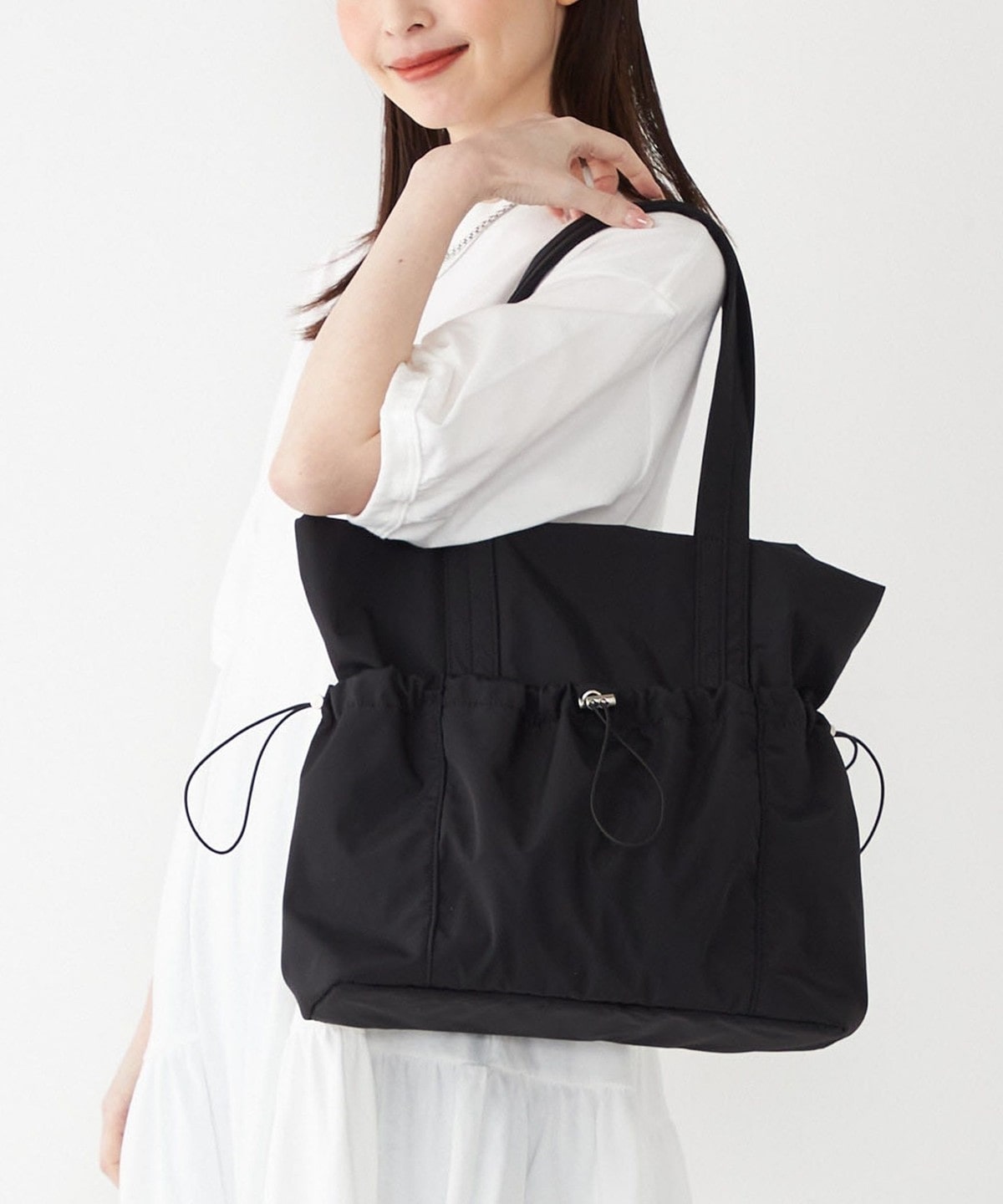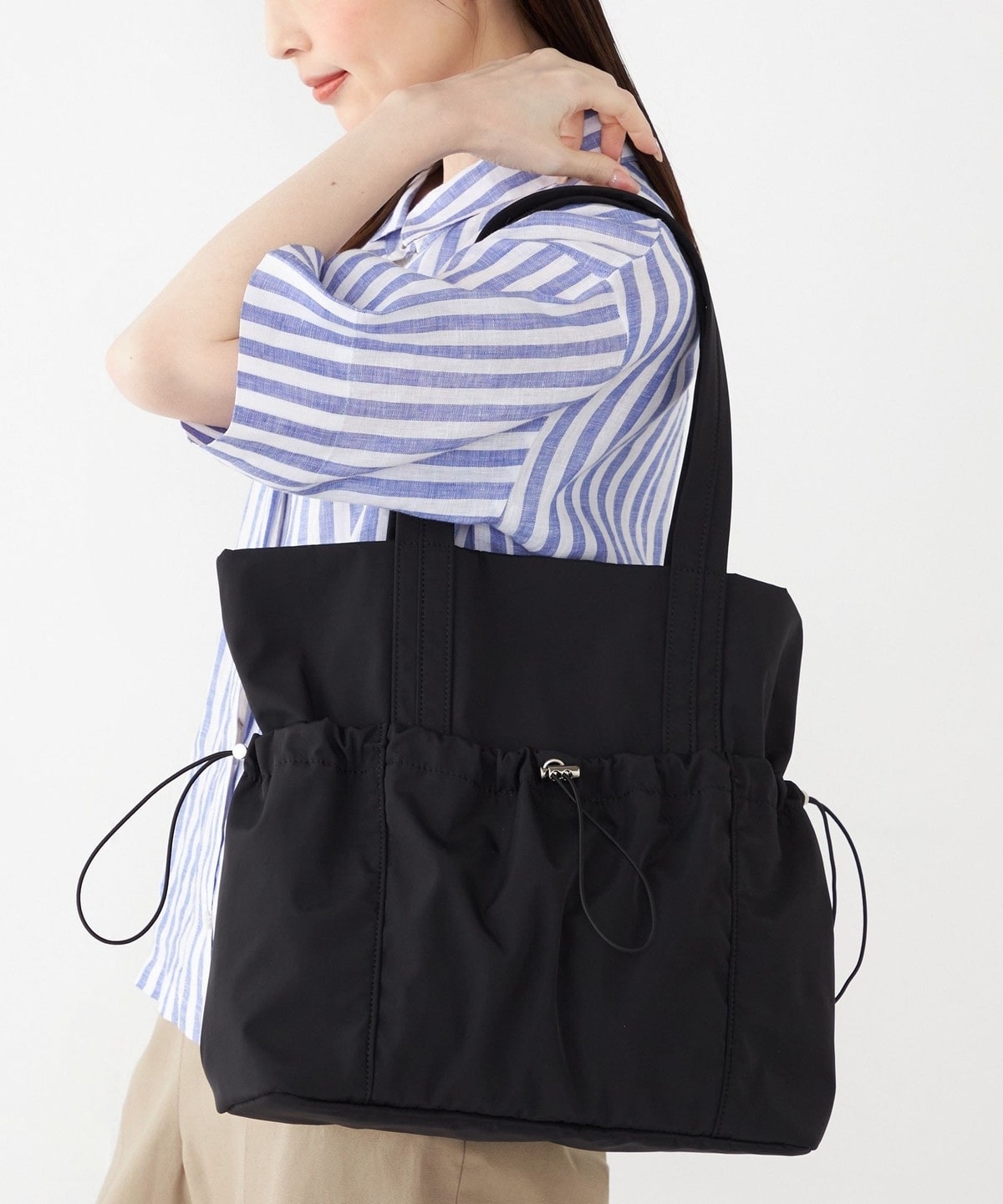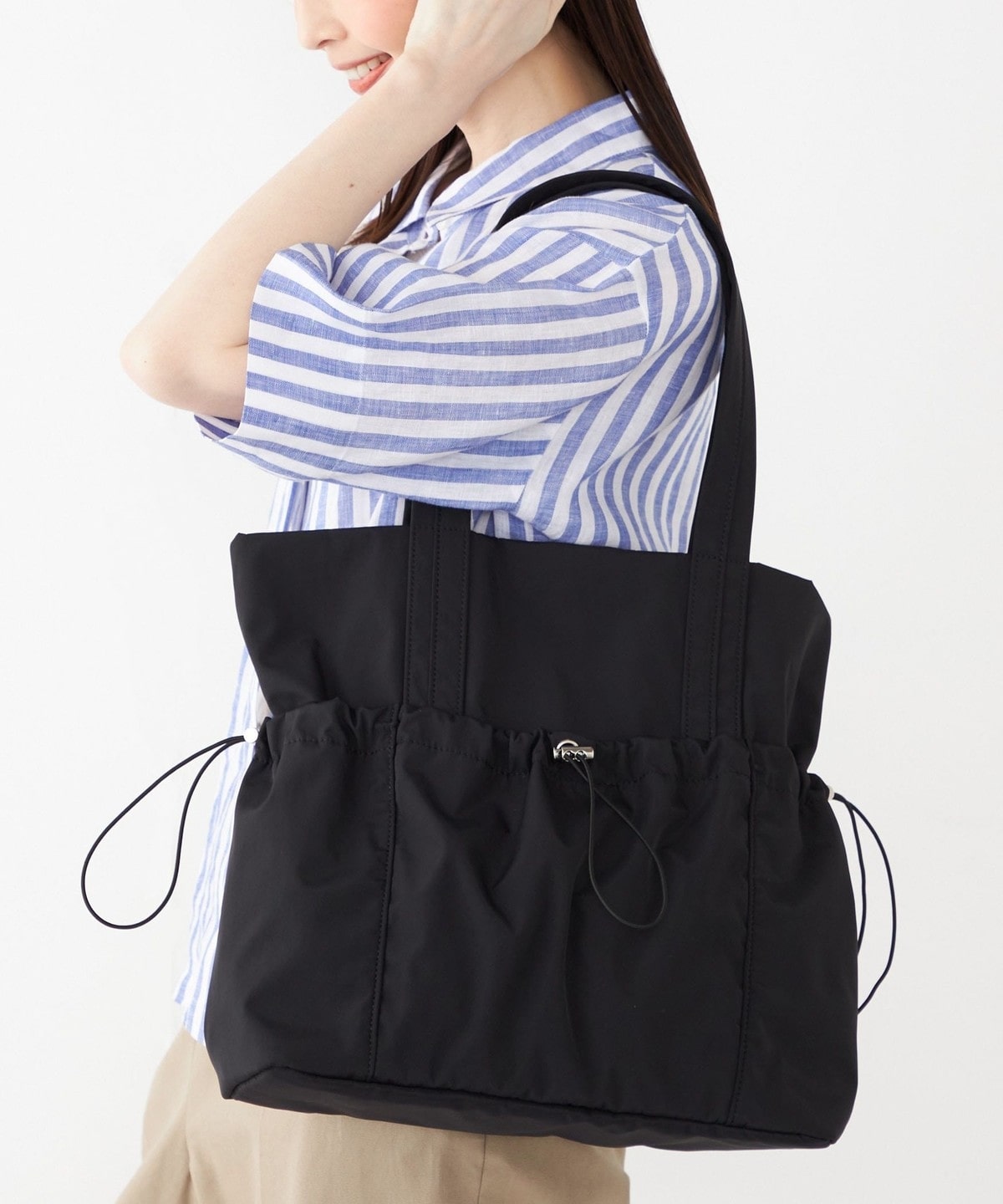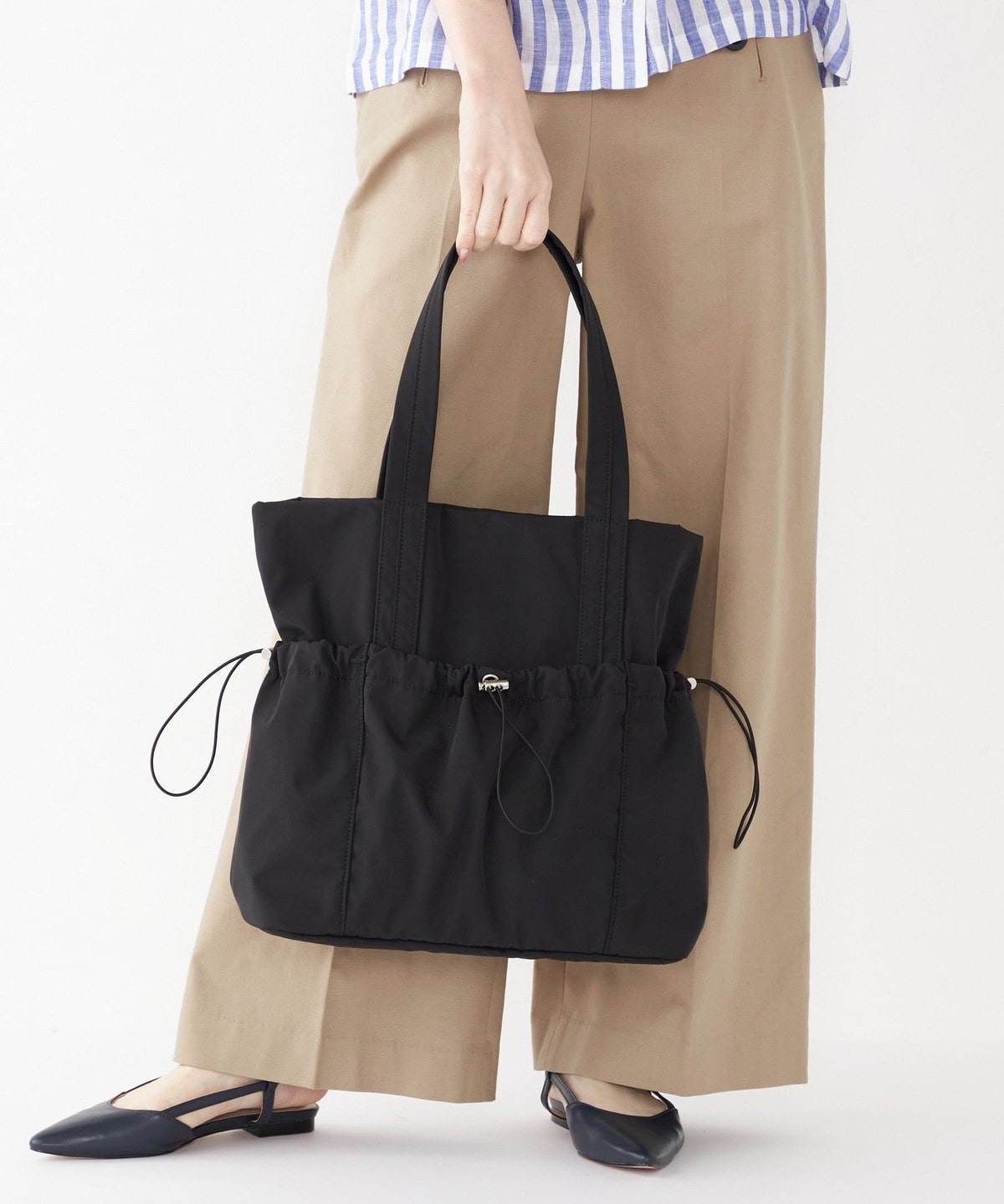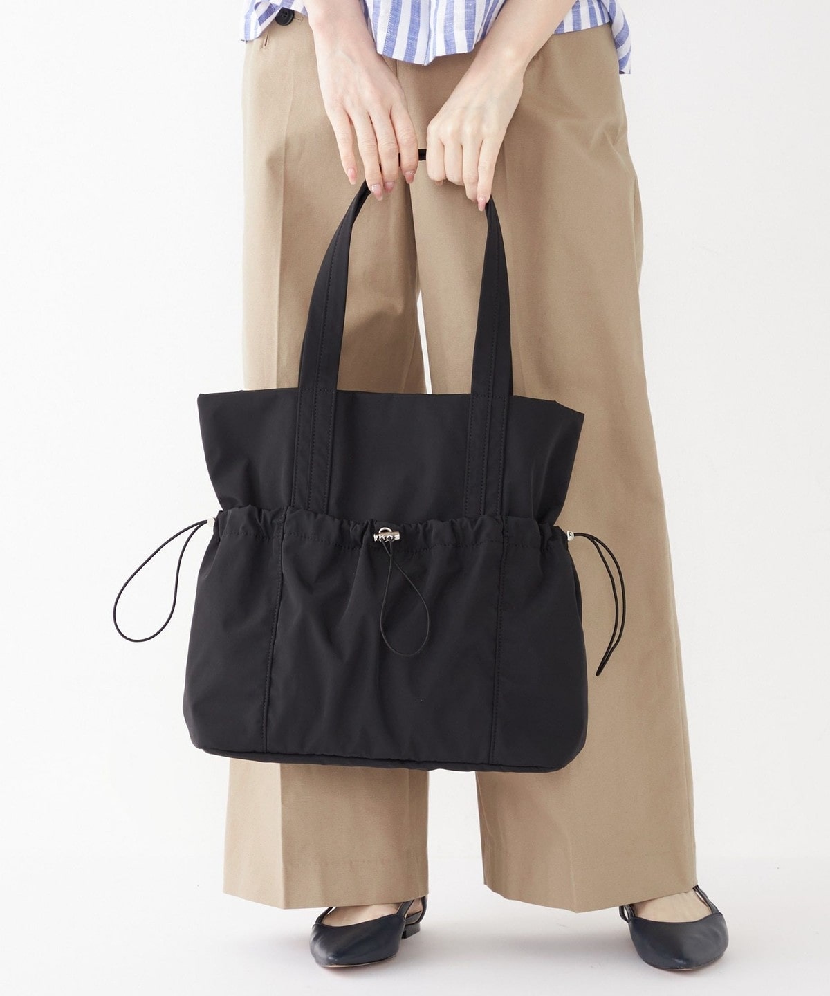 3. 《新色予約》SHIPS Colors: A4 ナイロン ギャザー トートバッグ ◆ ブラック