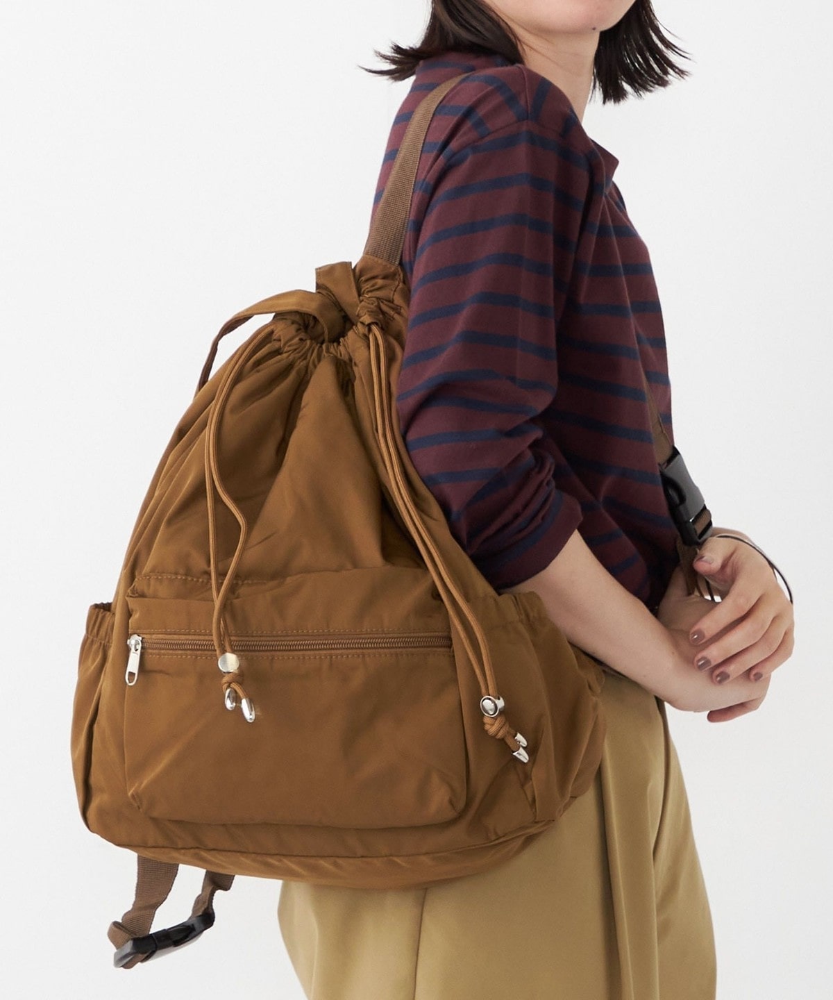 リュックと肩掛けの2WAYで使えるバックパック。