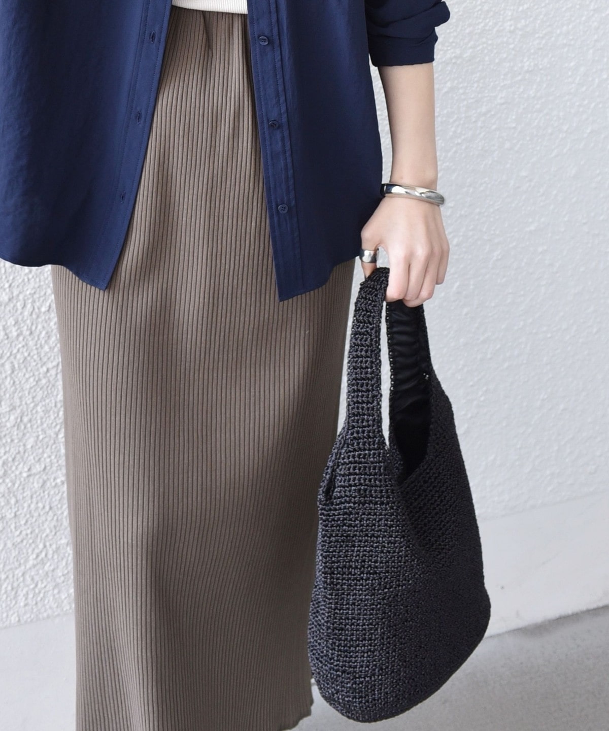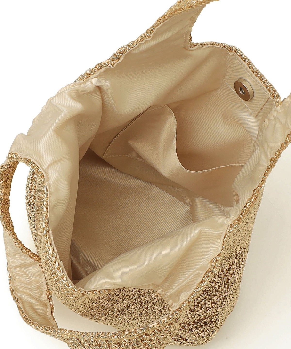 光沢のあるメタリックコードをシンプルに編み上げたトートバッグ。