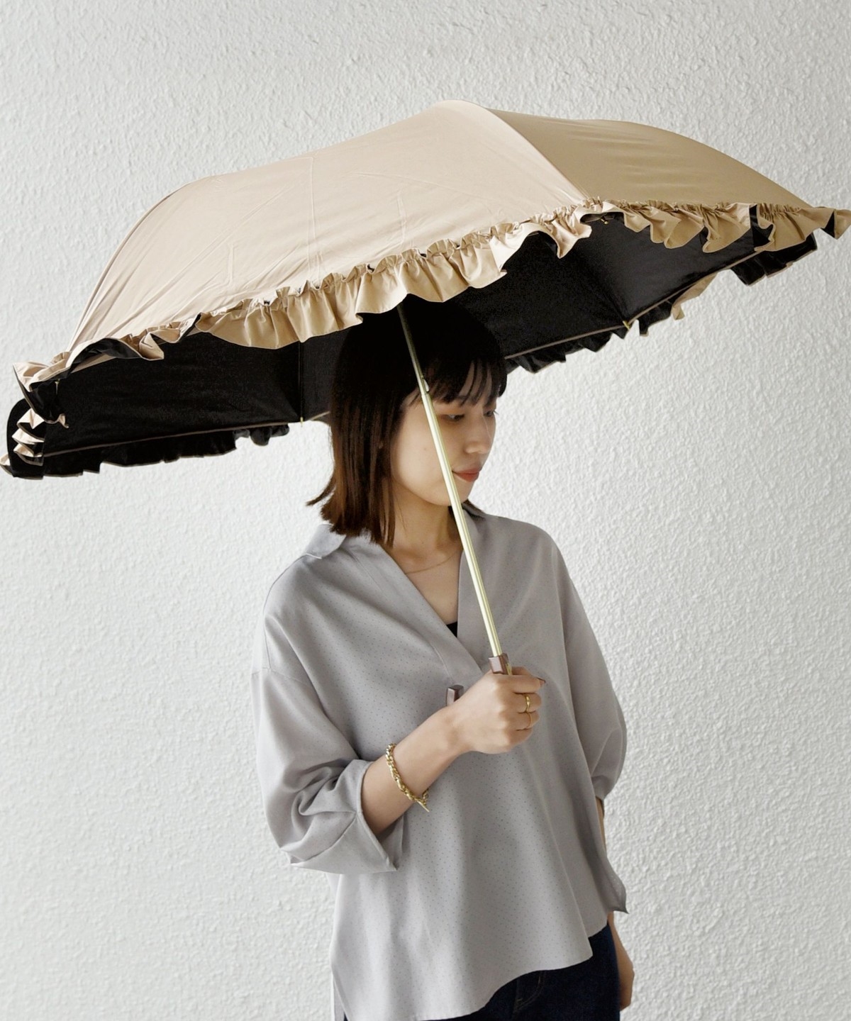 1. 《予約》assa:BODYWRAP フリル 折り畳み傘 (晴雨兼用・親骨55cm)◆ キャメル