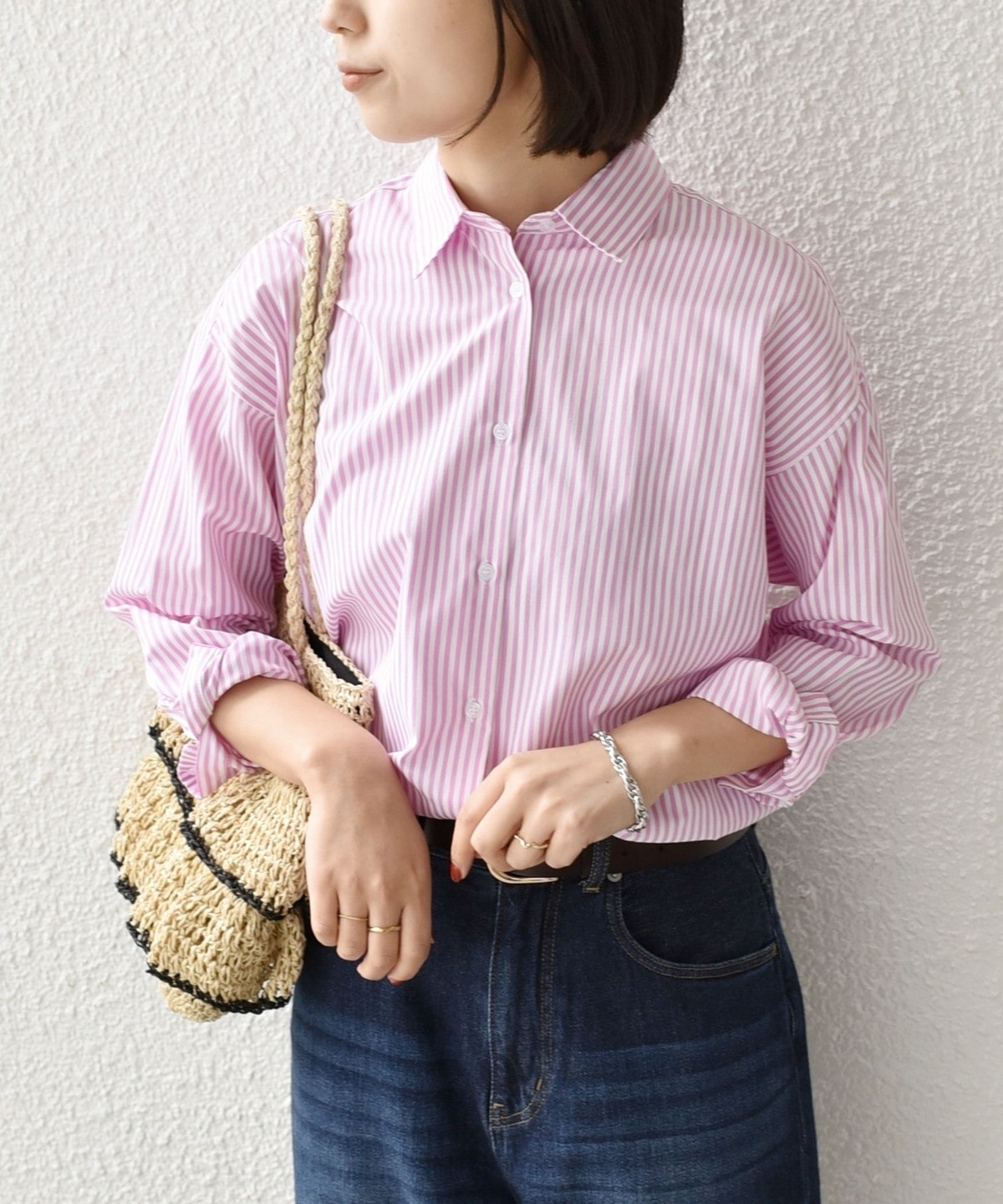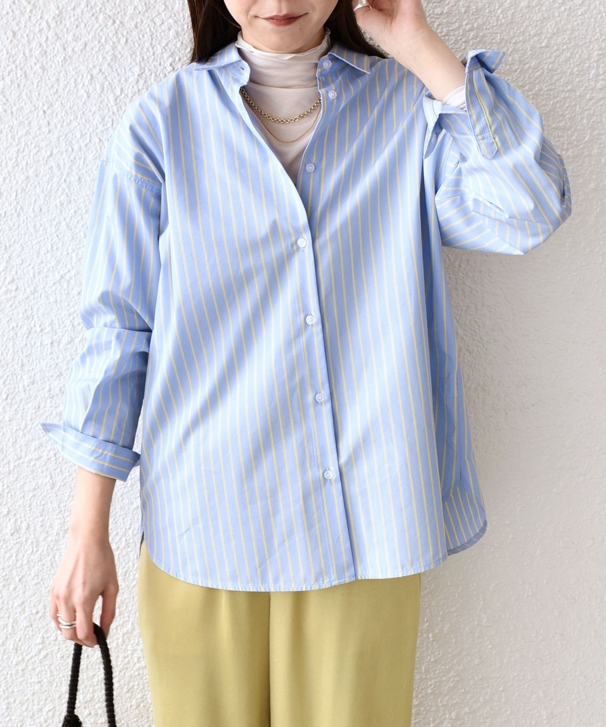 着回し力抜群の、爽やかな印象のストライプシャツ。