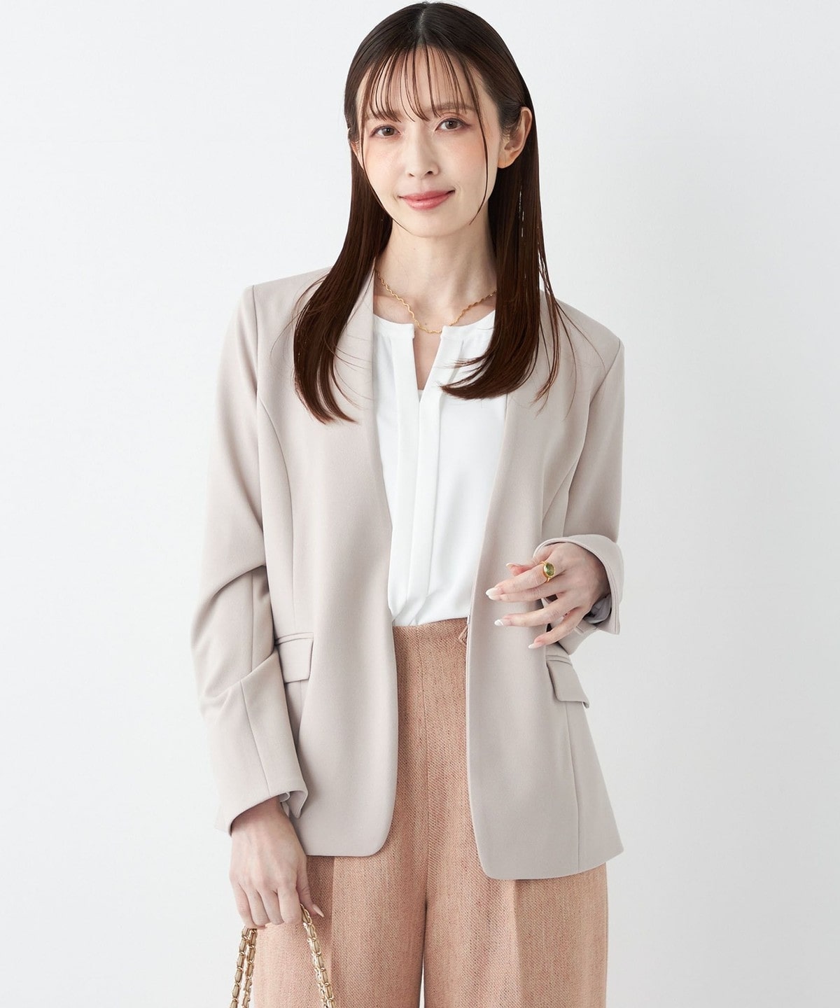 《予約》SHIPS Colors:〈手洗い可能〉2WAY ノーカラー ブラウス◆