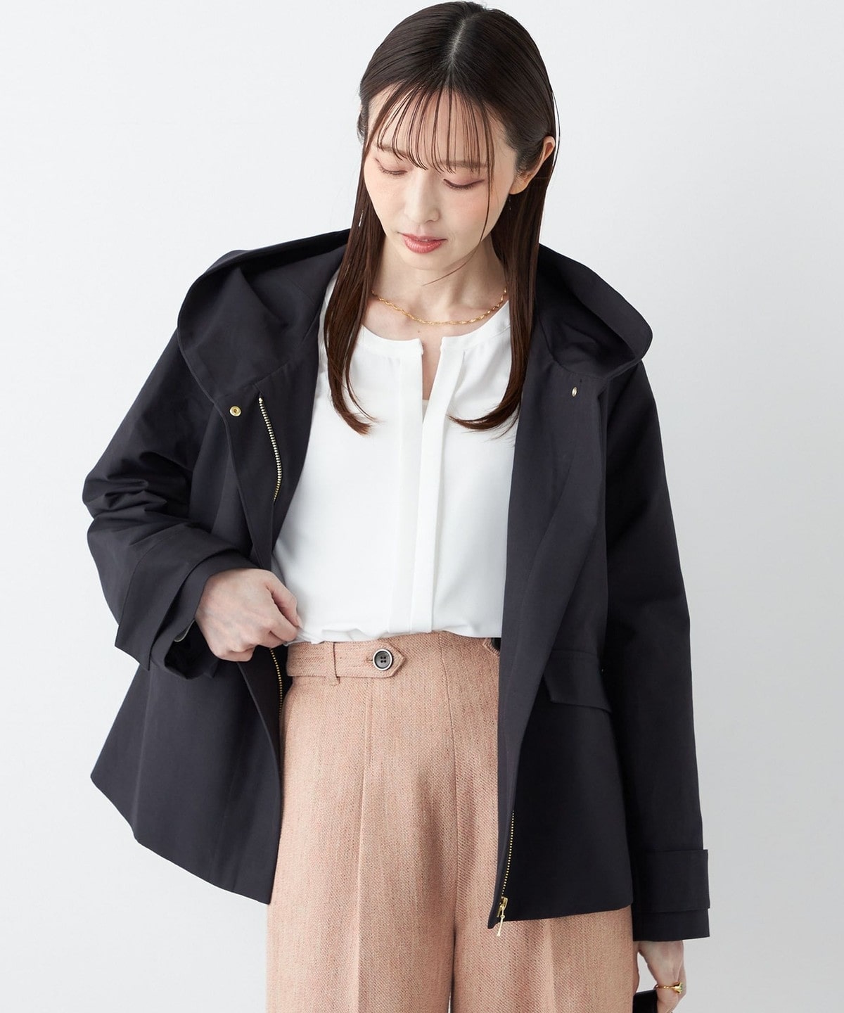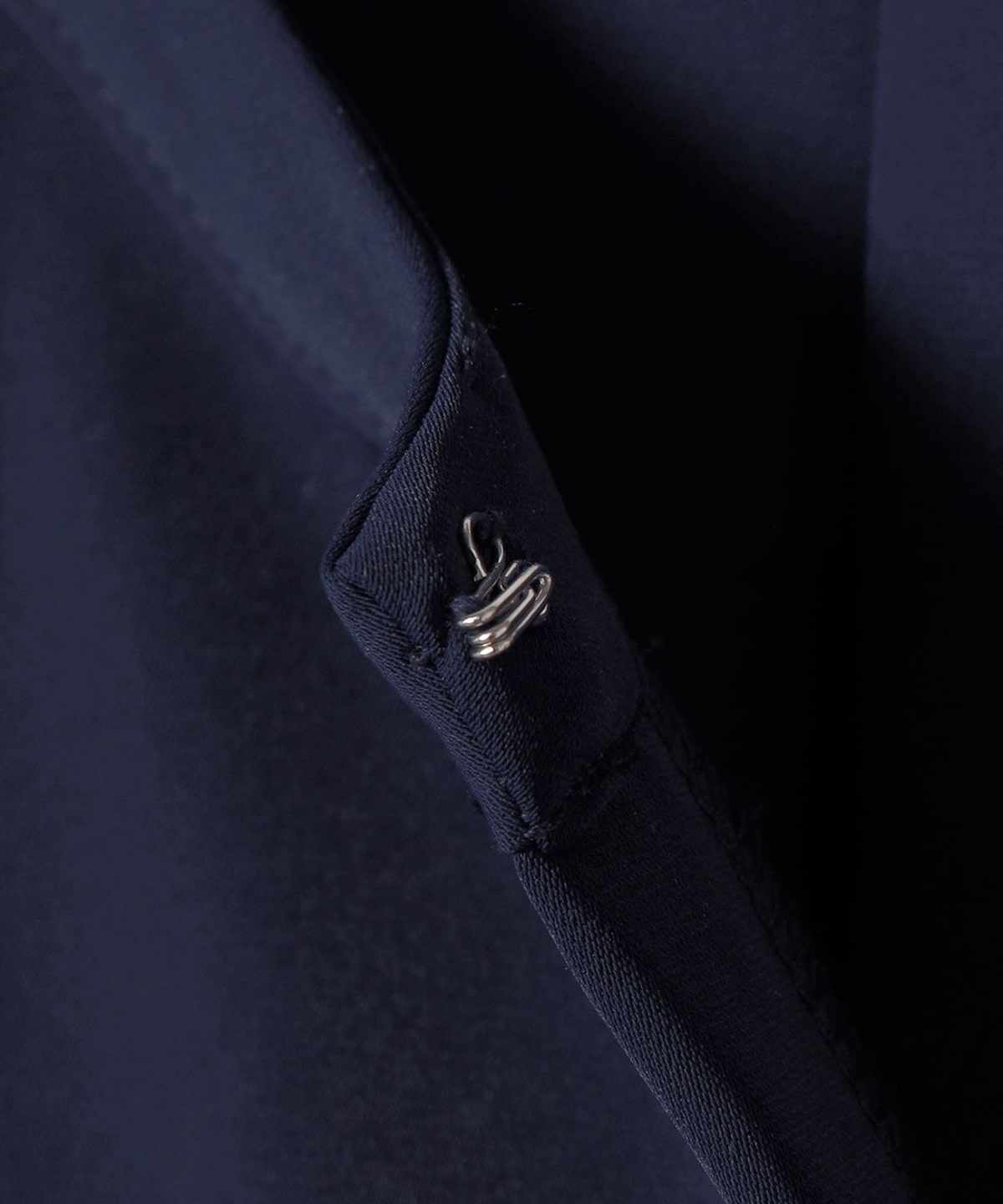 首元のフックを外すとスキッパーネックとしても着用可能なので、ノーカラーと2WAYでお楽しみいただけます。