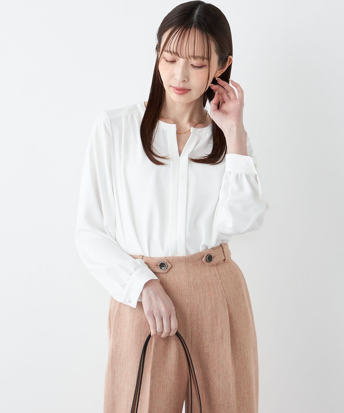 シンプルなデザインで、マルチに活躍してくれるブラウス。