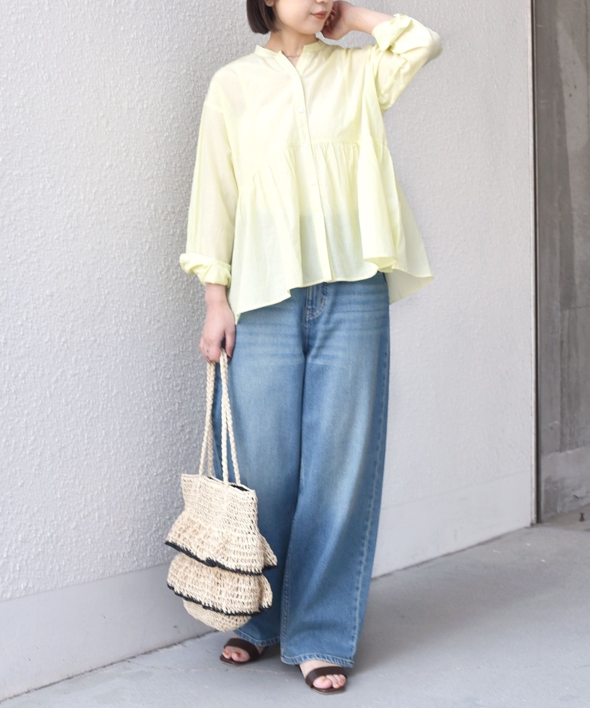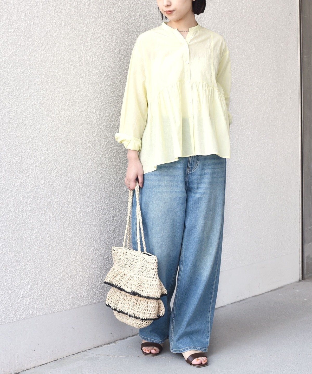 デニムに合わせるだけで春らしいスタイリングが完成します。