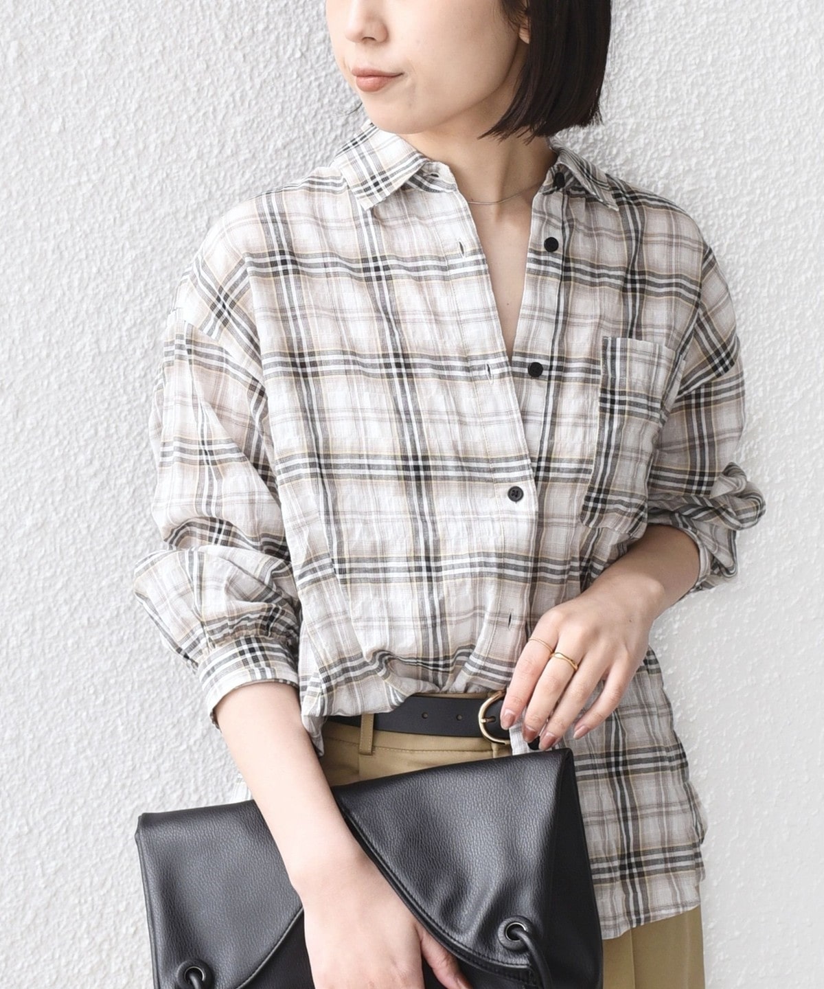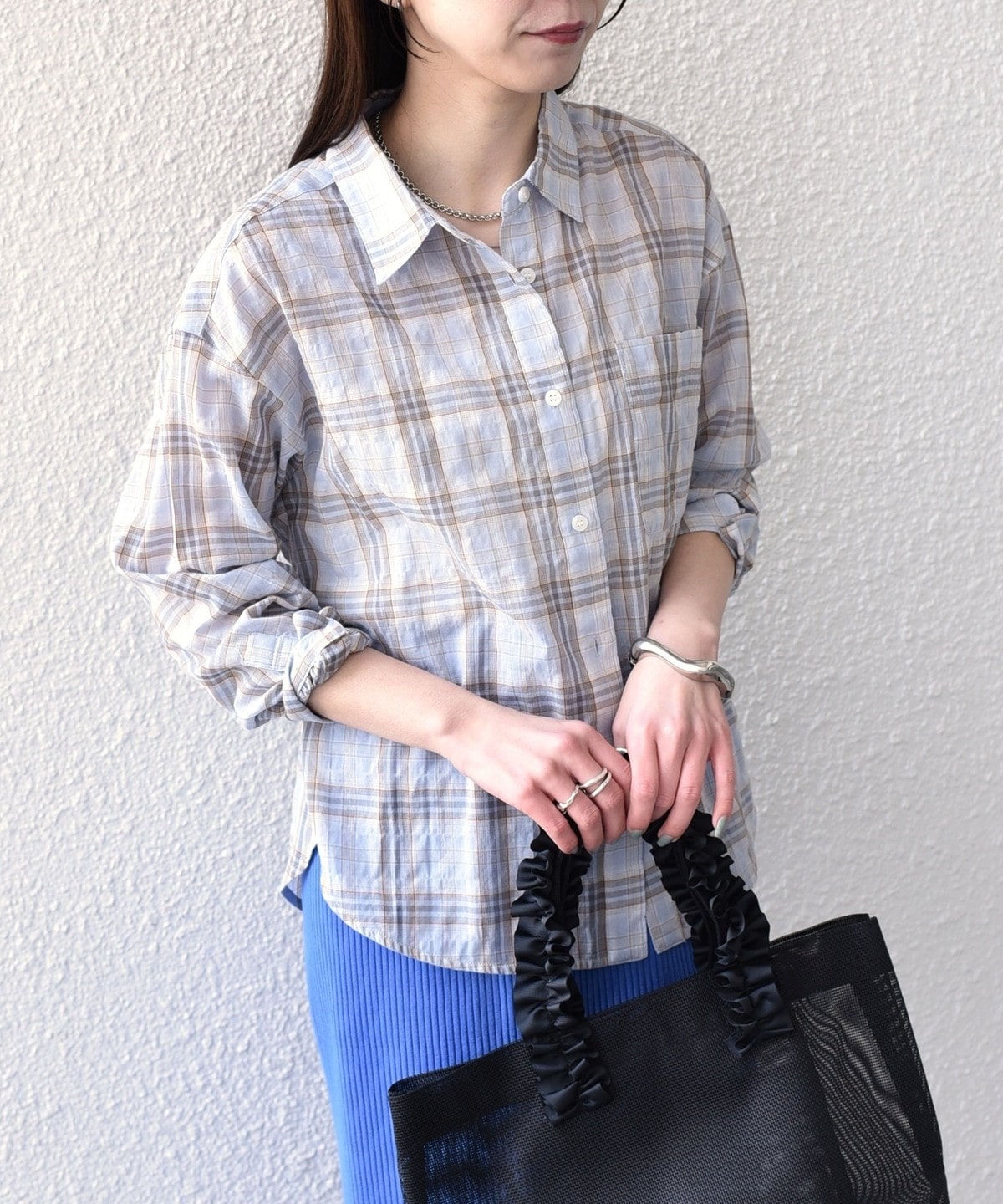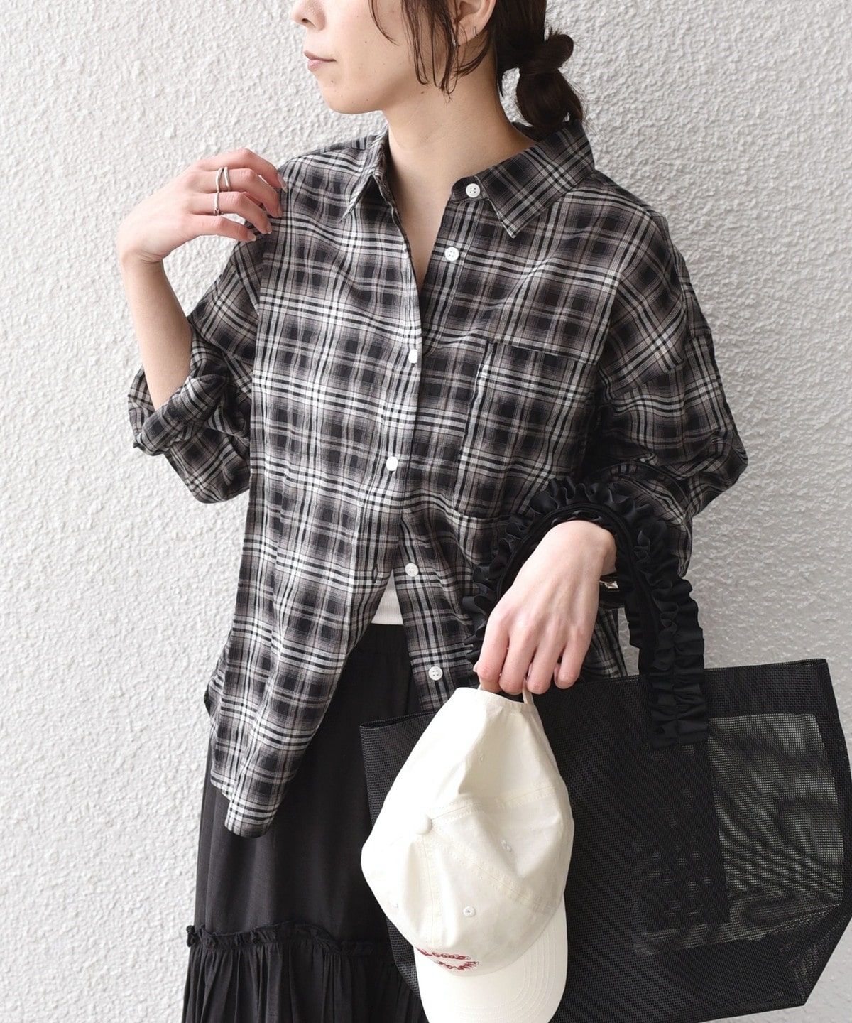 程よい透け感が魅力のシアー素材を使用したチェックシャツ。