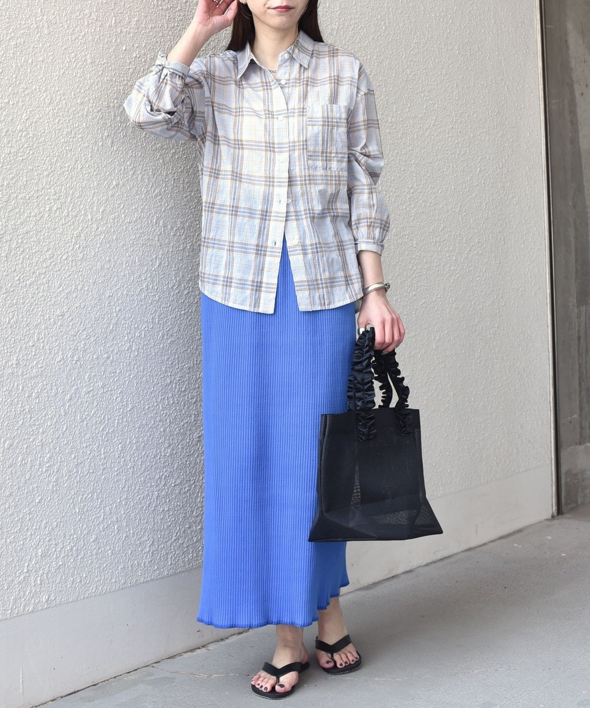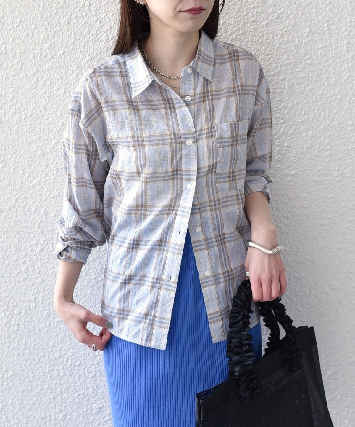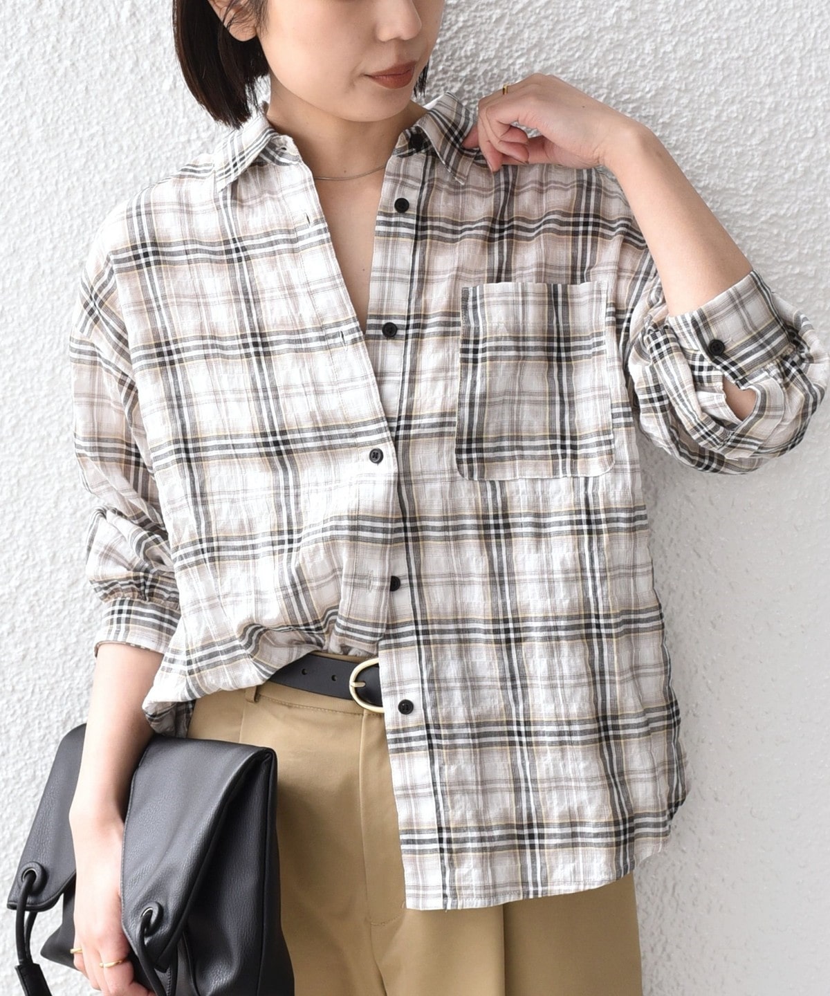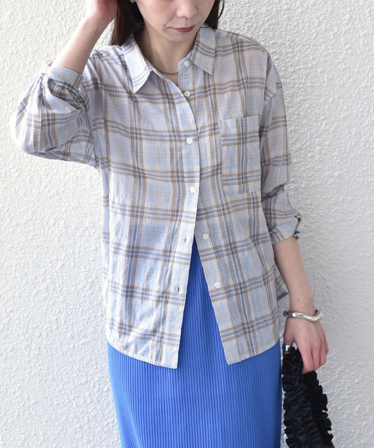程よい透け感が魅力のシアー素材を使用したチェックシャツ。