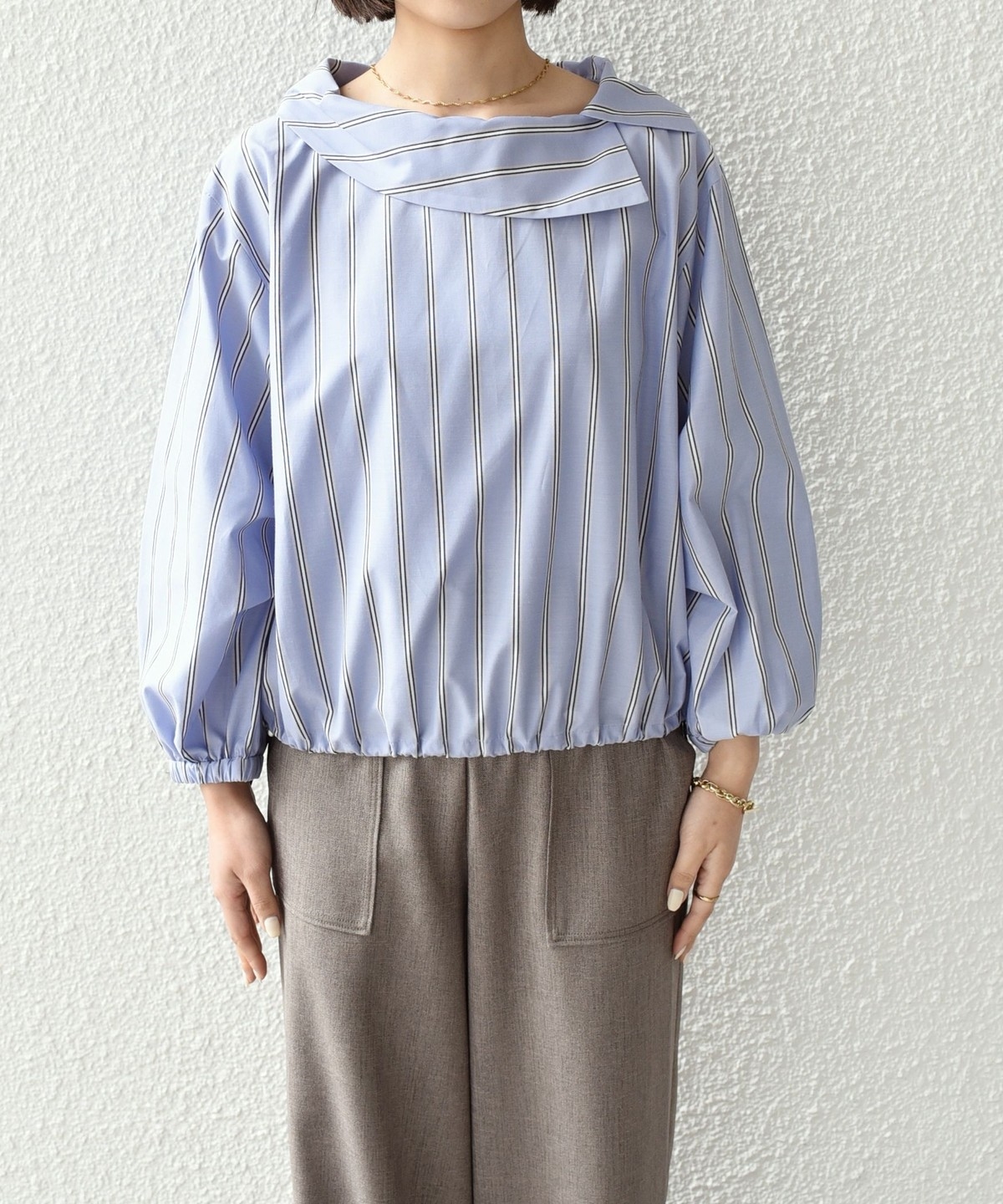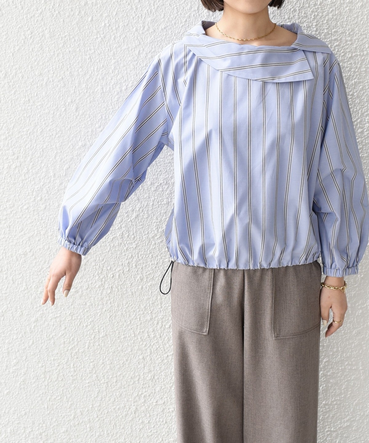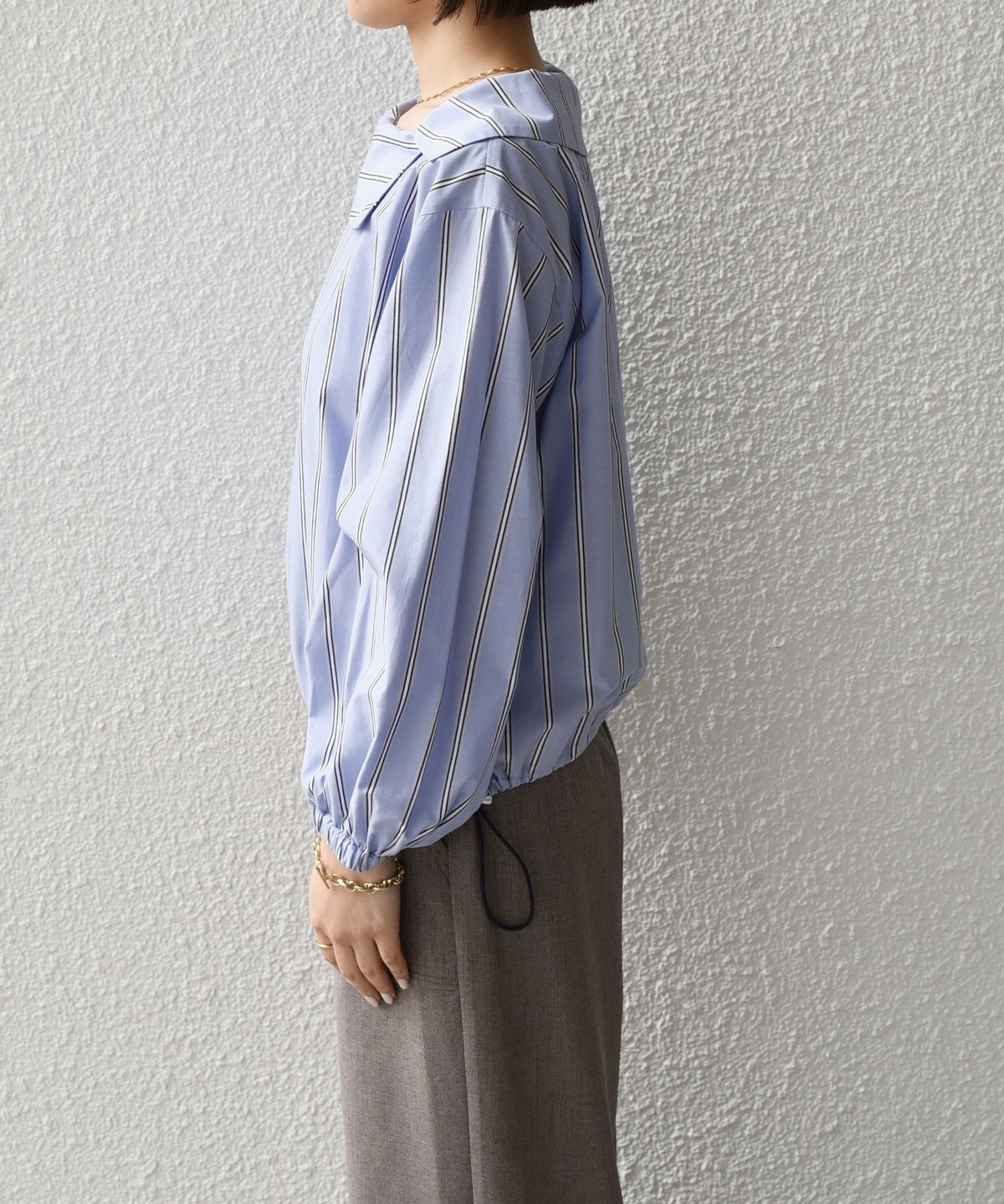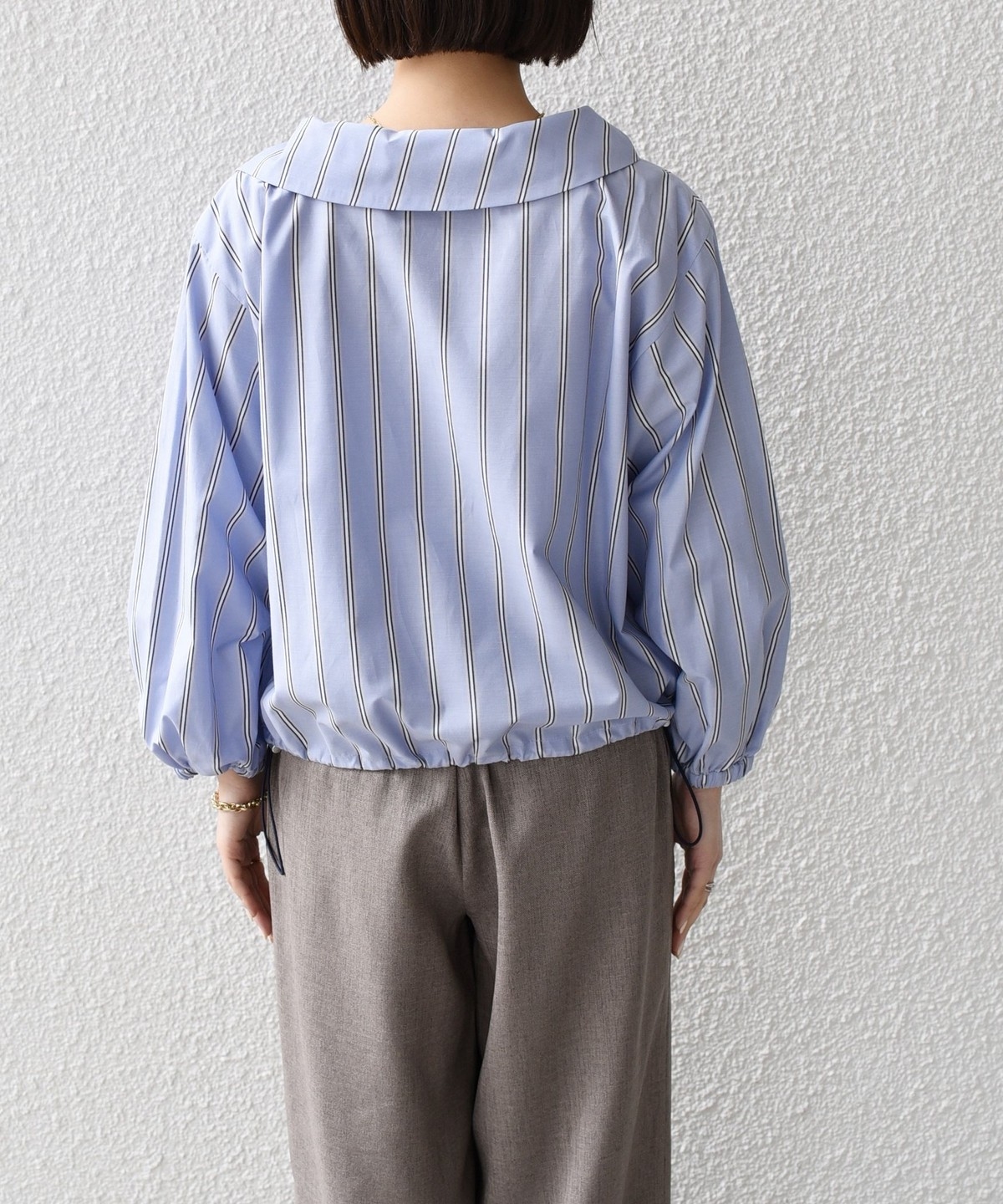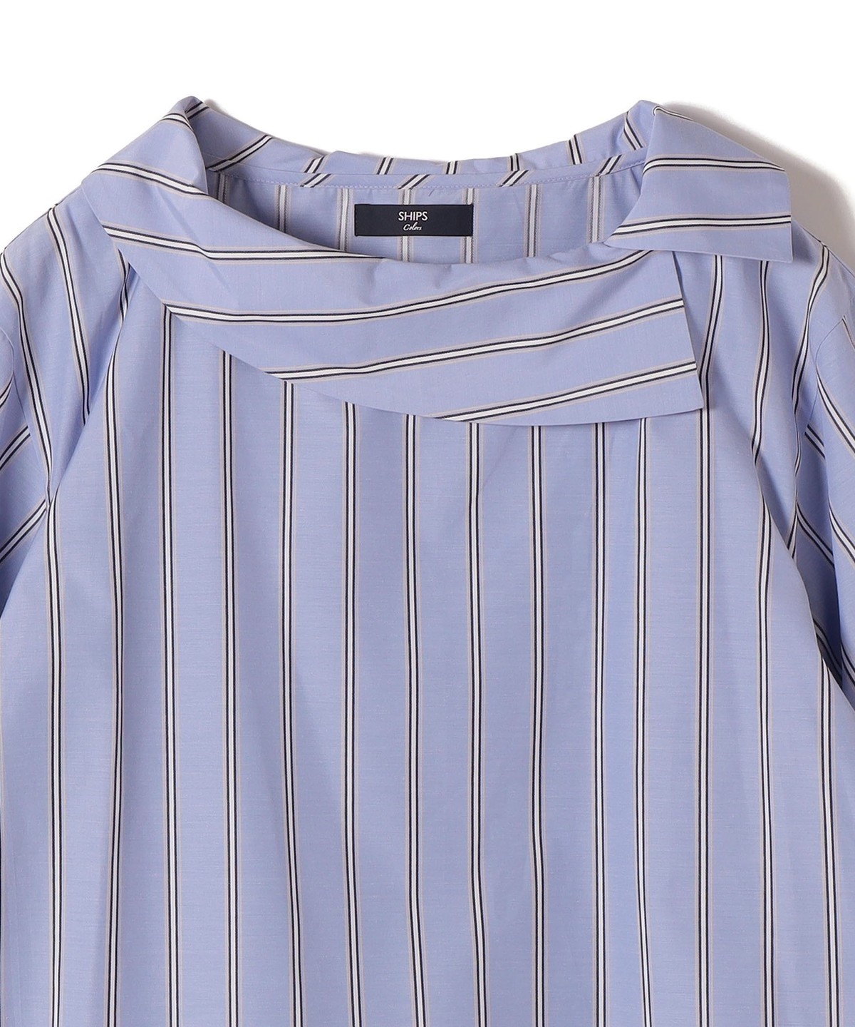 《予約》SHIPS Colors:〈洗濯機可能〉ロールカラー ストライプ ブラウス2◆