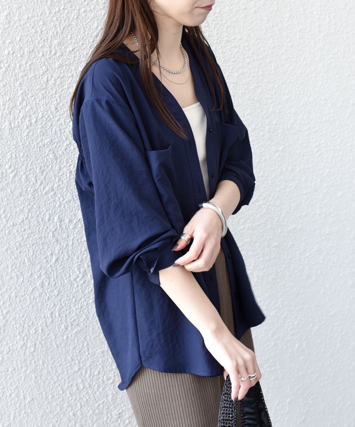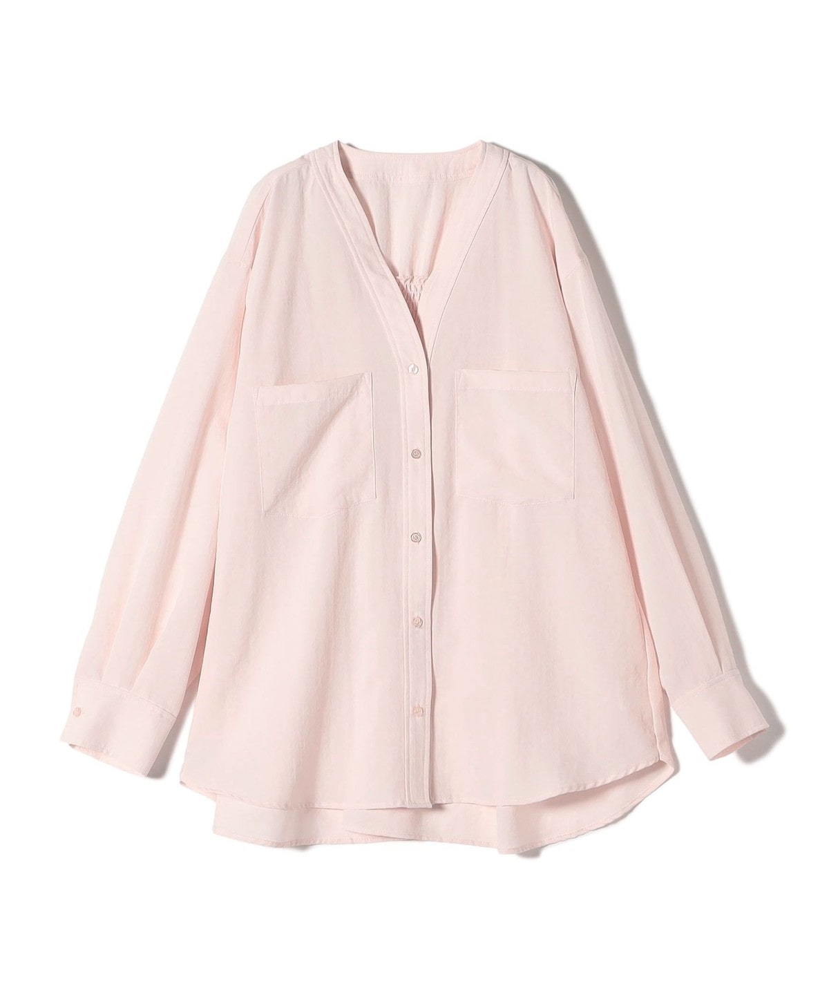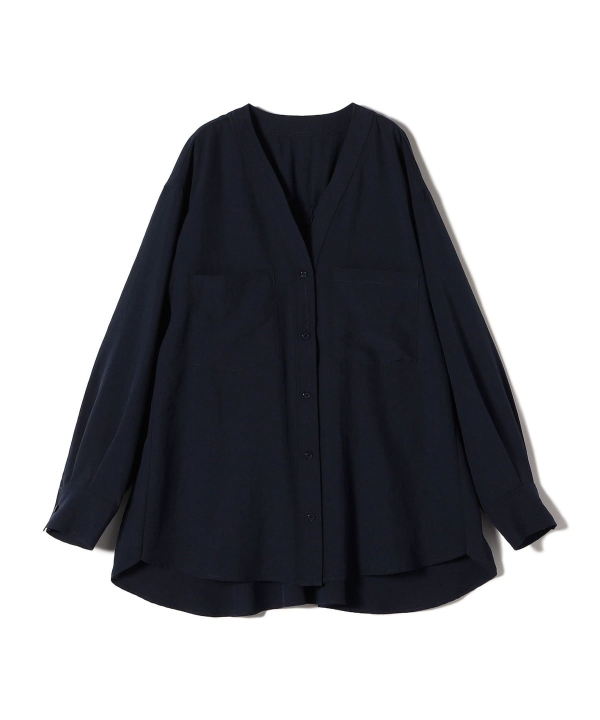 羽織としても、ボタンを留めてブラウス感覚でも着用可能なVネックシャツ。