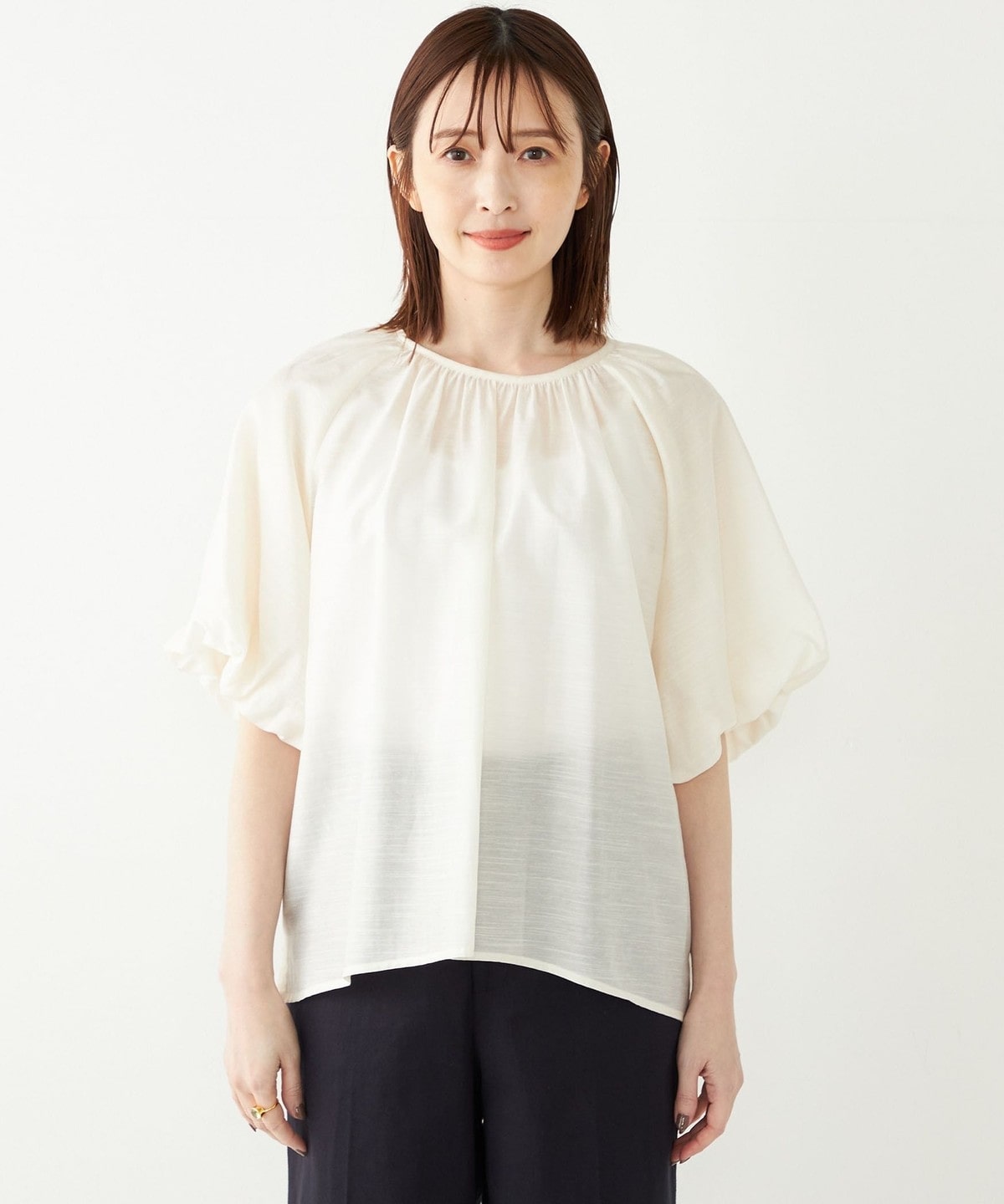 ボリューム感のある袖がポイントの、コーディネートのアクセントになってくれるブラウス。