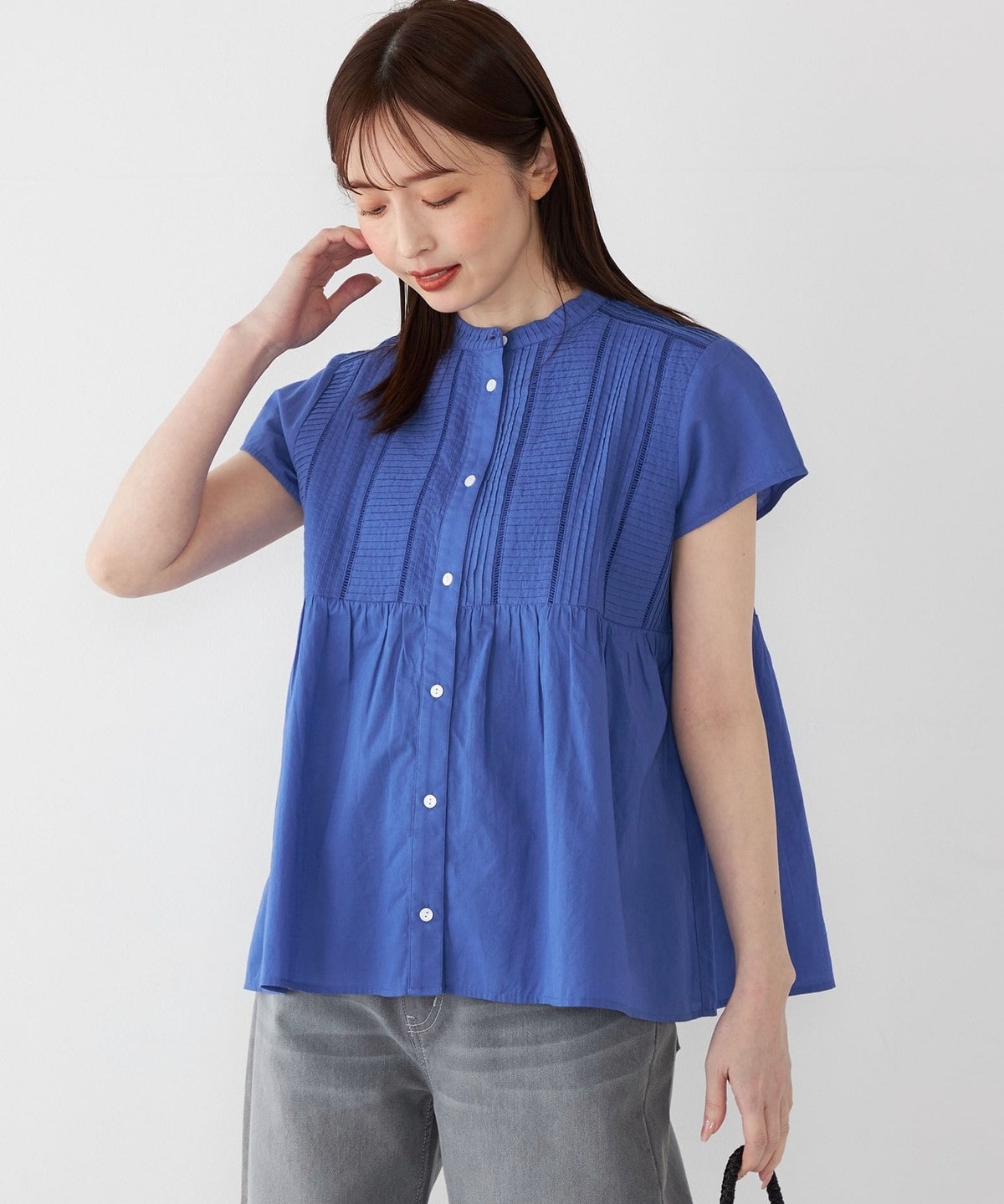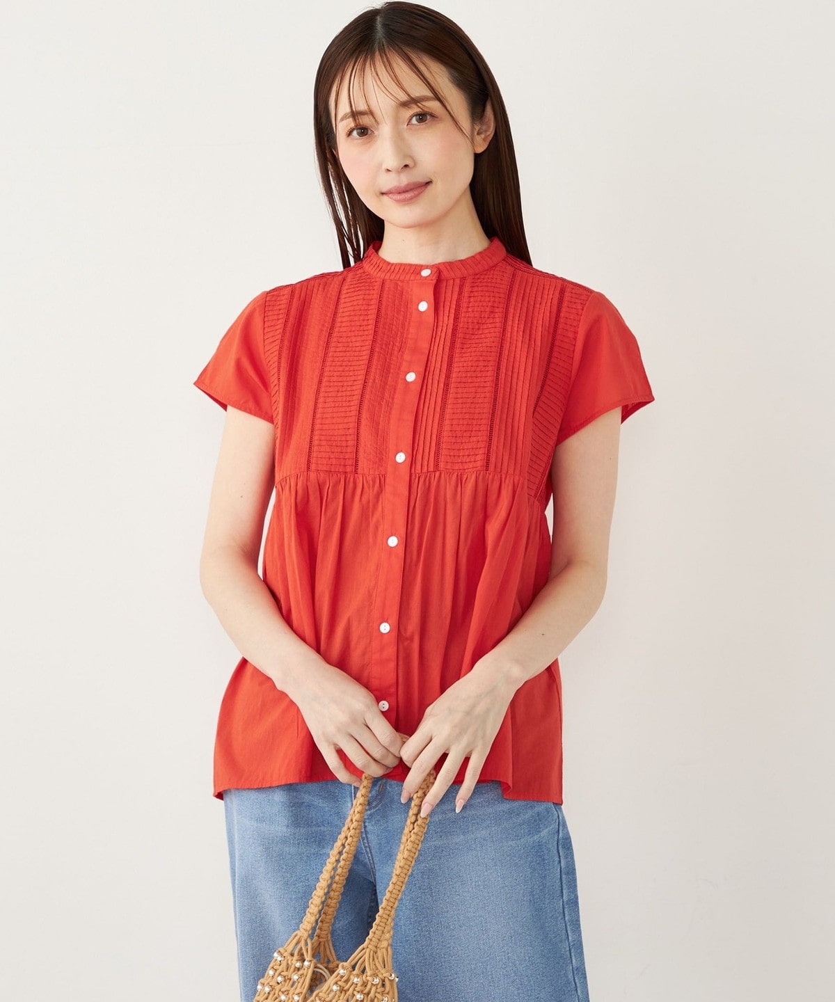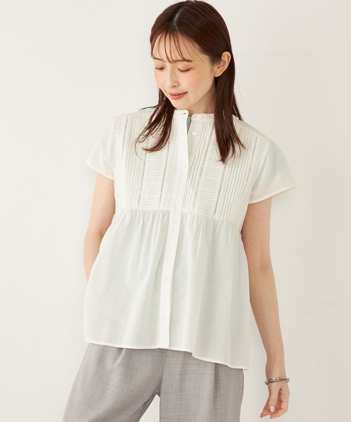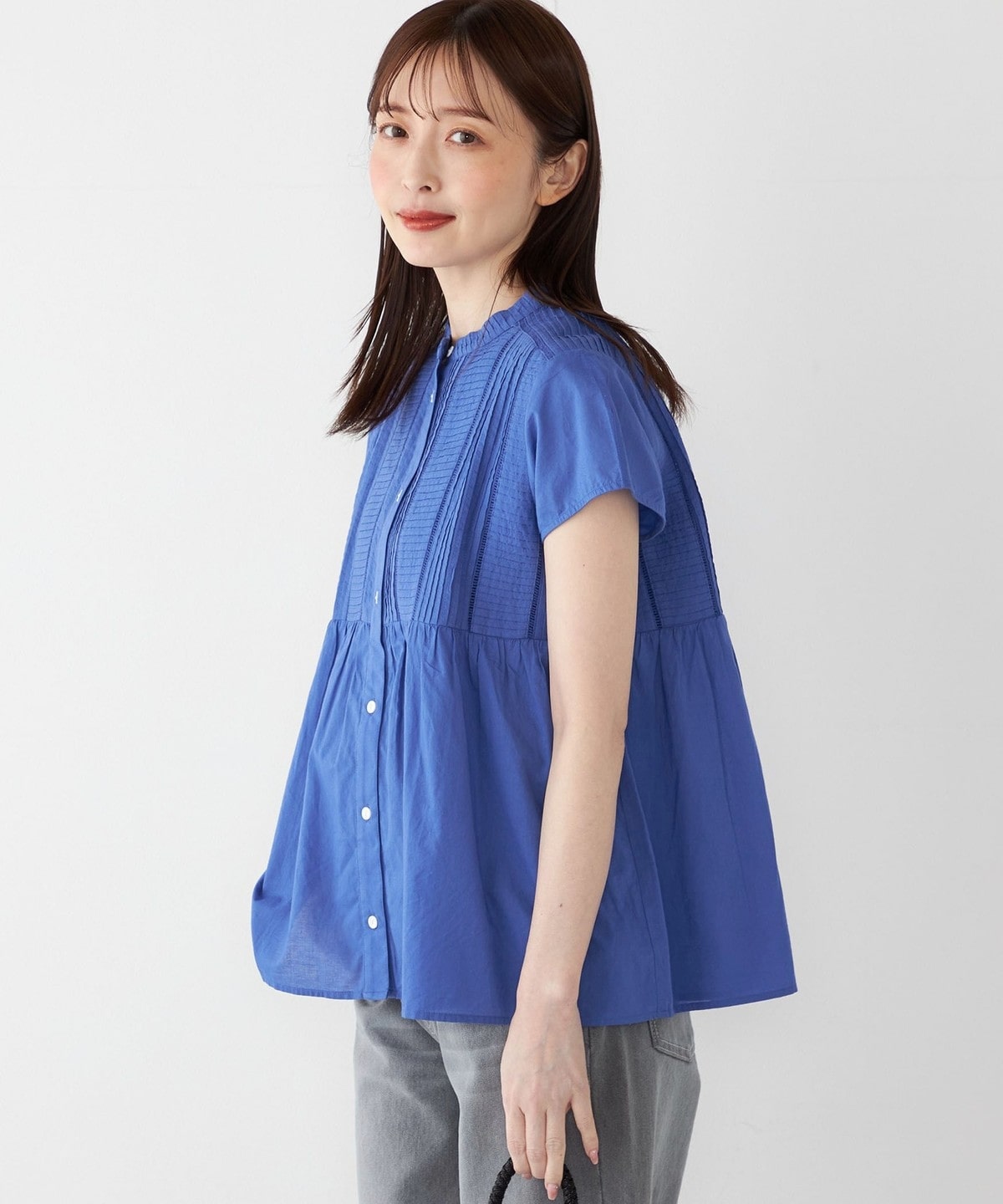 SHIPS Colors:〈接触冷感・洗濯機可能〉サッカー ランタンスリーブ ブラウス