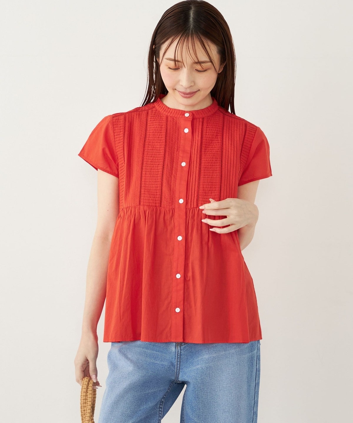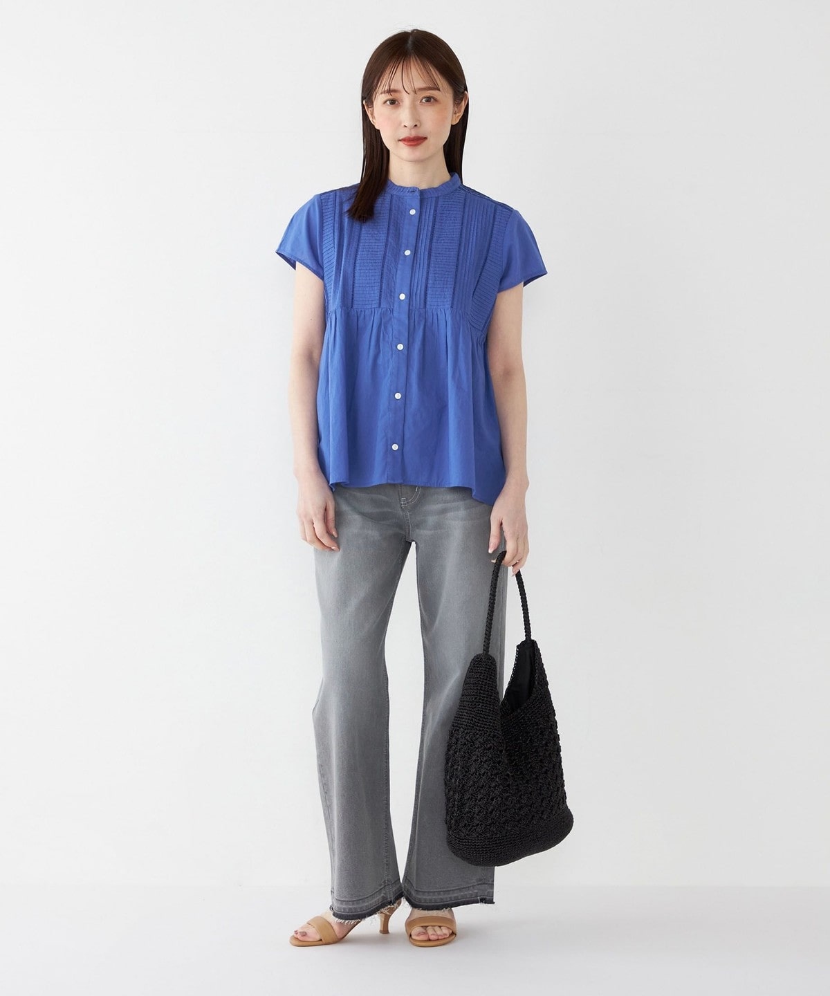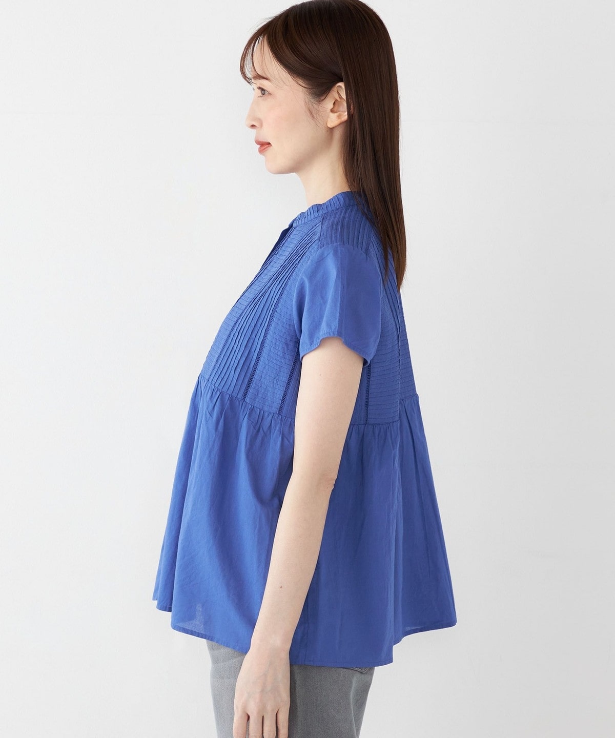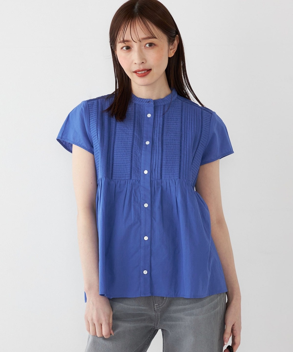 SHIPS Colors:〈接触冷感・洗濯機可能〉サッカー ランタンスリーブ ブラウス