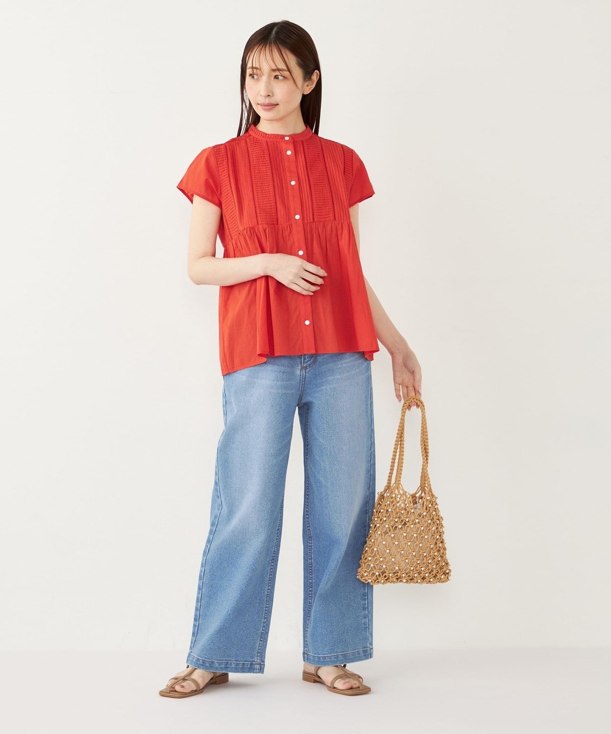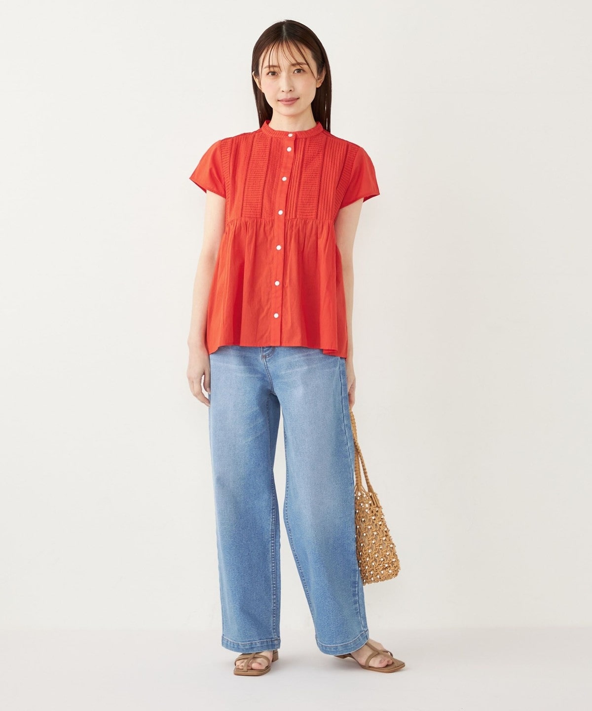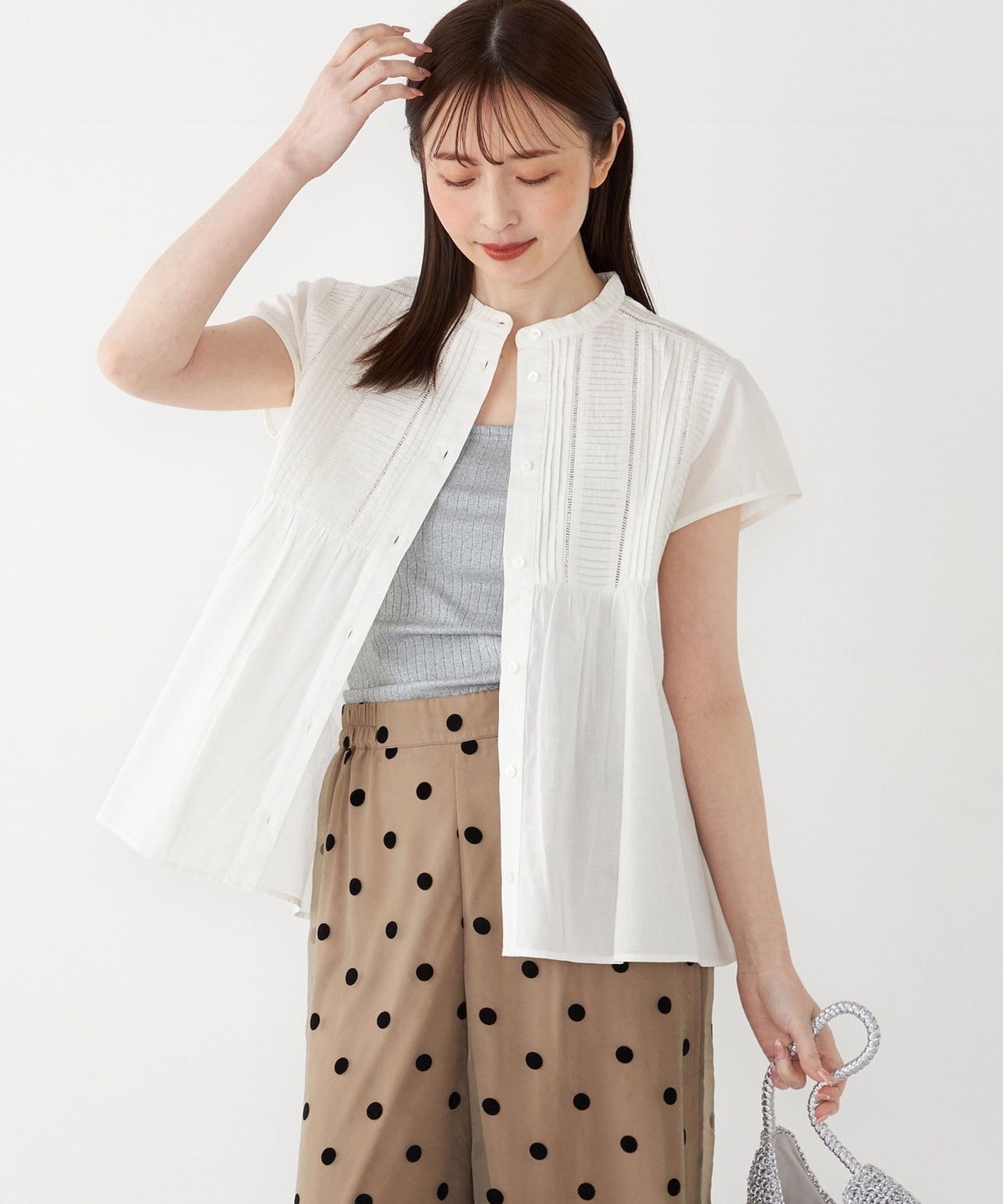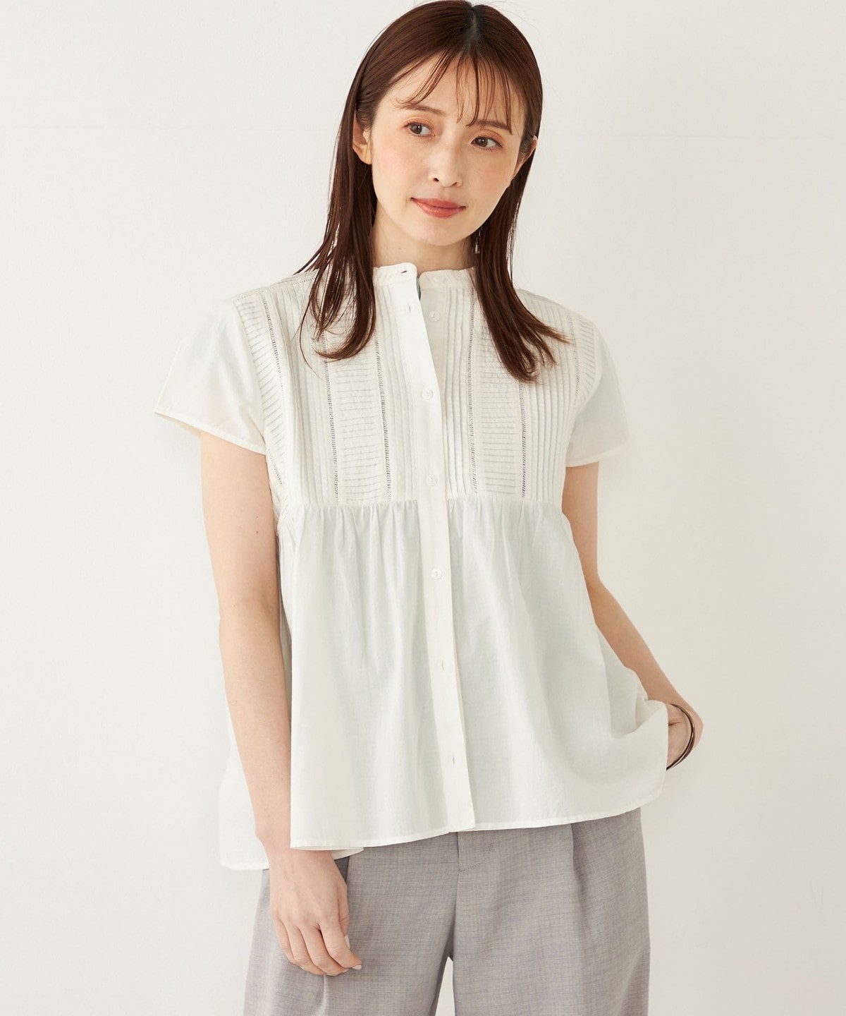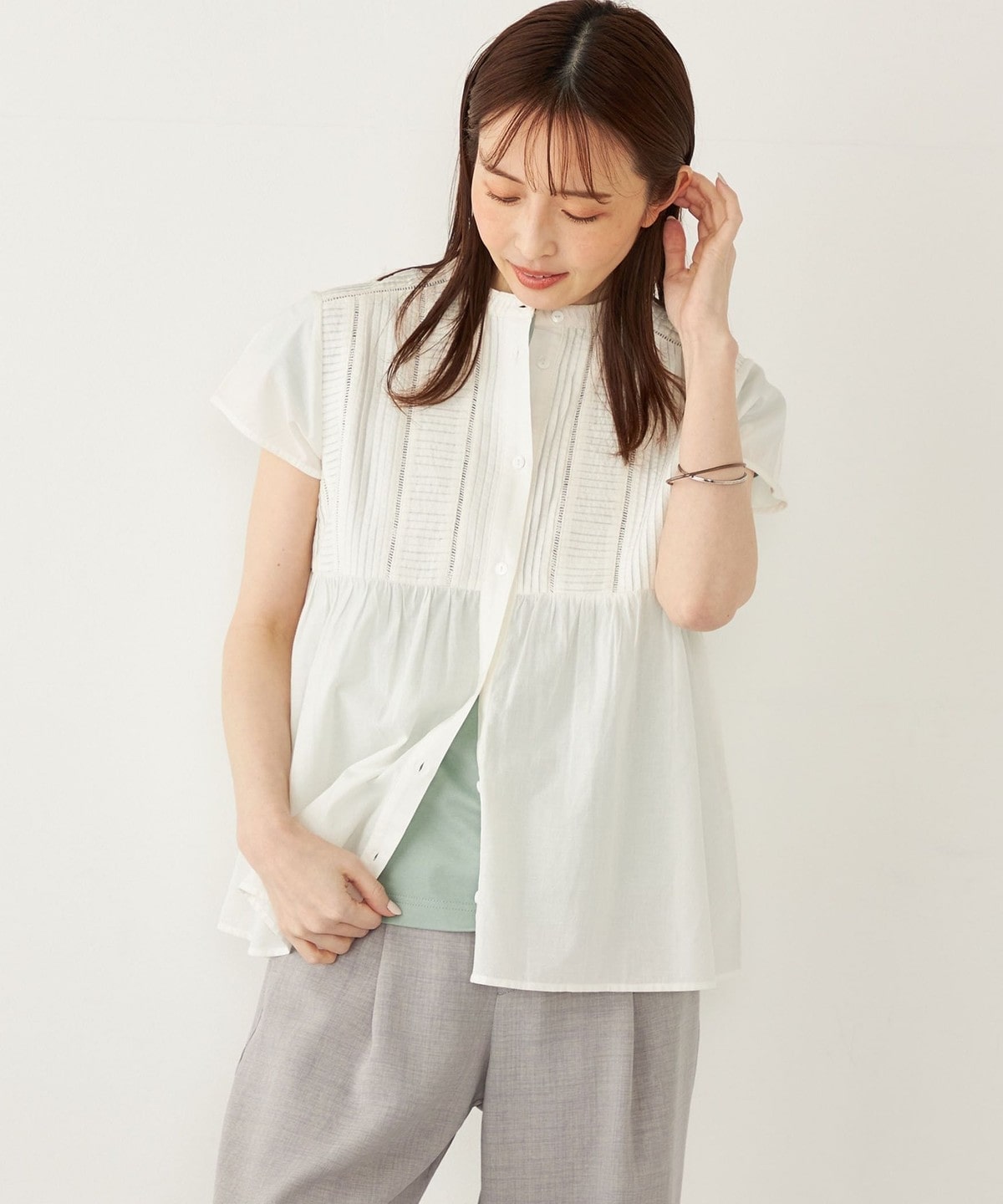SHIPS Colors:〈接触冷感・洗濯機可能〉サッカー ランタンスリーブ ブラウス