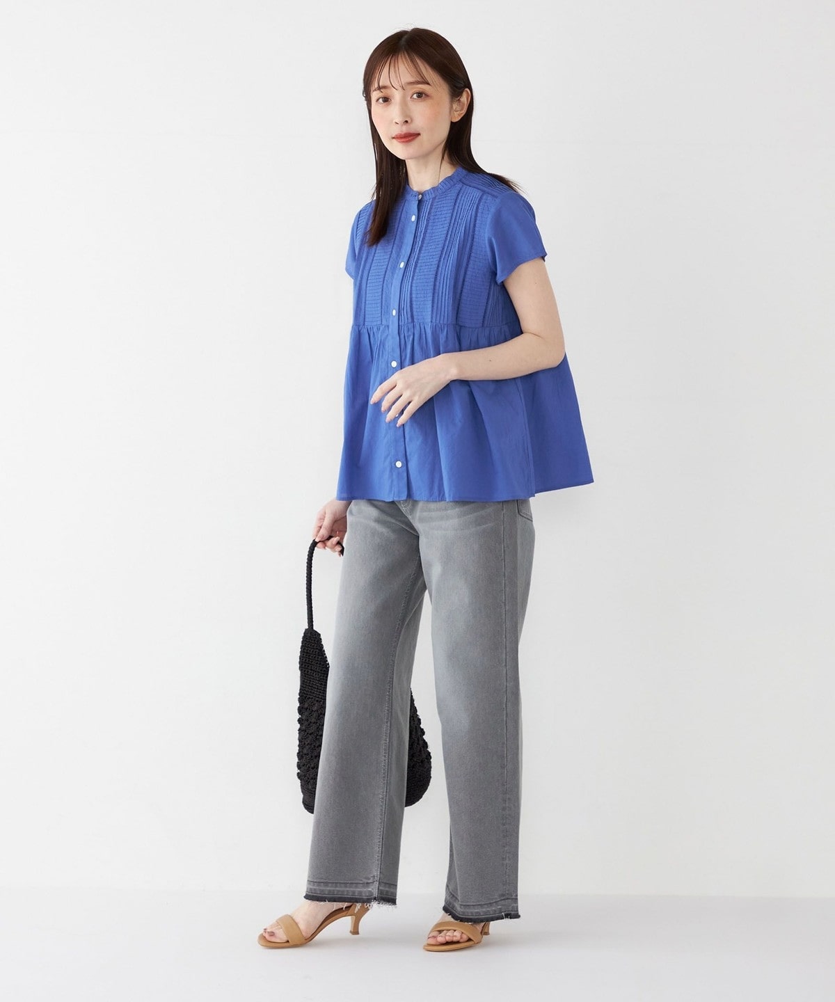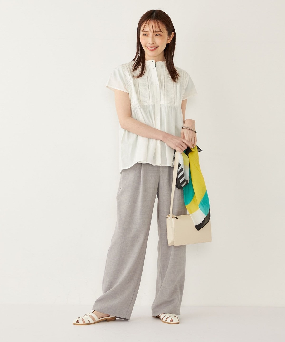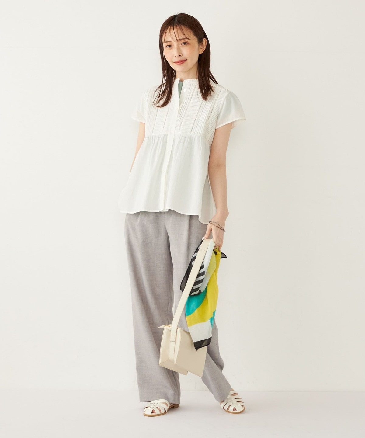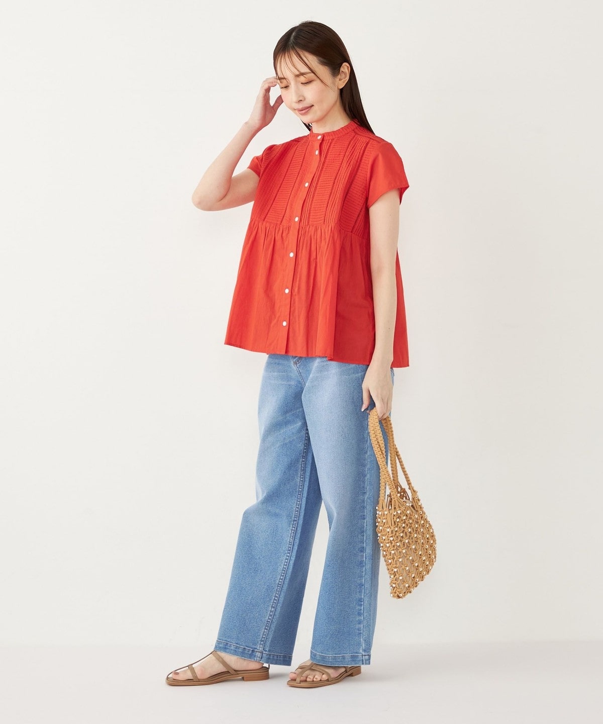SHIPS Colors:〈接触冷感・洗濯機可能〉サッカー ランタンスリーブ ブラウス