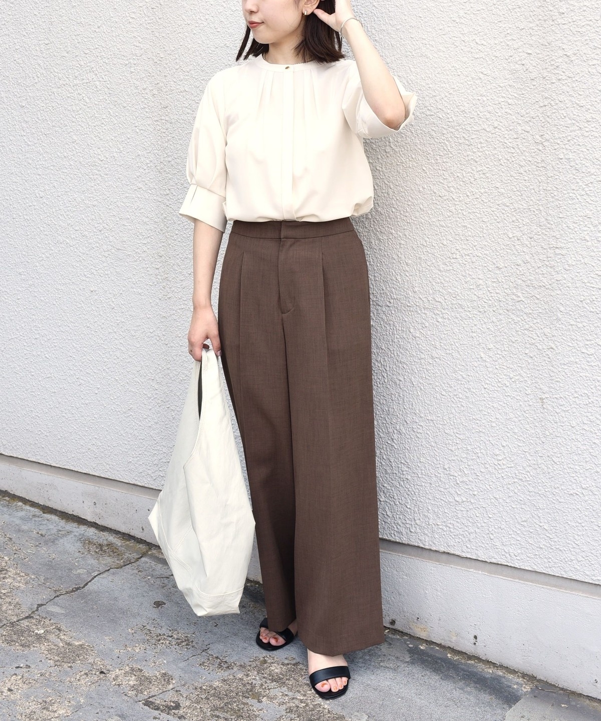 上品な印象のフロントタックのシャツブラウス。