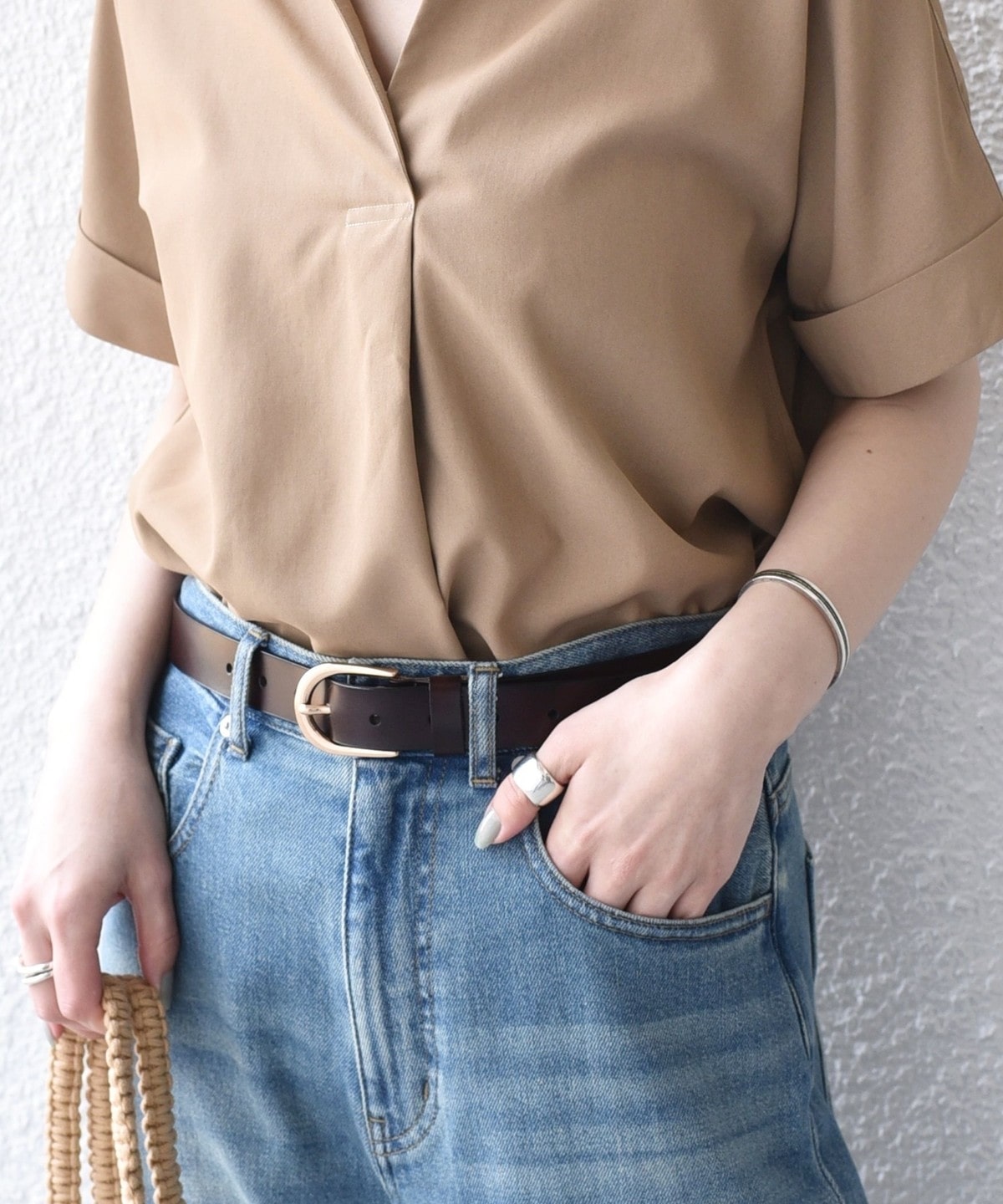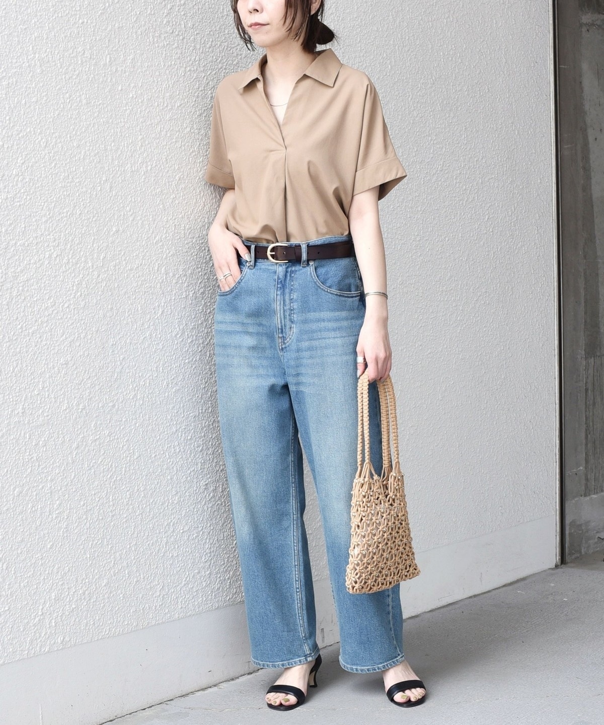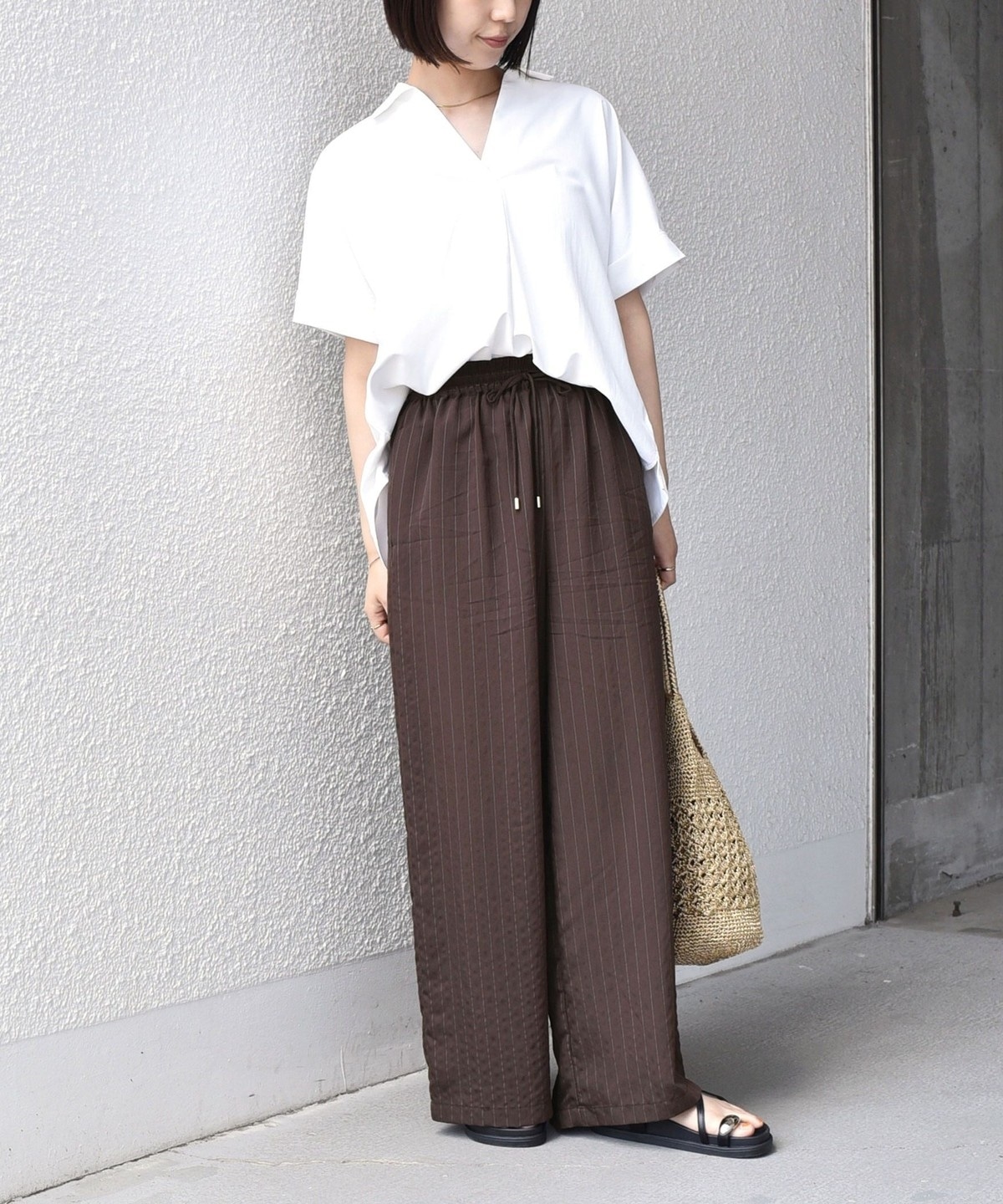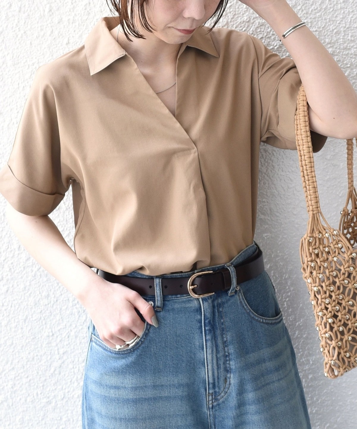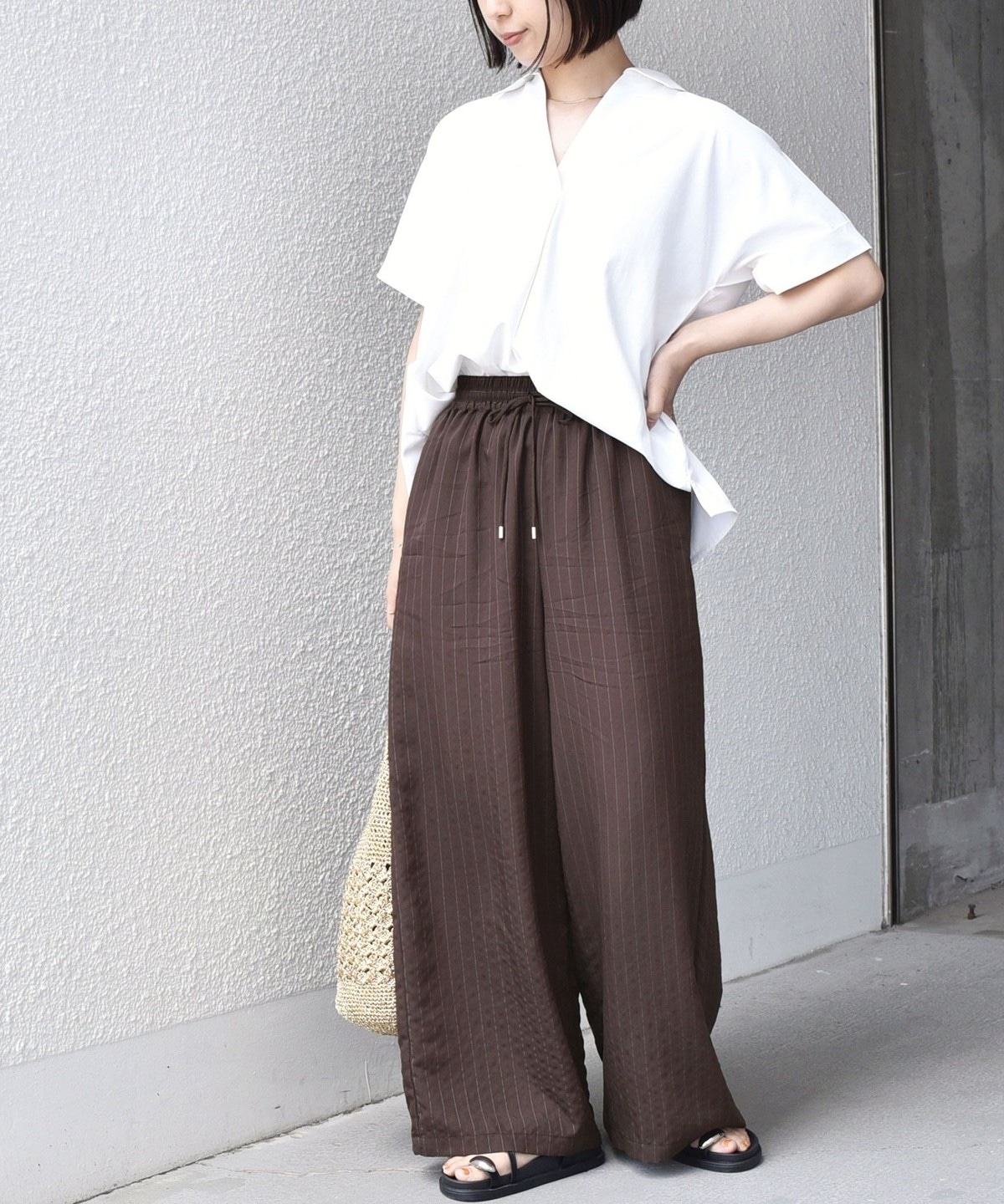 リネンパンツやイージーパンツと合わせ、スキッパーデザインの抜け感を活かしたリラックススタイルがおすすめです。