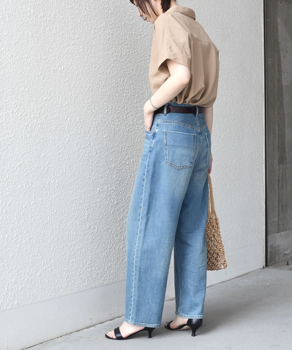 やや後ろが長めのラウンドヘムで、自然と腰回りをカバーしてくれます。