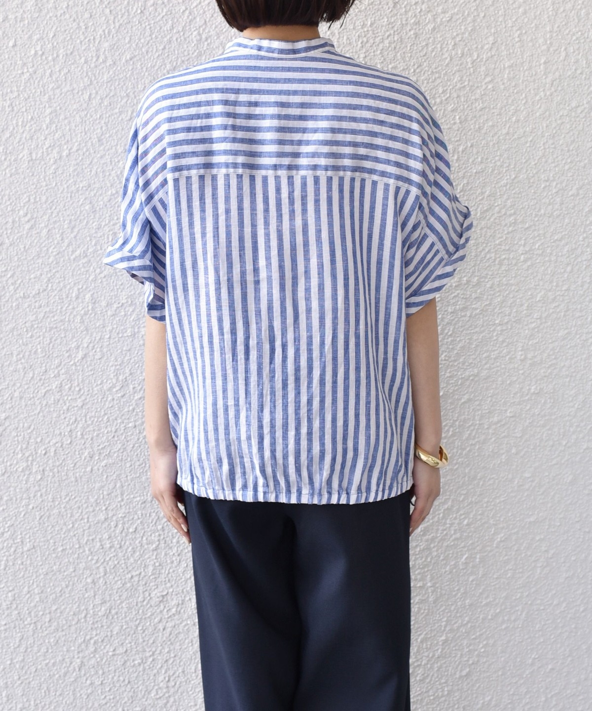 ゆったりしたサイジングなのでストレスフリーな着用感で、夏に着ていただきやすい1枚です。