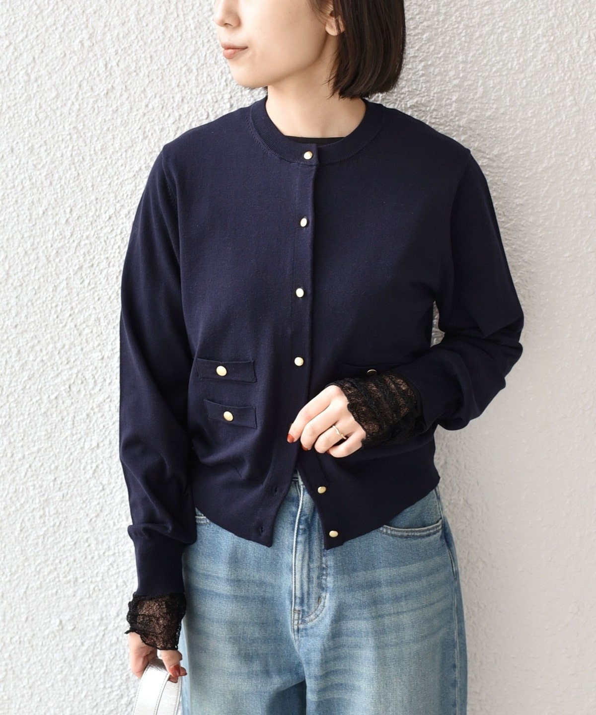 やや長めのレース仕様のため、重ね着した際に袖からしっかりレースが覗き、スタイリングのアクセントになります。