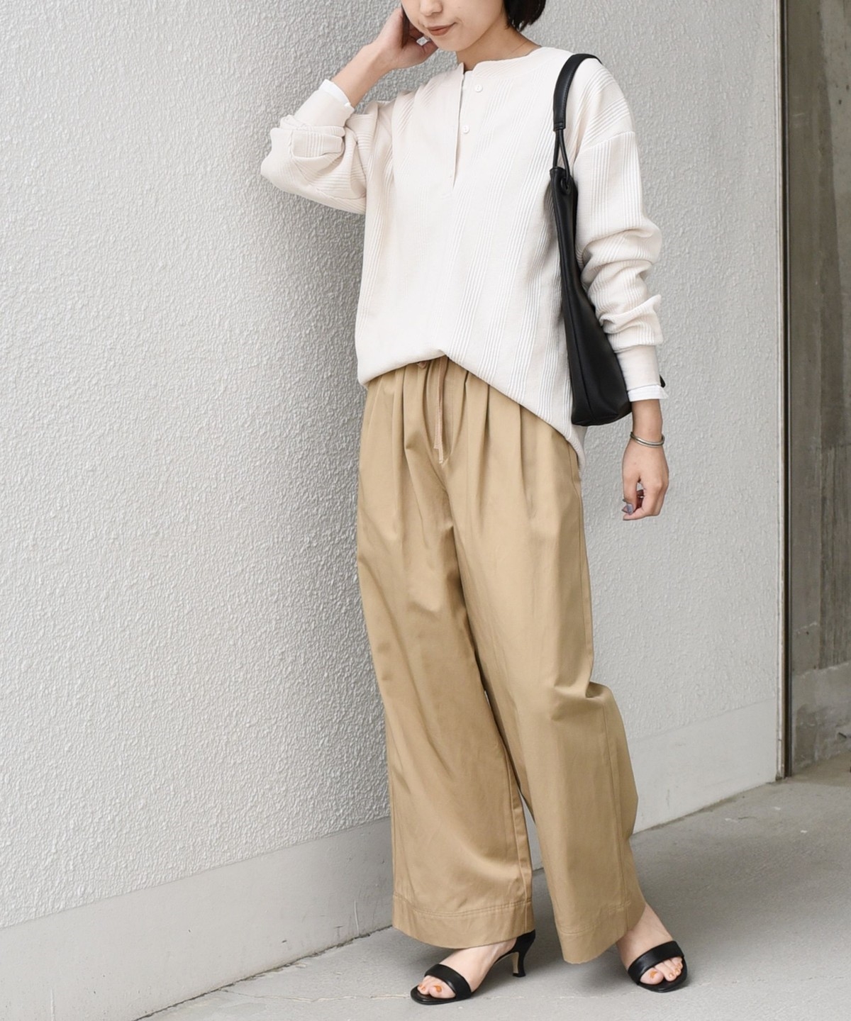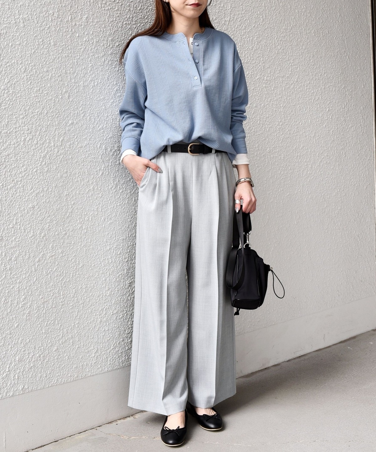 ヘンリーネック同士の重ね着も、今季らしいこなれたバランスに。