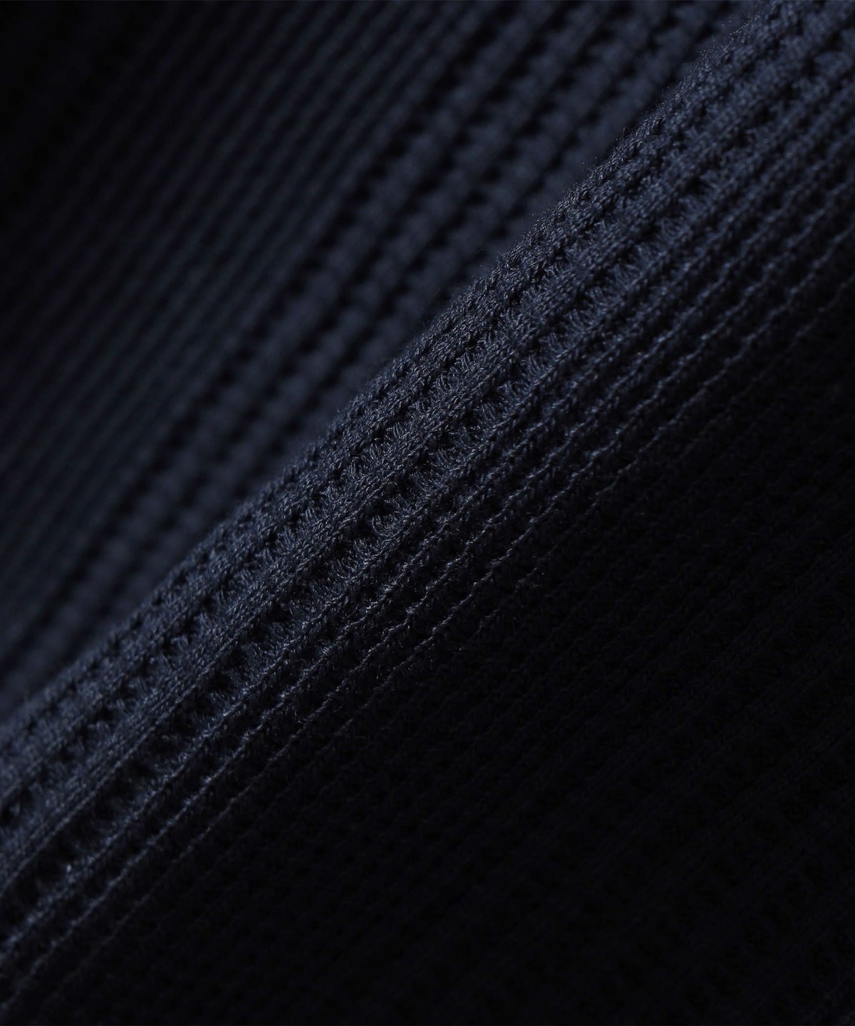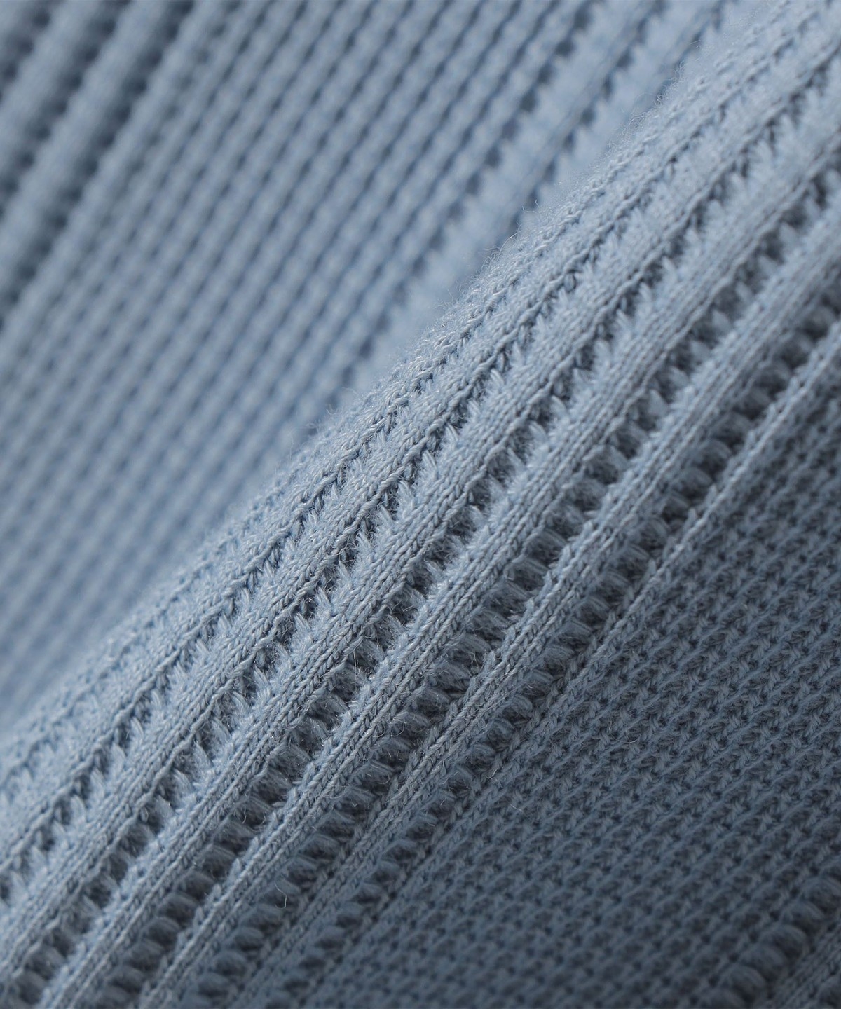 ストライプ状に見える凹凸が特徴の変形ワッフル素材を使用。