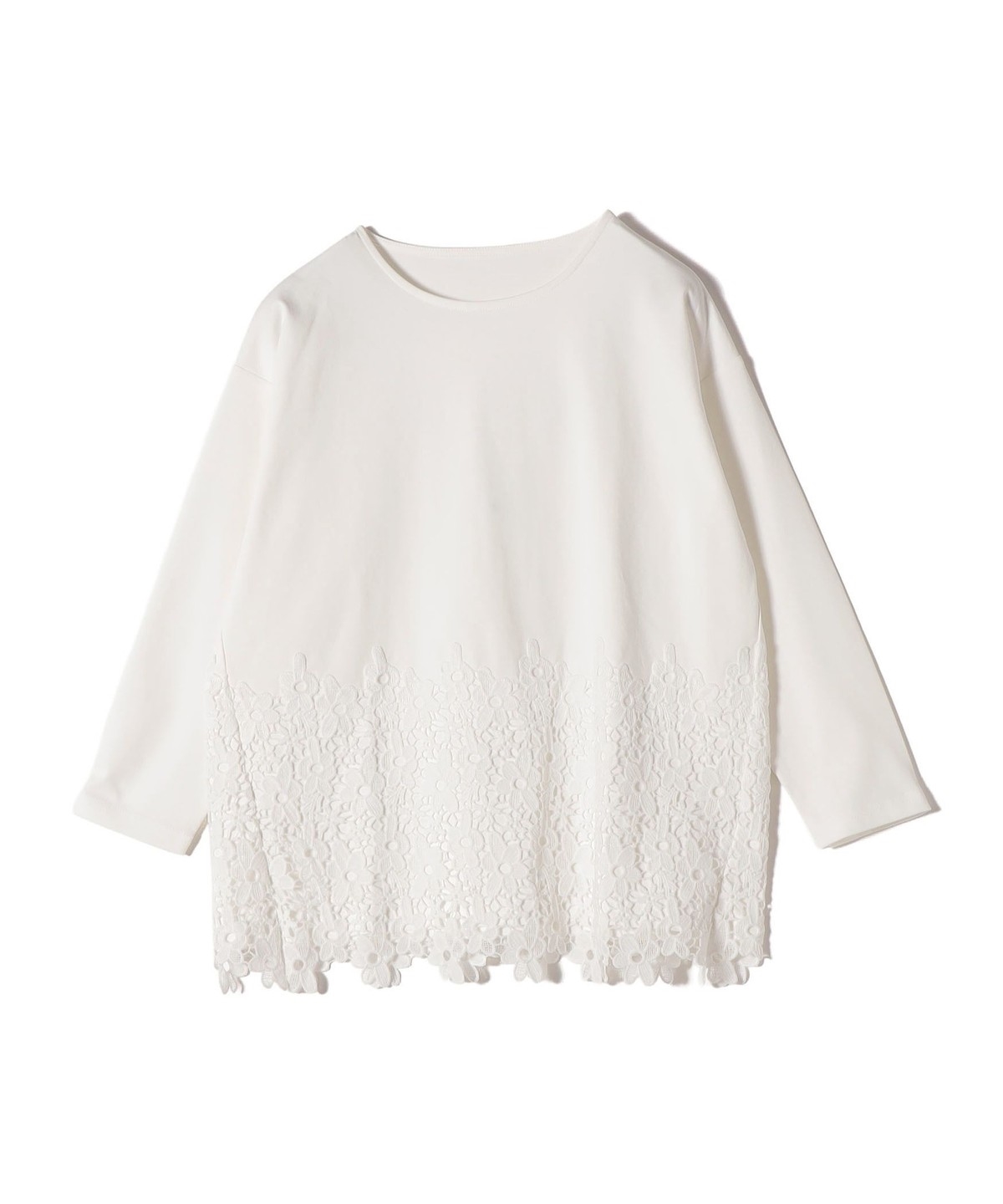 裾にレースがドッキングされたカットソー。