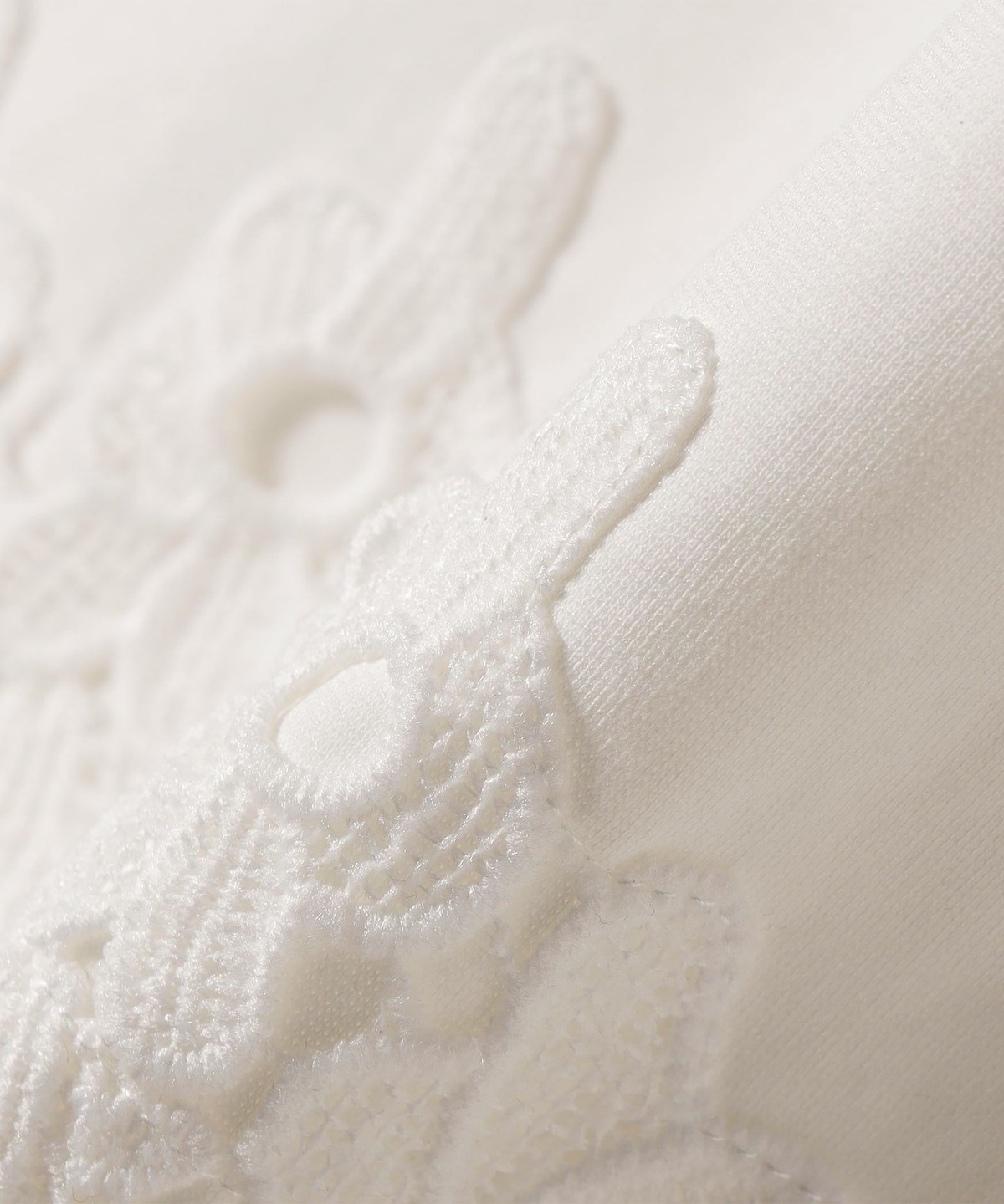トレンド感のあるレースコンビトップス。