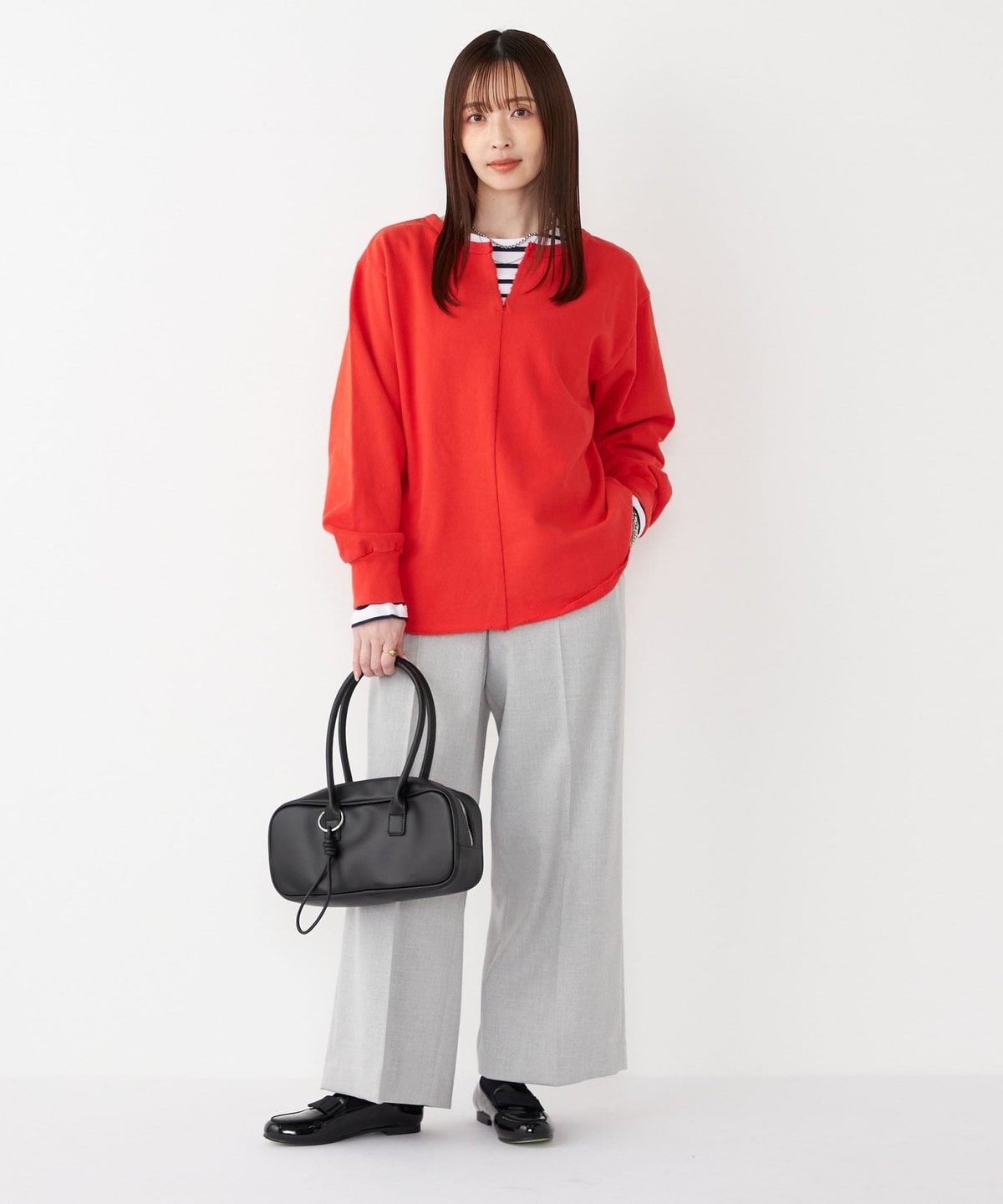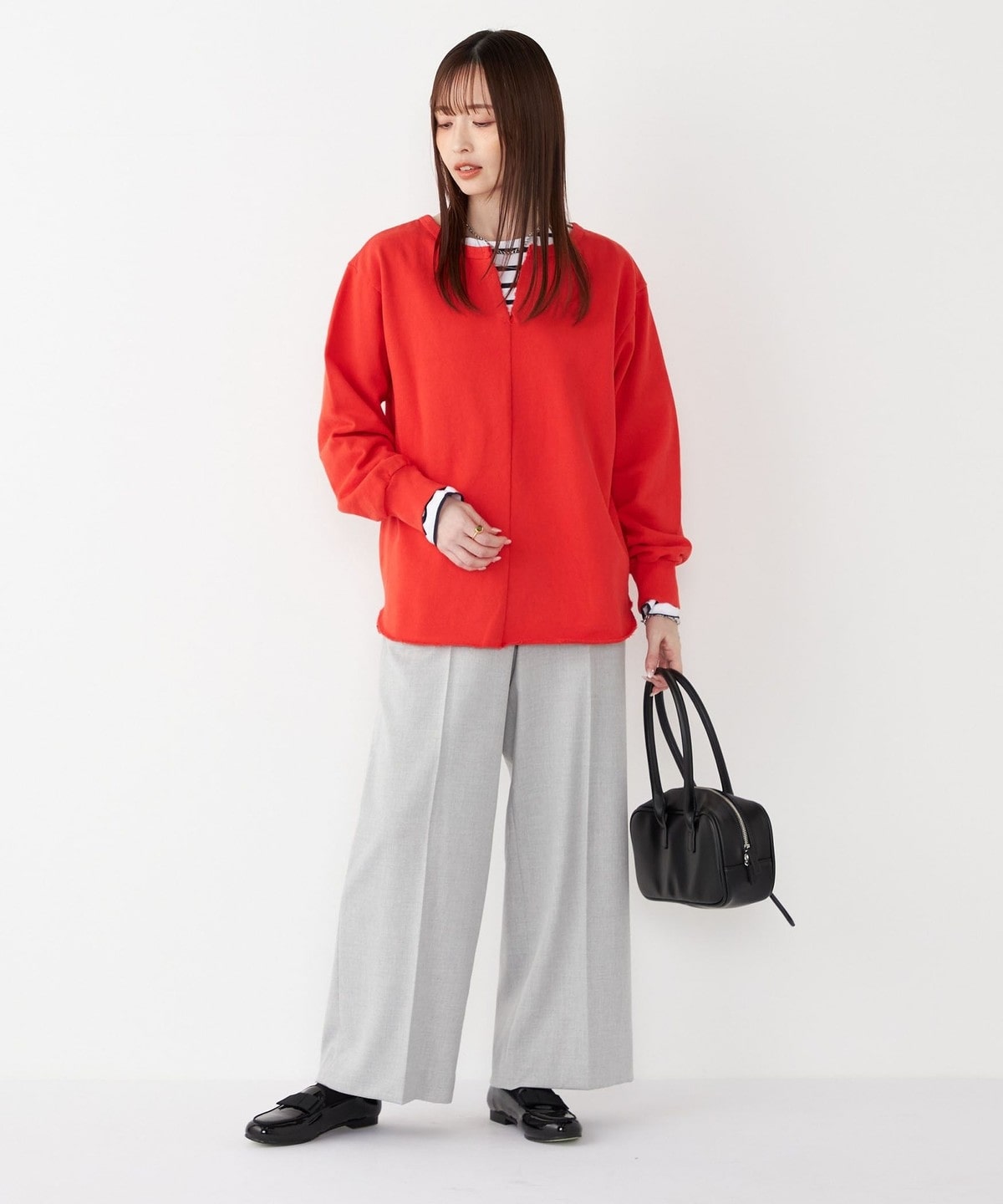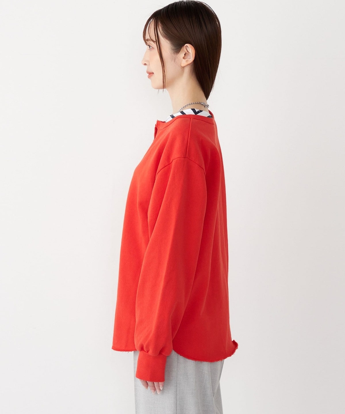 インナーにカットソーやタートルネックをレイヤードしていただくと、雰囲気を変えてお楽しみいただけます。
