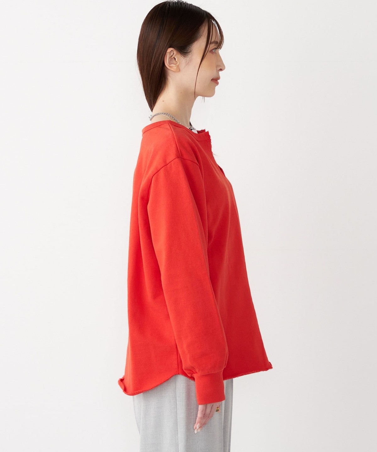 裾と襟元が断ち切り仕様にしたスキッパープルオーバー。