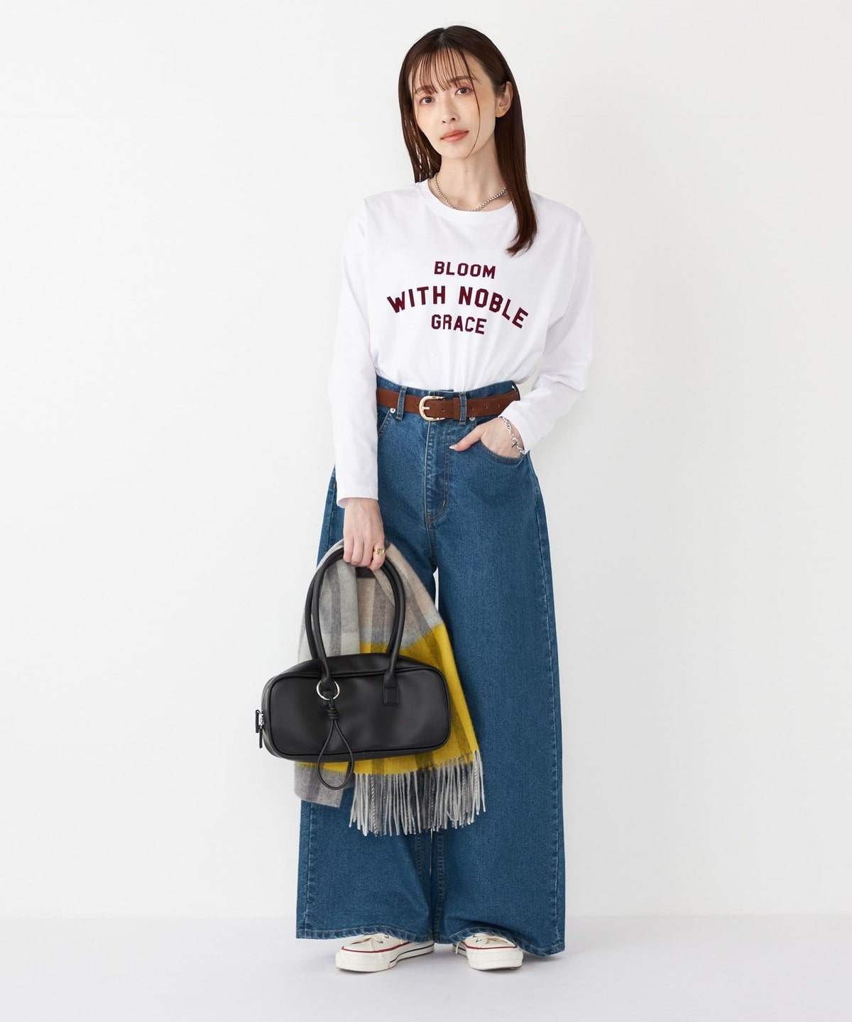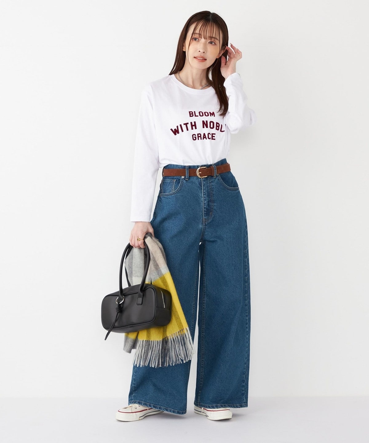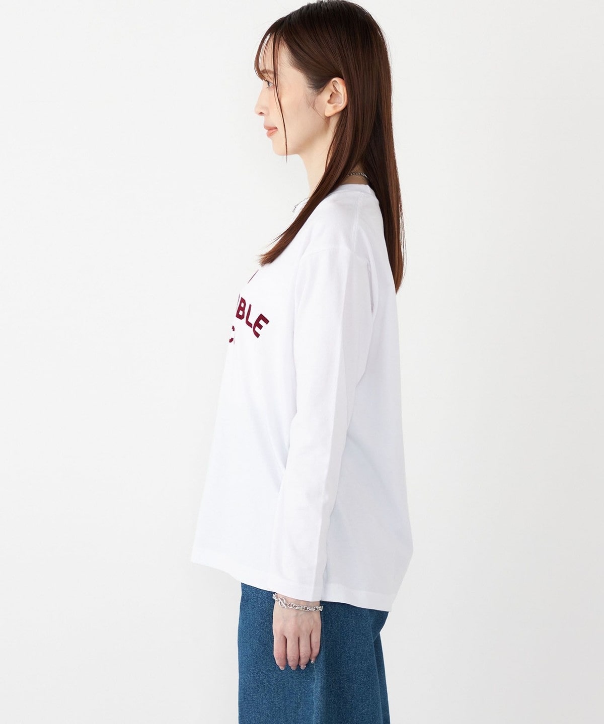 程よいゆとりがあるので、シンプルなスタイルでも大人カジュアルな印象に仕上がります。
