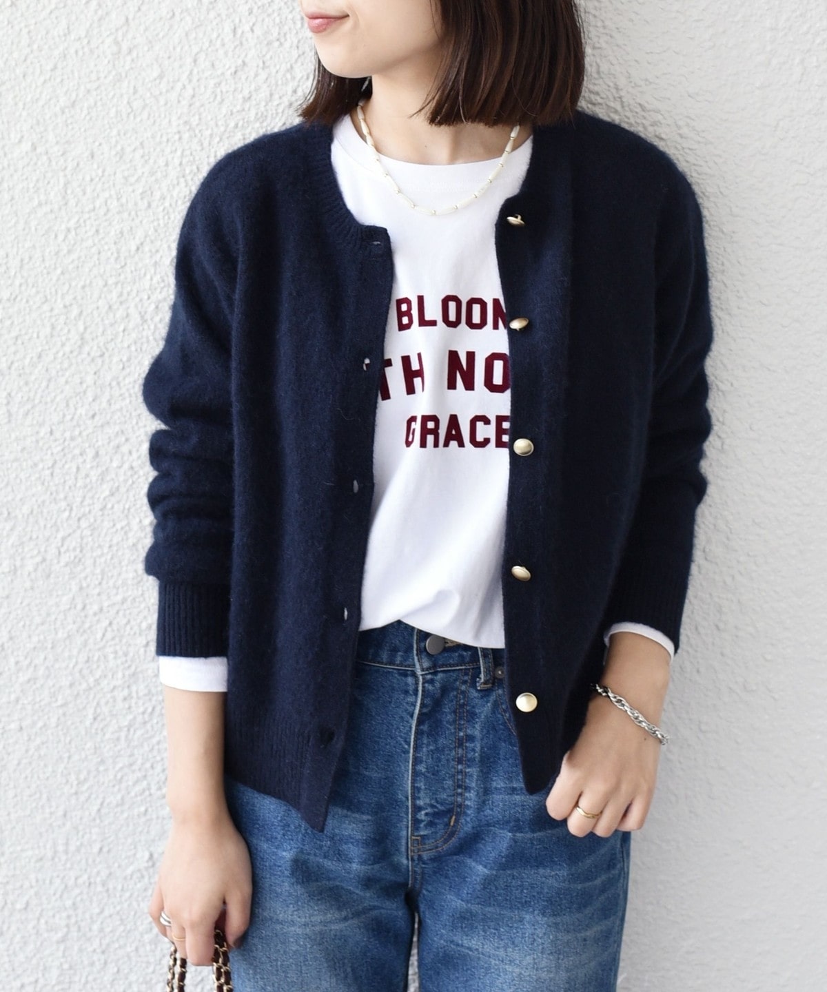 カーディガンやアウターのインナーとしても重宝し、季節を通して幅広くスタイリングを楽しんでいただけます。