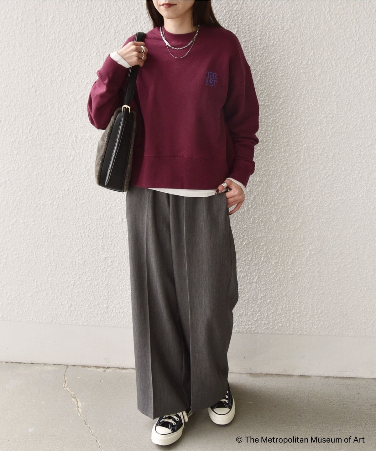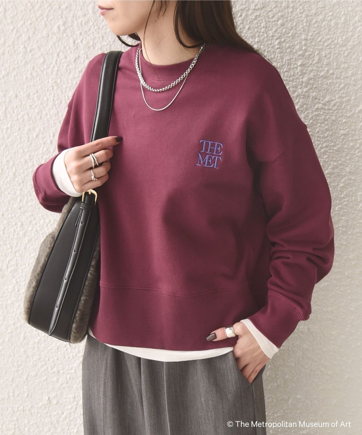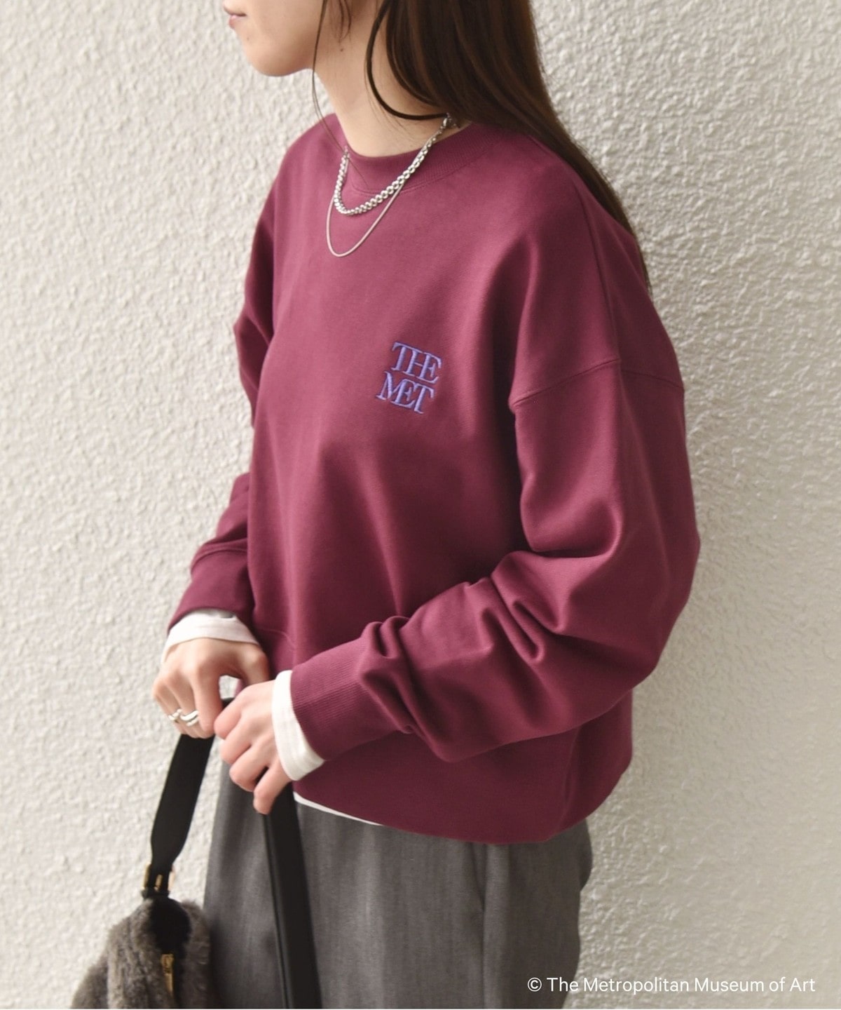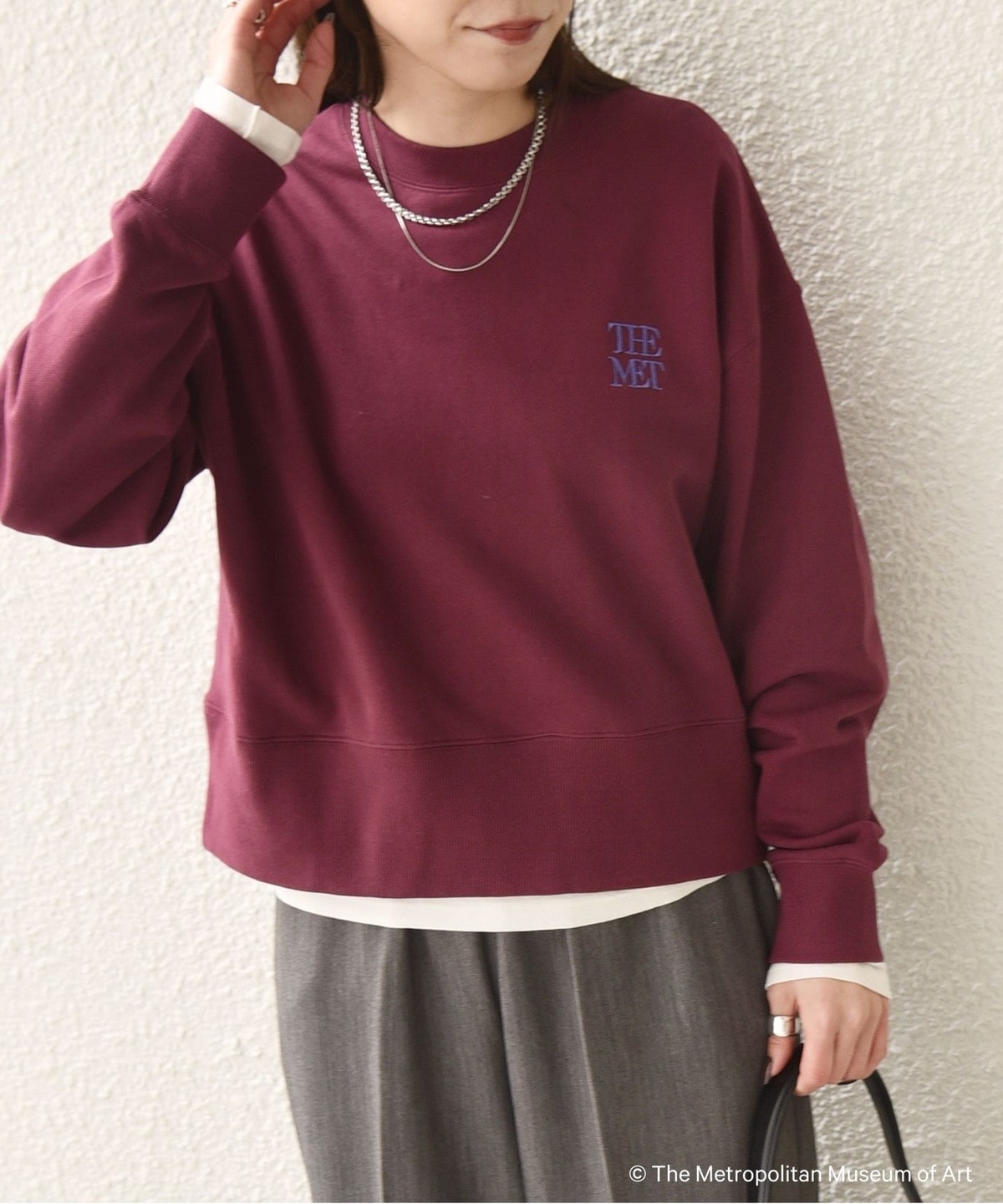 左胸に「The Met」のロゴを刺繍で施したスウェット。