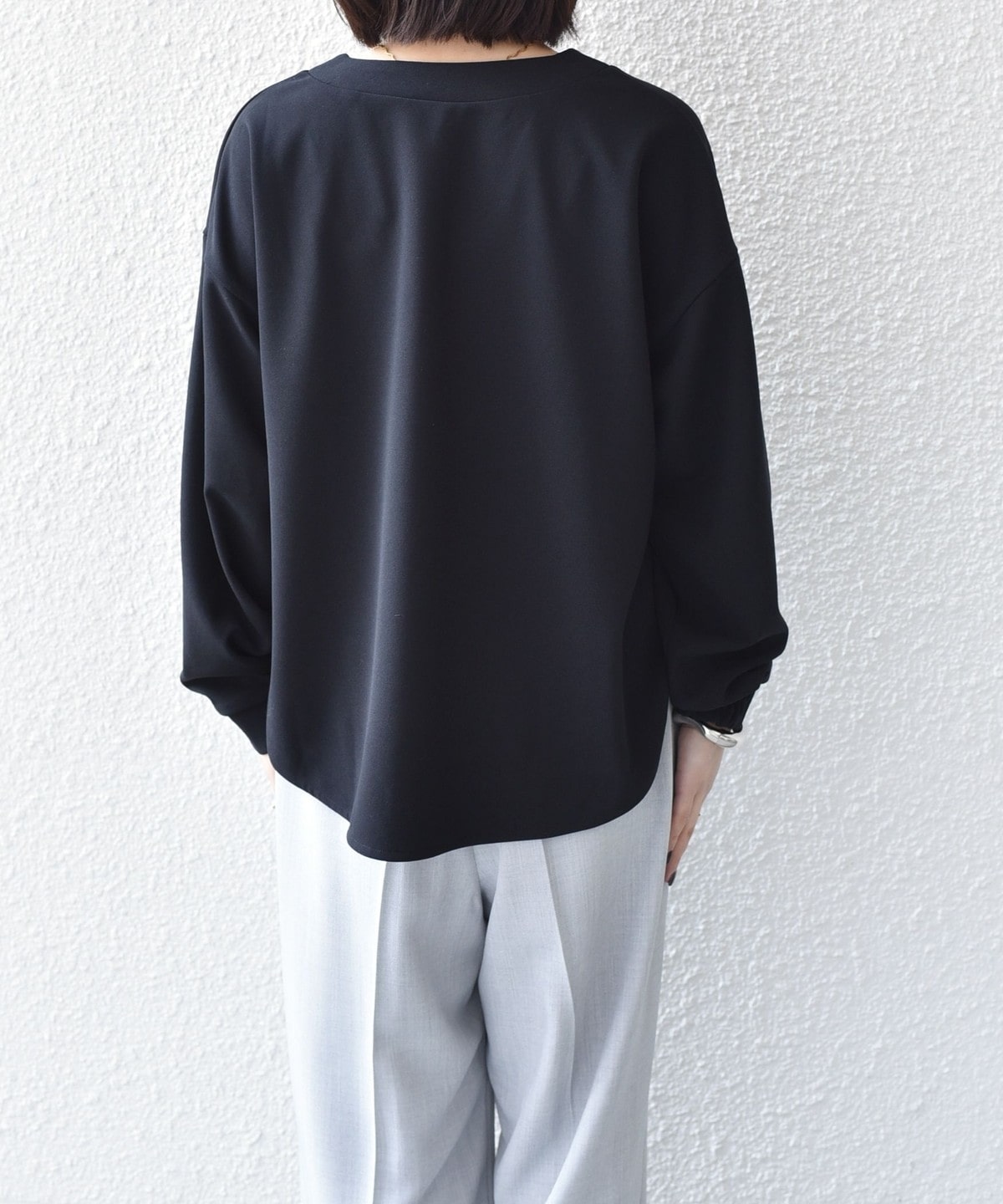袖の後ろにはゴムを入れ、カフスのような見た目ながら腕まくりなどしやすいのもポイントです。