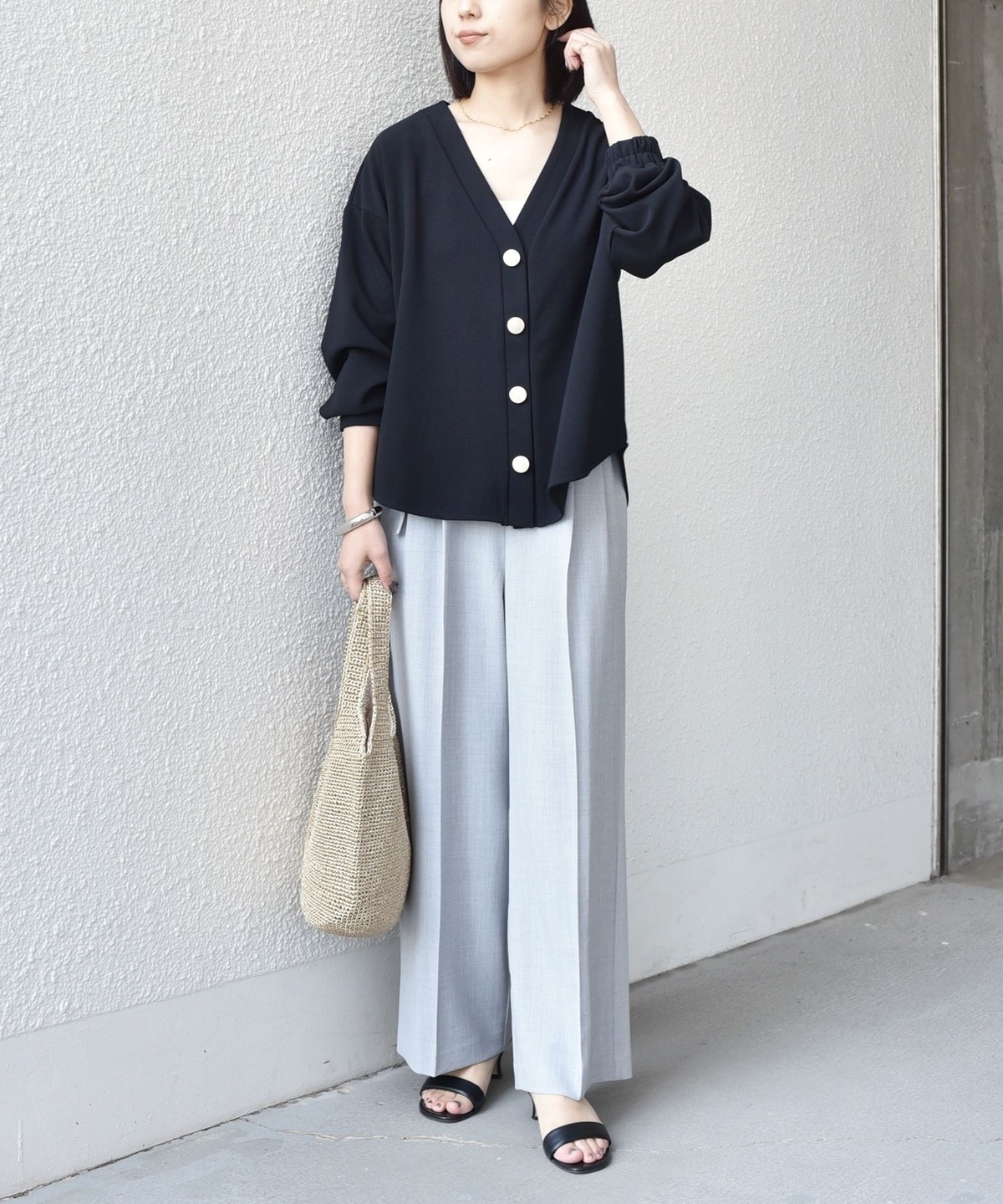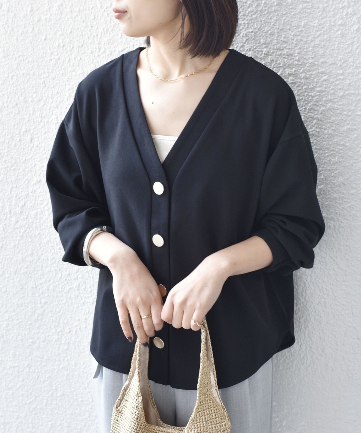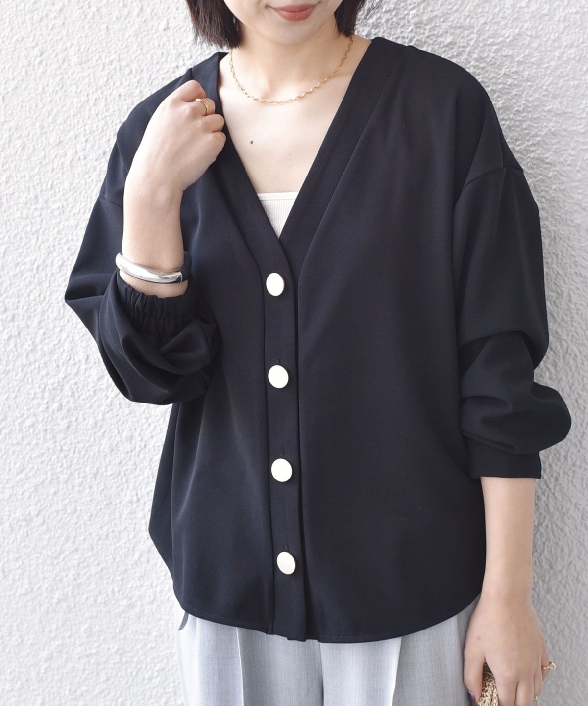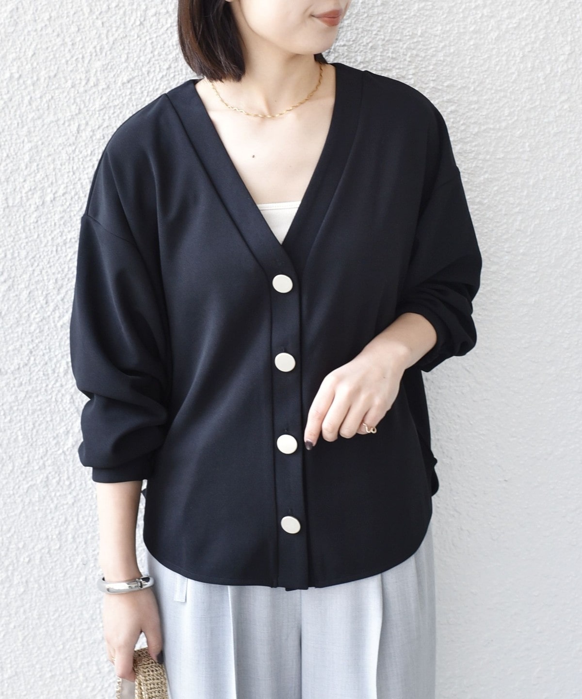 前後差のあるシャツテールがこなれ感のあるカーディガン。