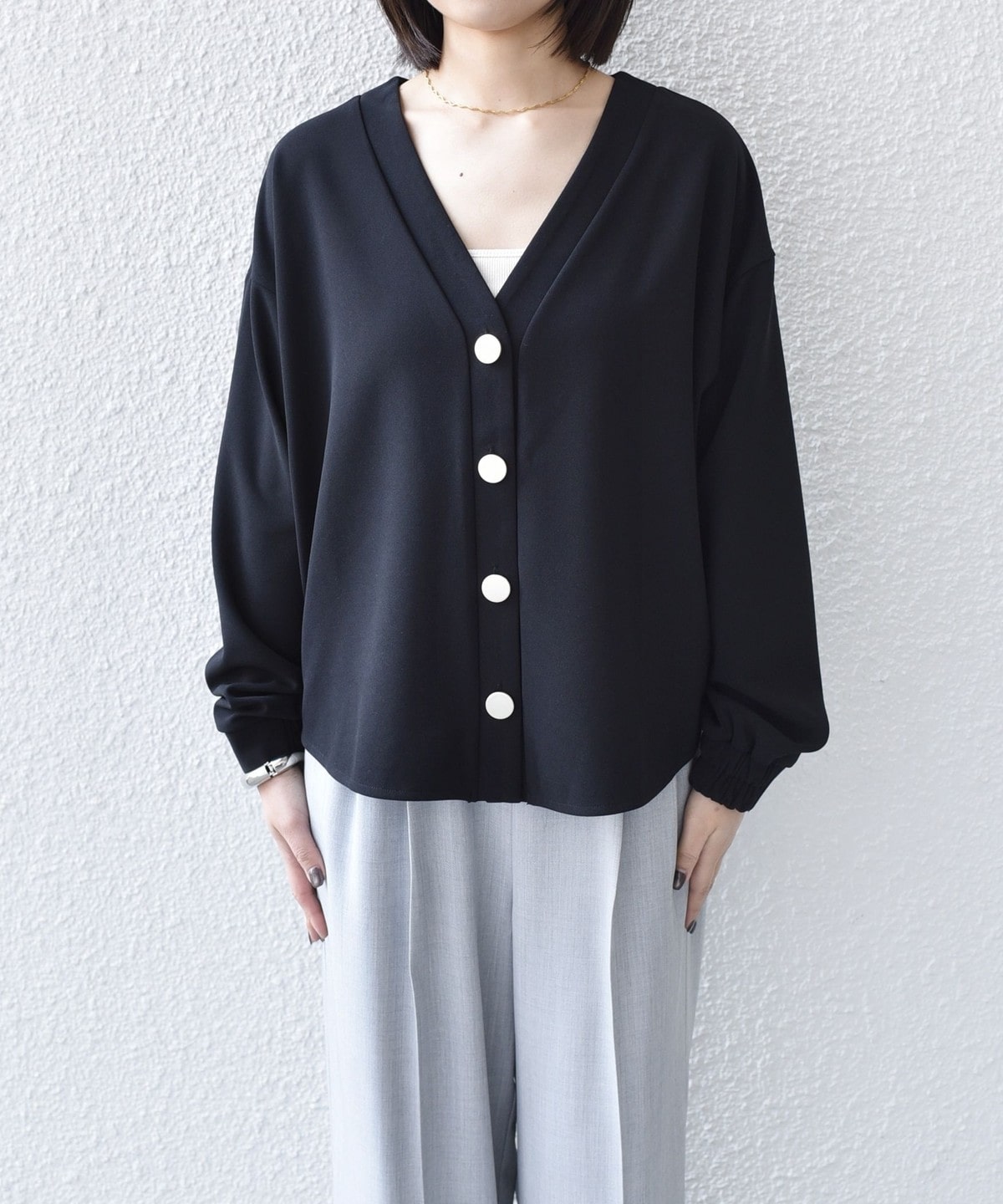 ボタンを閉めてプルオーバー風に着用していただくのもおすすめで、デニムなどと合わせるだけでコーデが決まります。