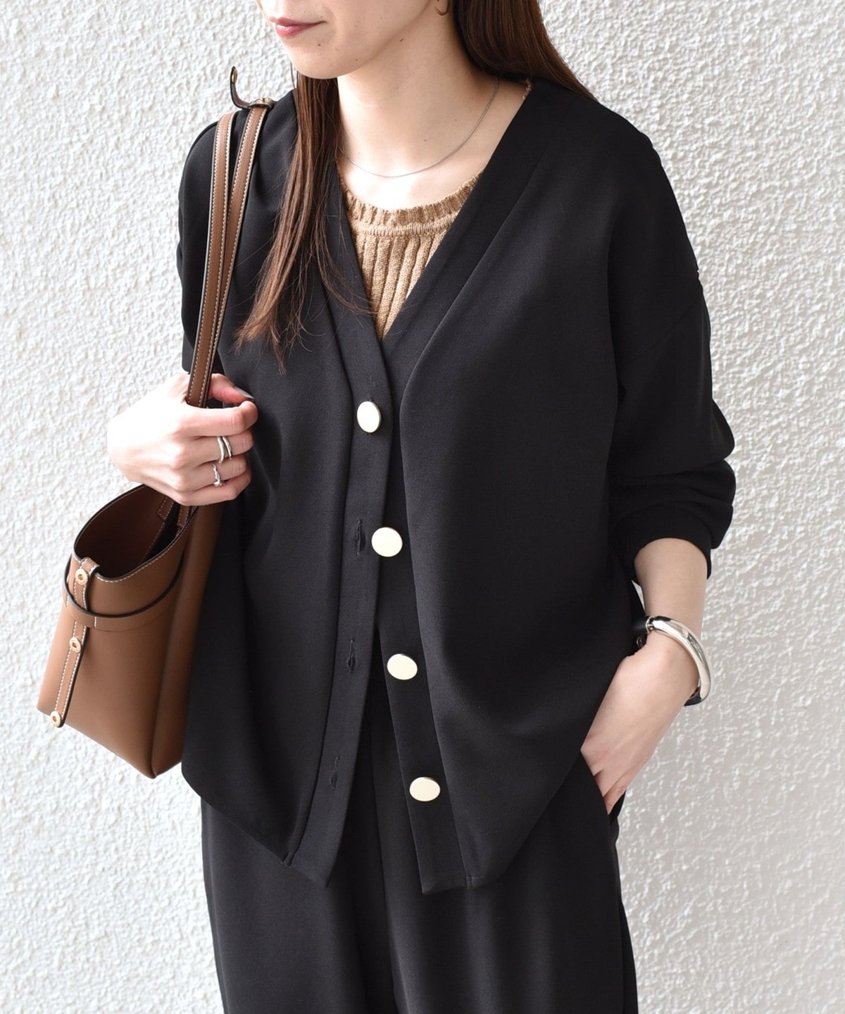 前後差のあるシャツテールがこなれ感のあるカーディガン。