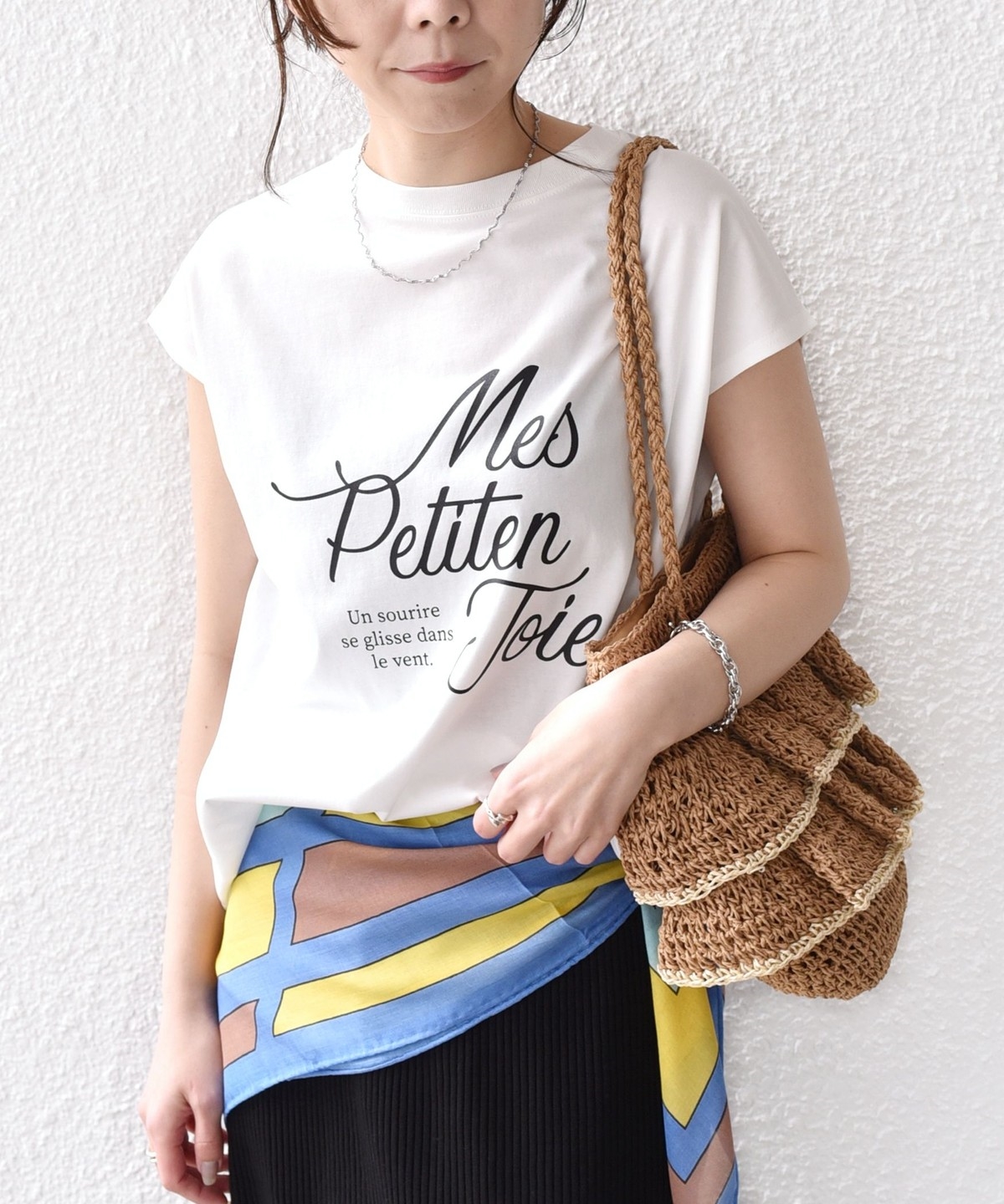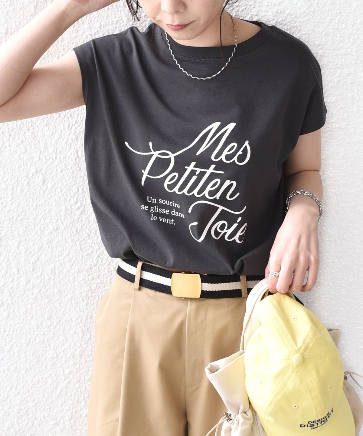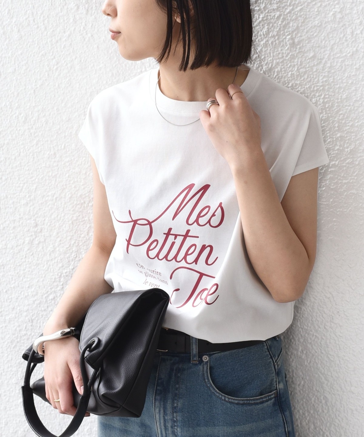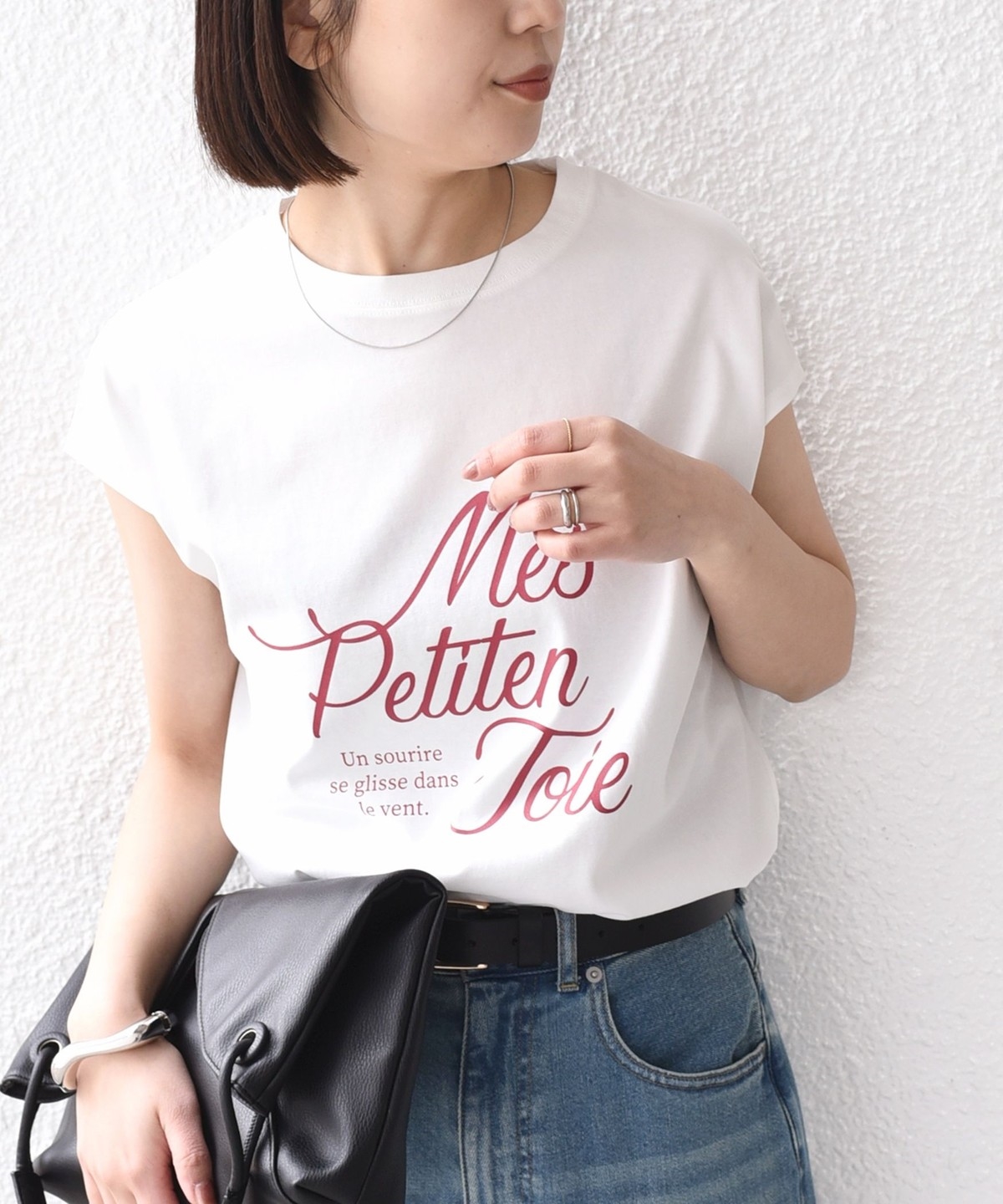 程よくゆとりのあるシルエットとフレンチスリーブが、カジュアルながらも女性らしい雰囲気で着用いただけます。