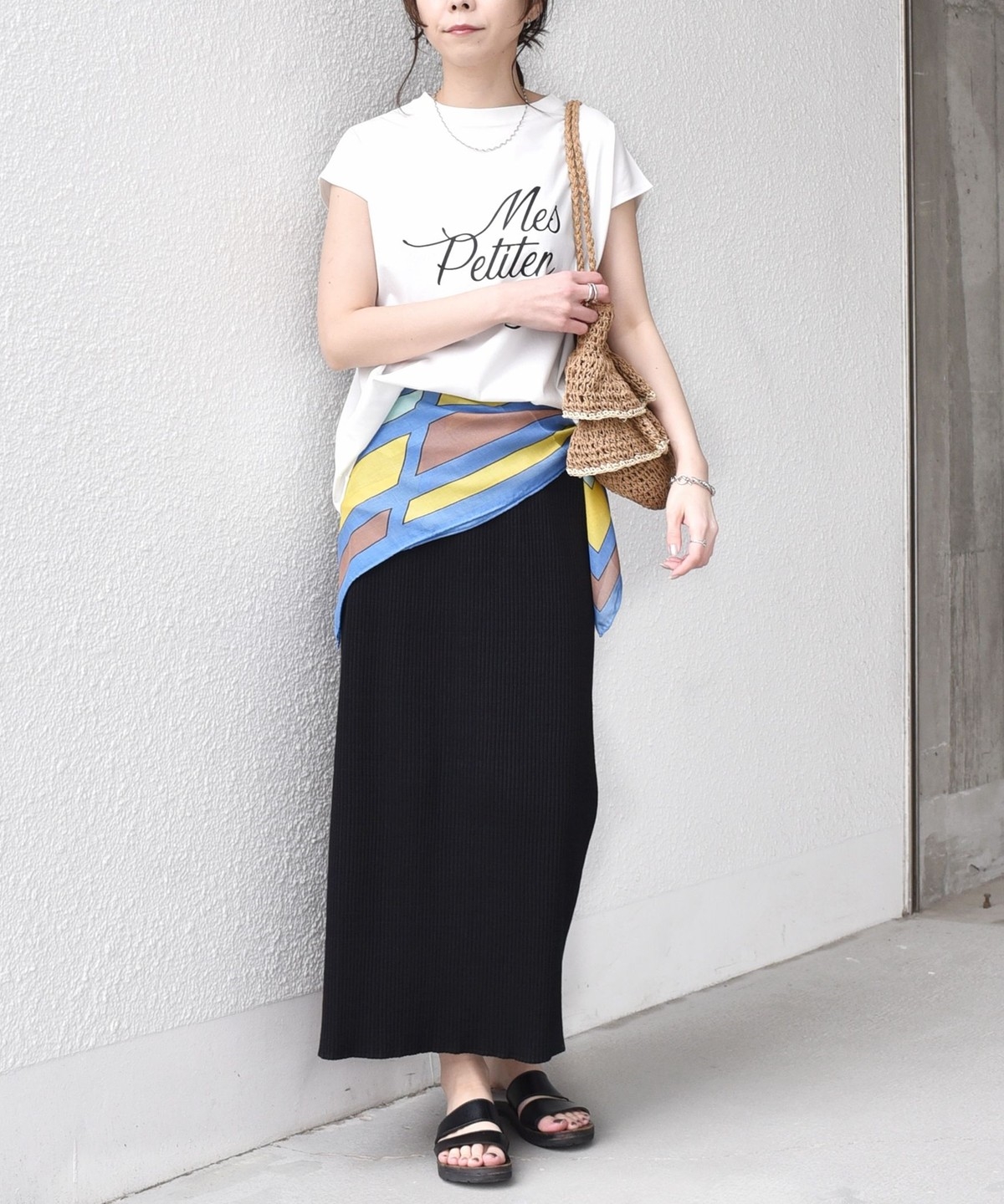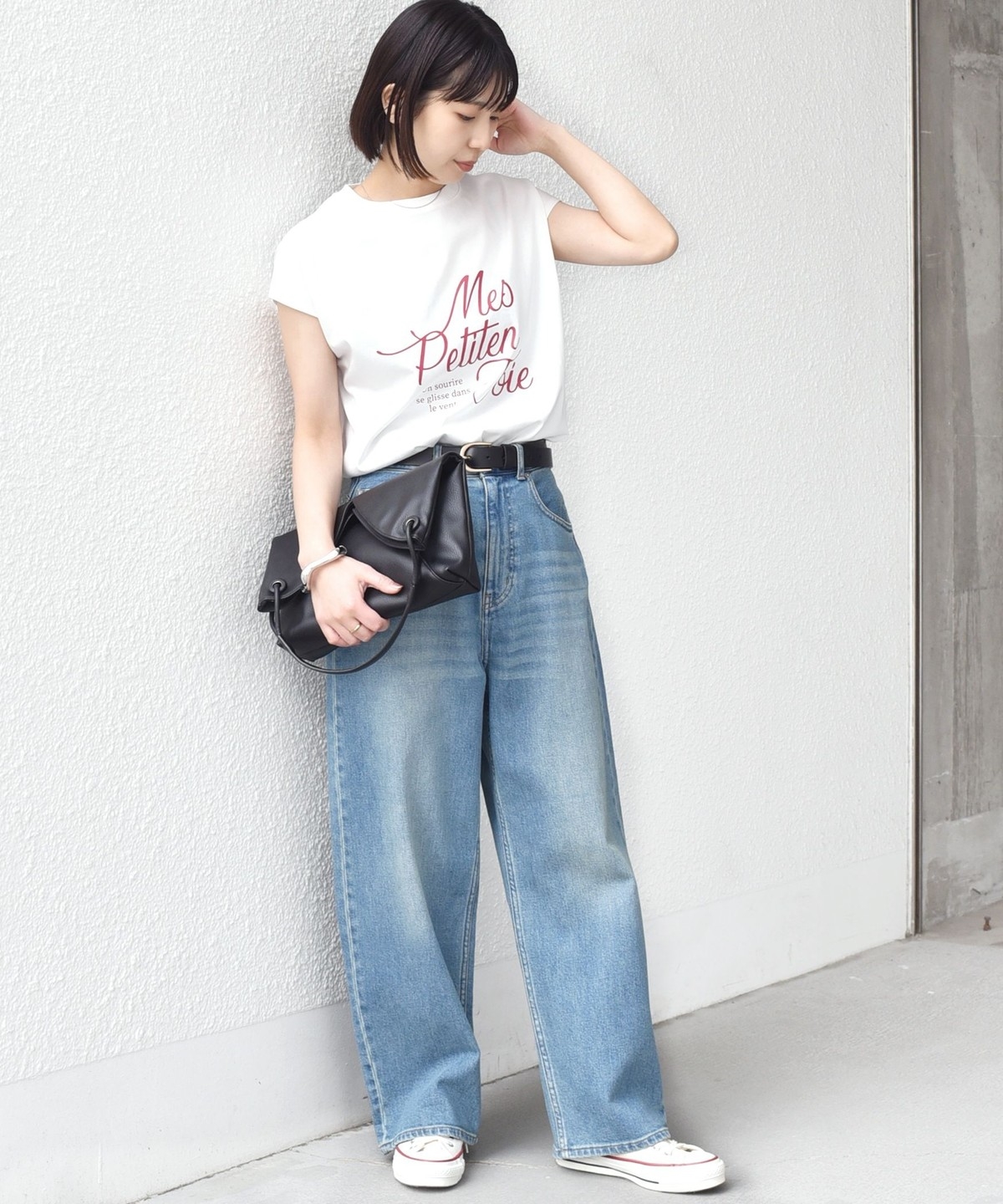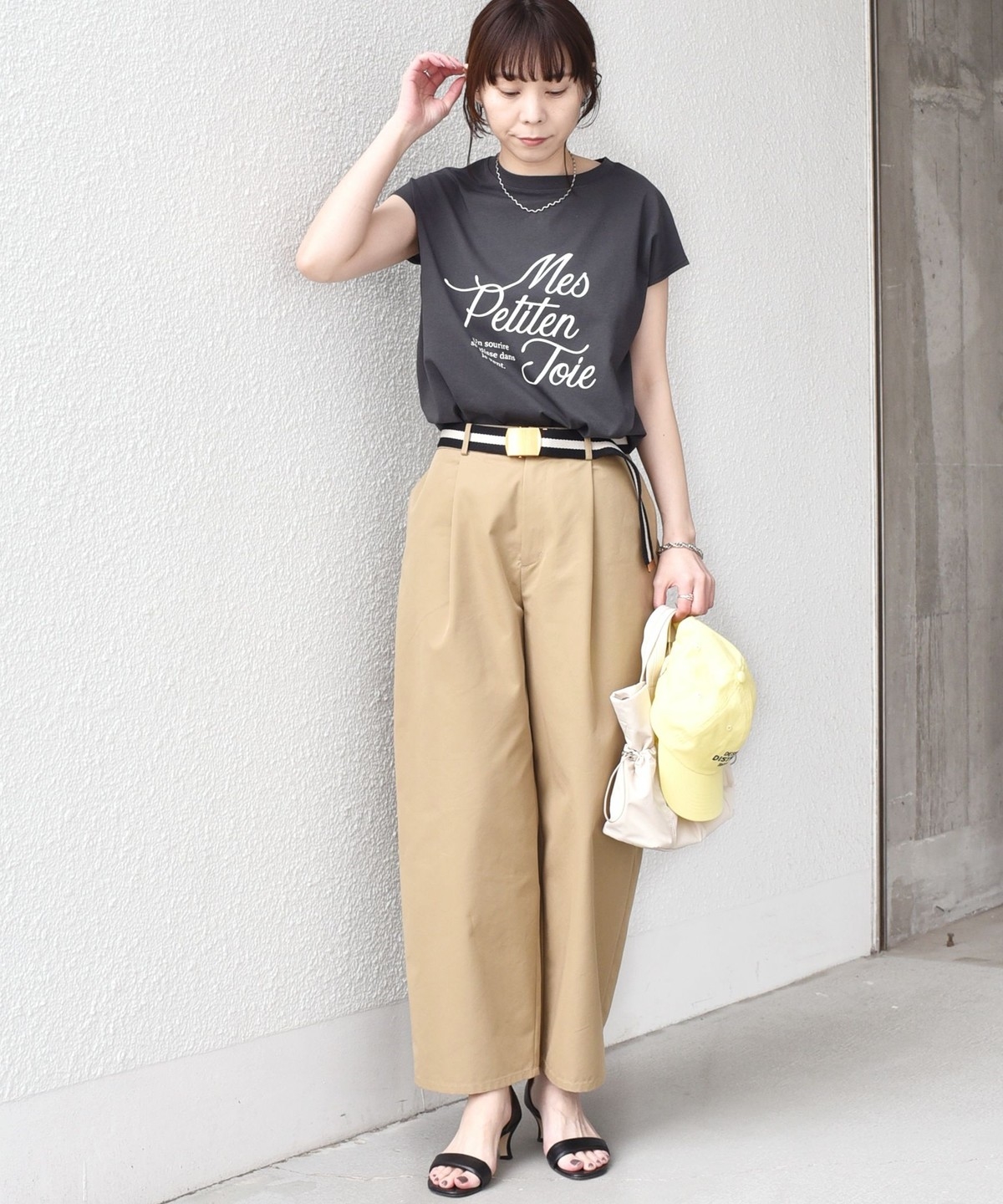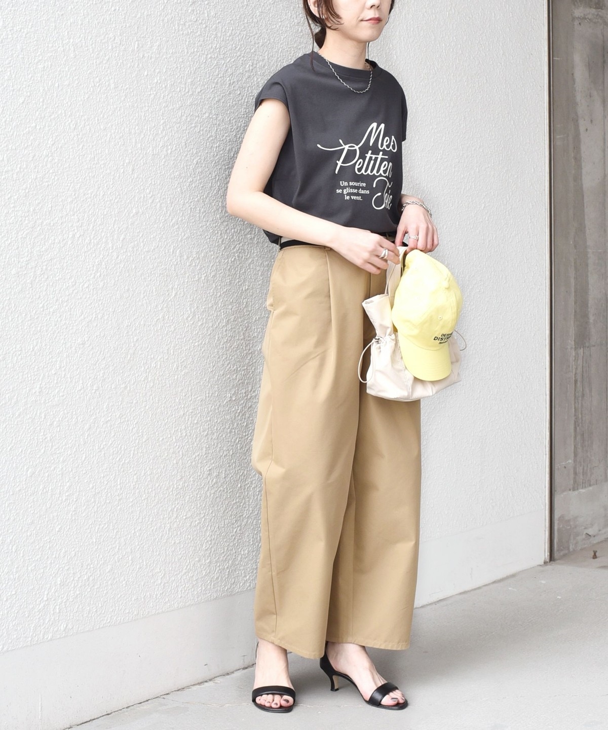 程よくゆとりのあるシルエットとフレンチスリーブが、カジュアルながらも女性らしい雰囲気で着用いただけます。