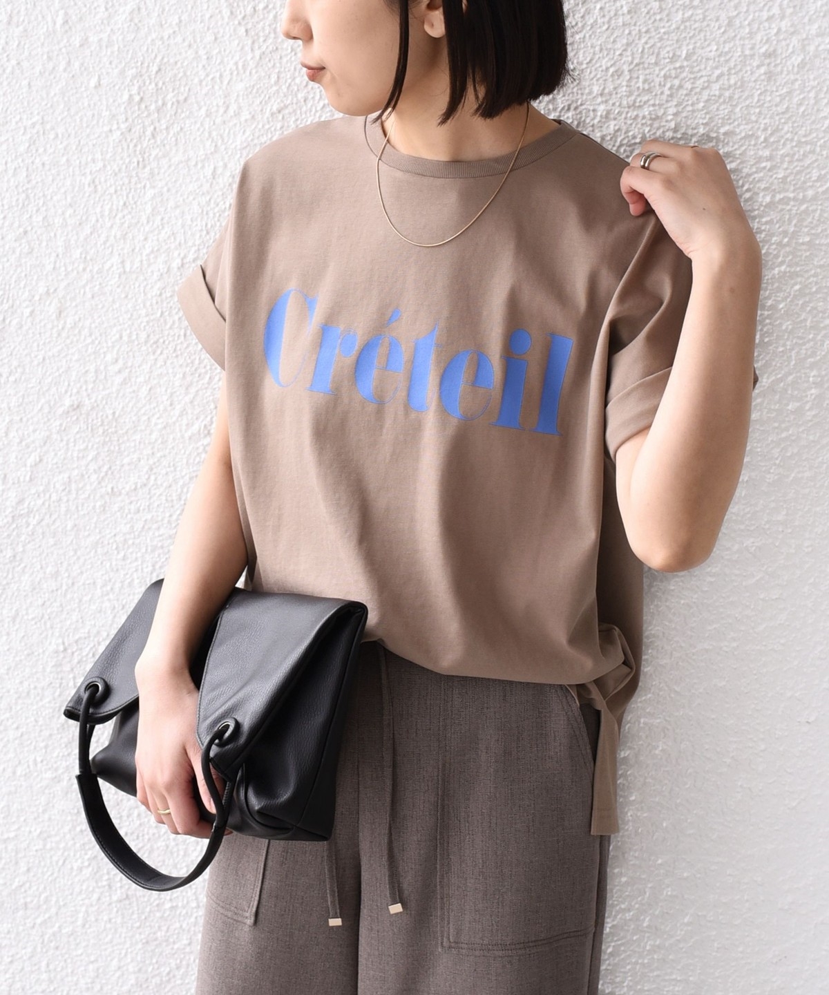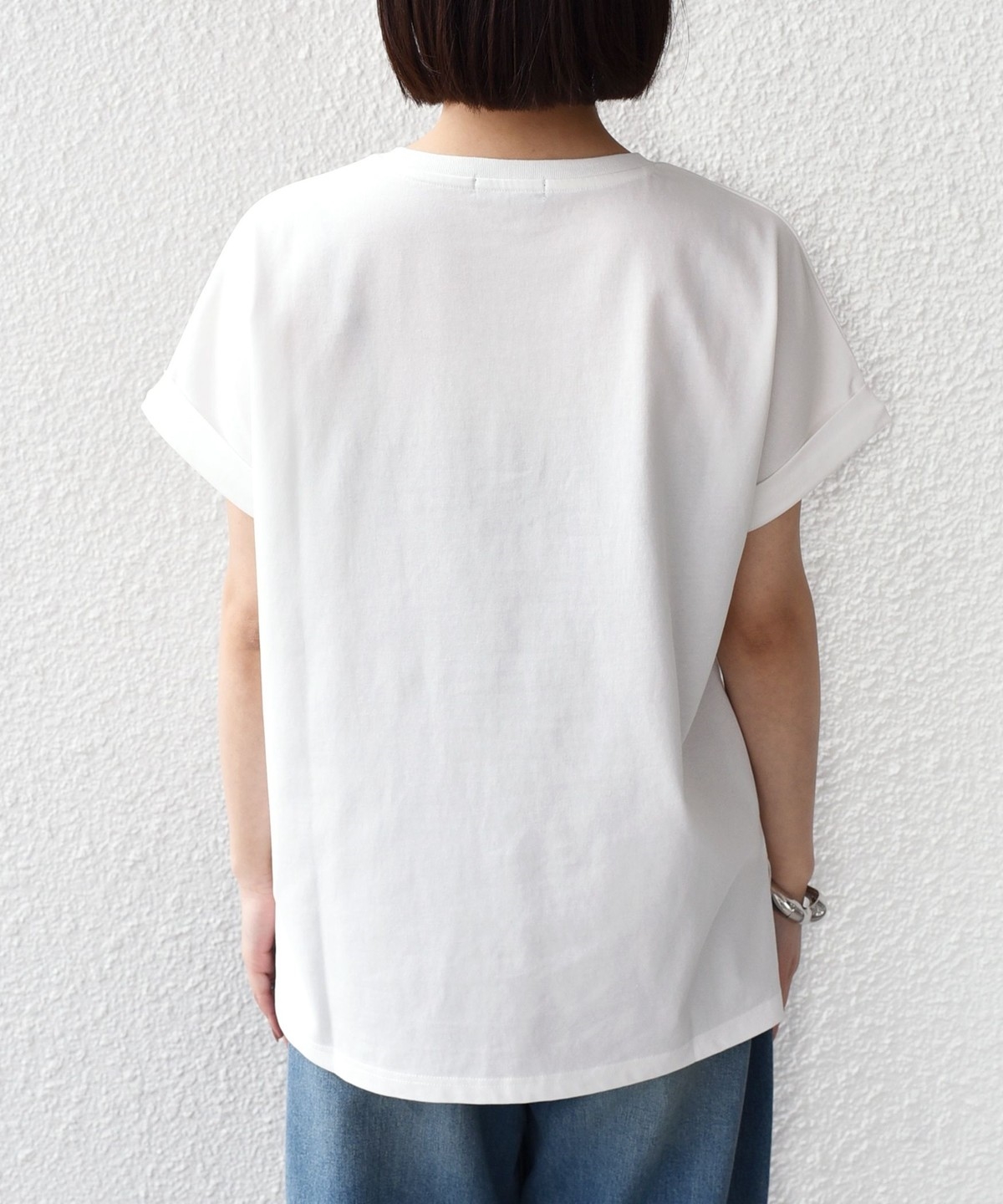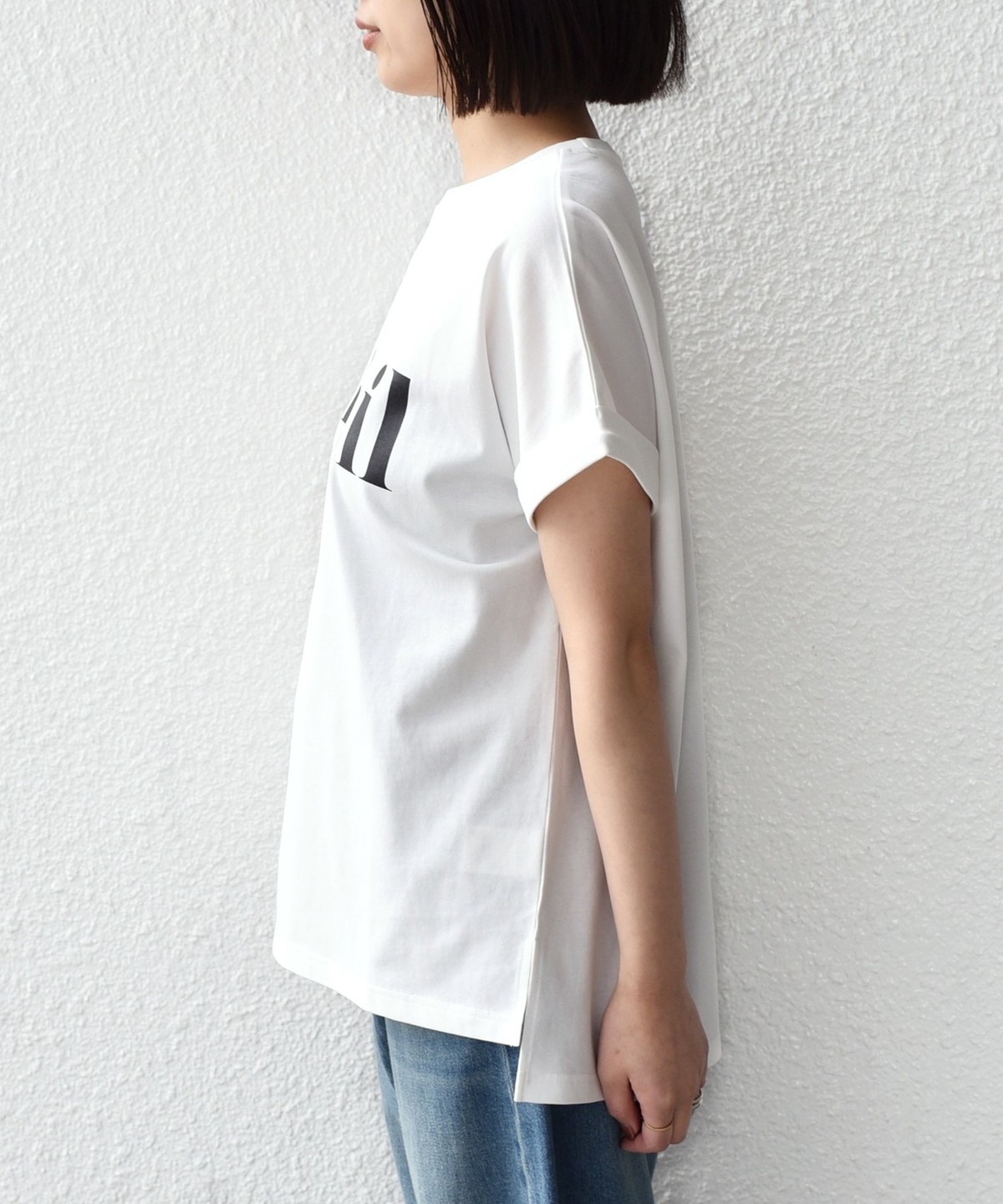 ゆったりとしたサイズ感とドルマンシルエットで、女性らしく着ていただけるTシャツ。