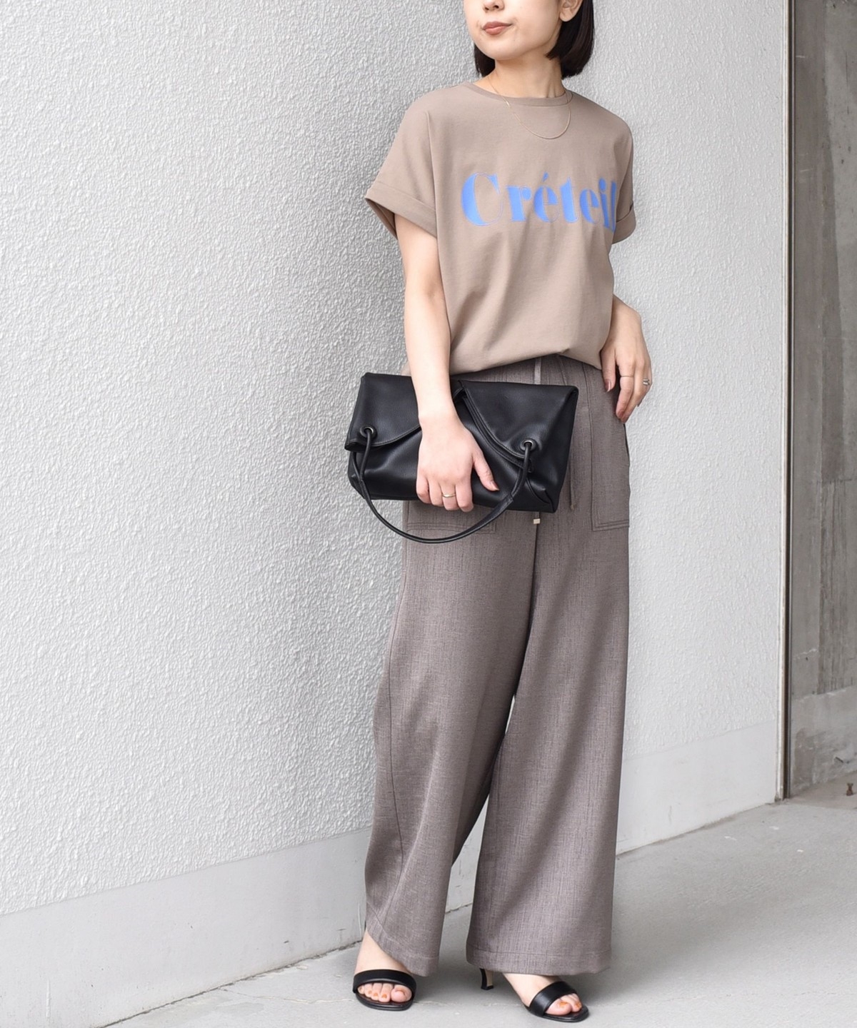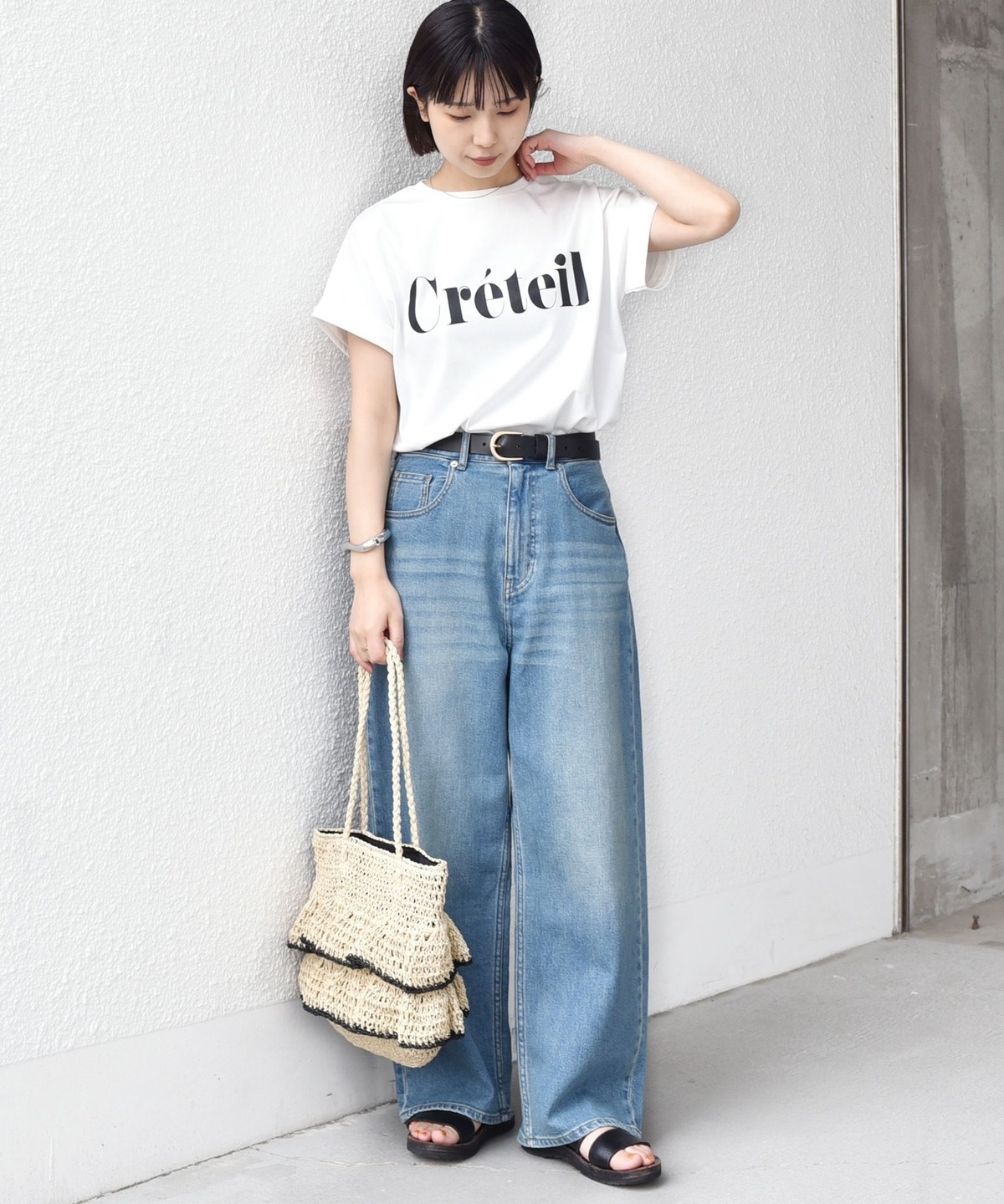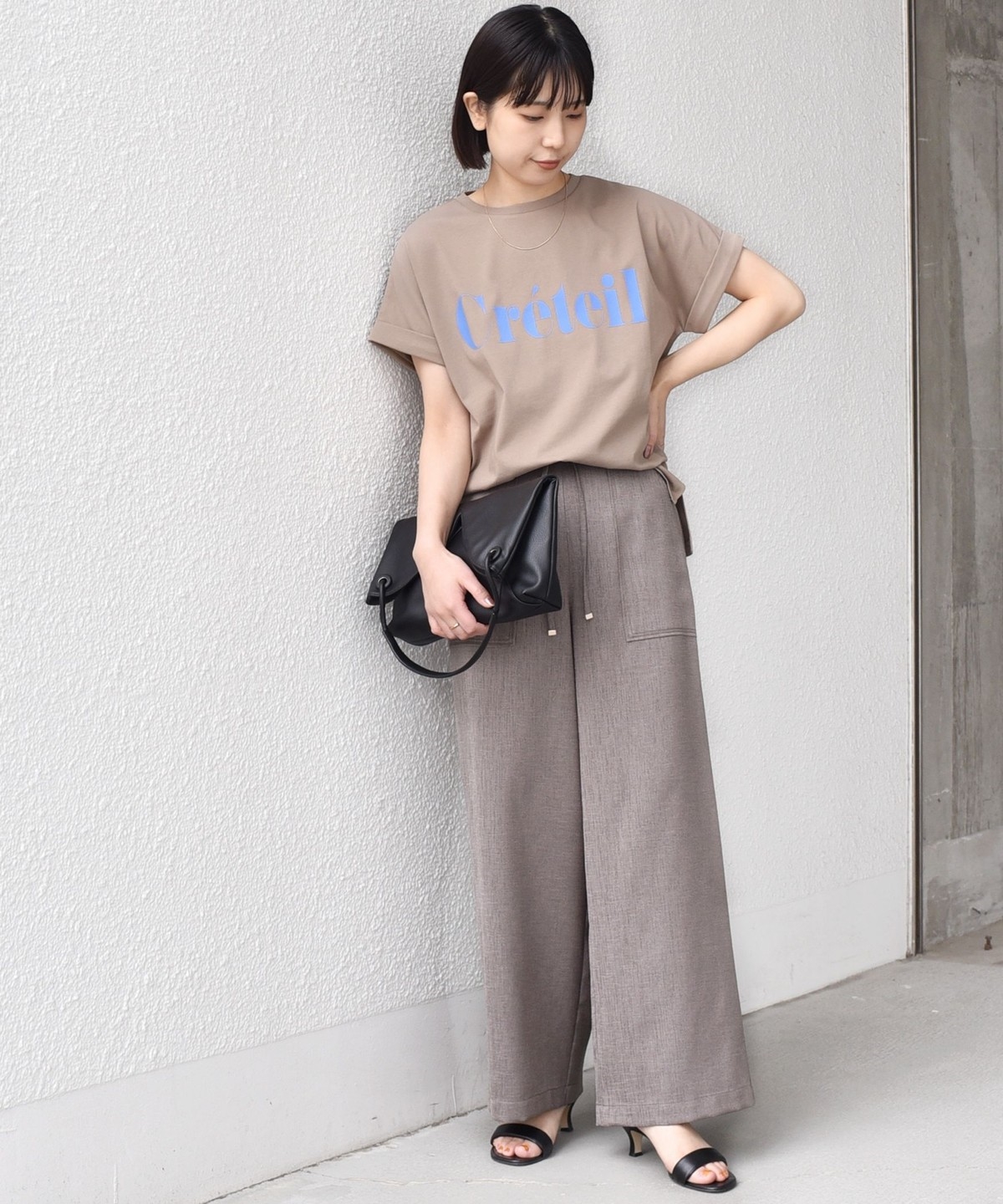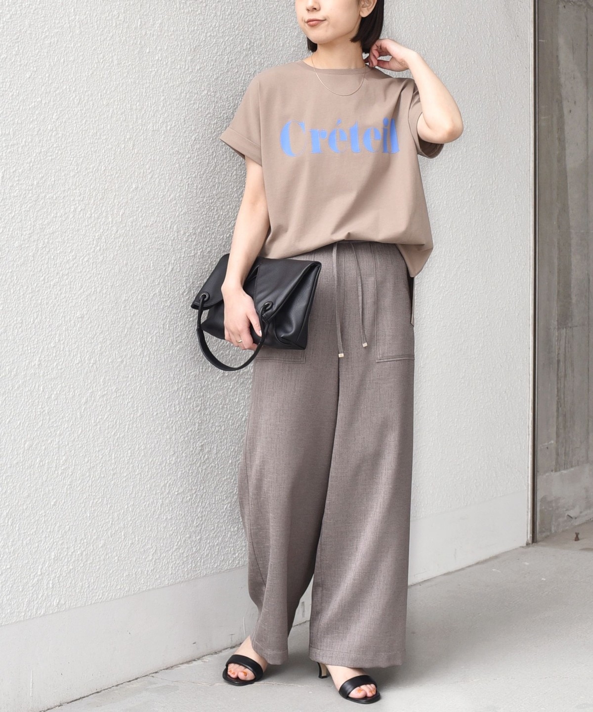 ゆったりとしたシルエットなので、タックインやフロントインしたアレンジもバランスよく決まります。