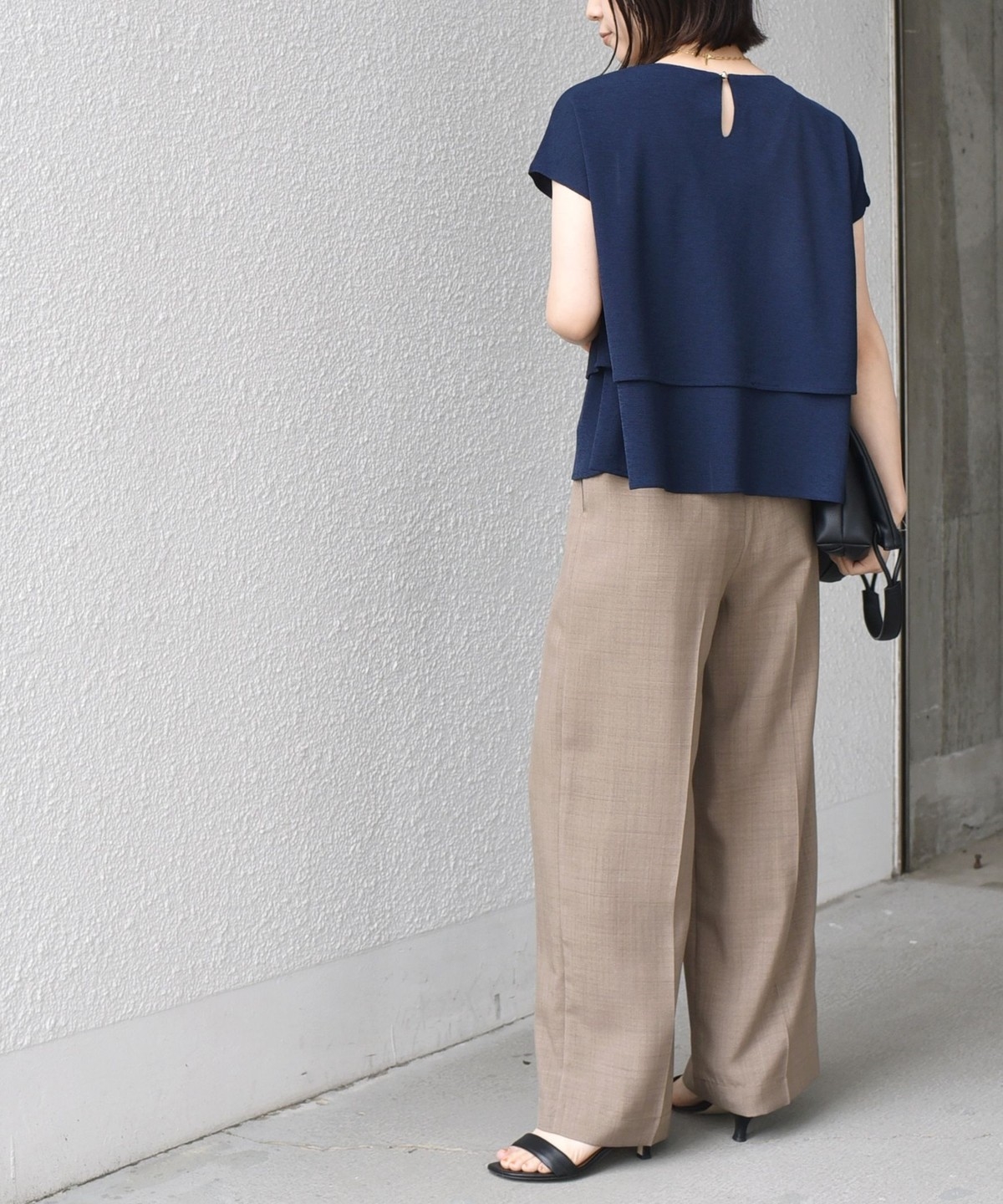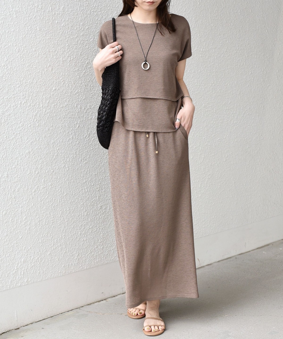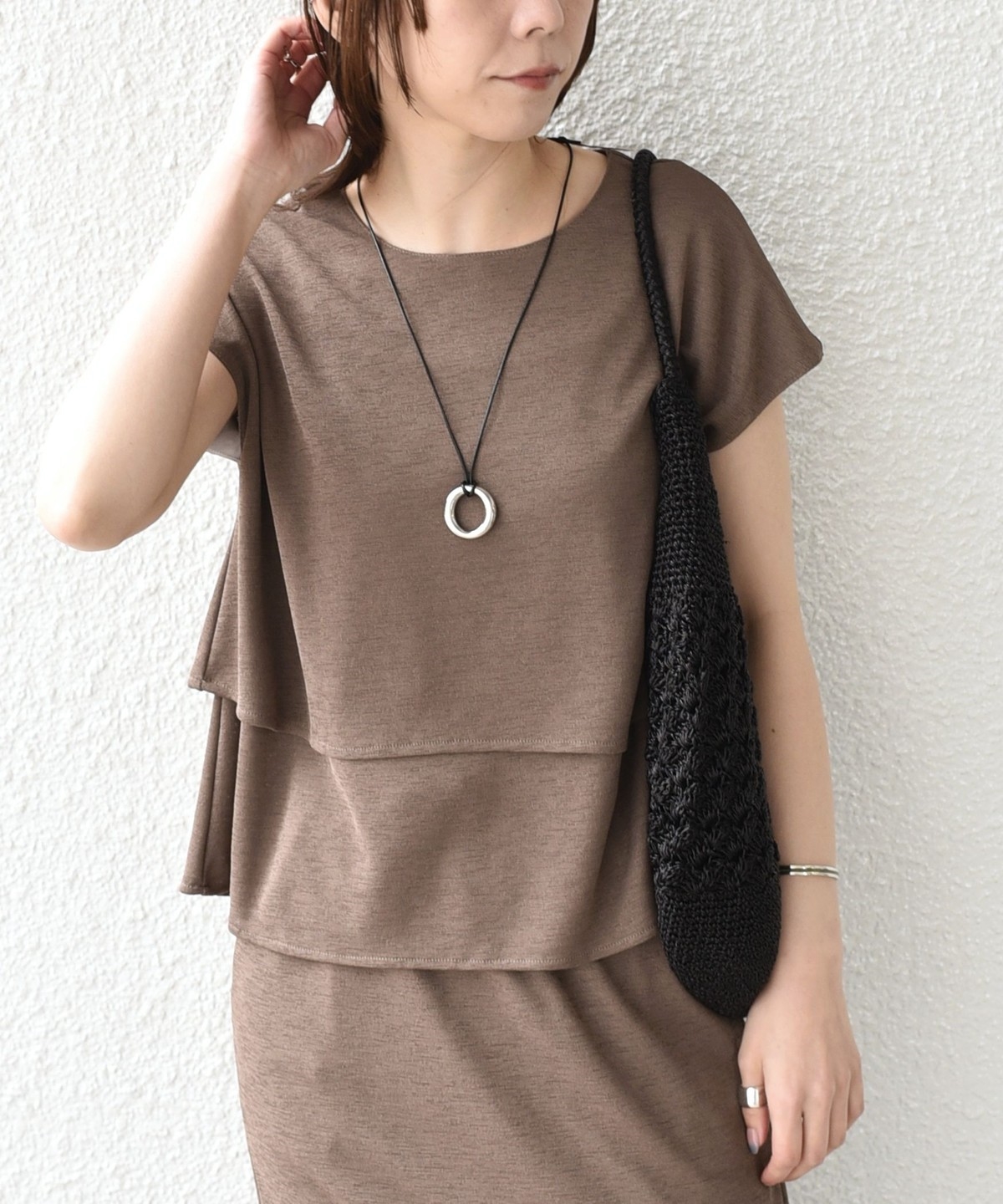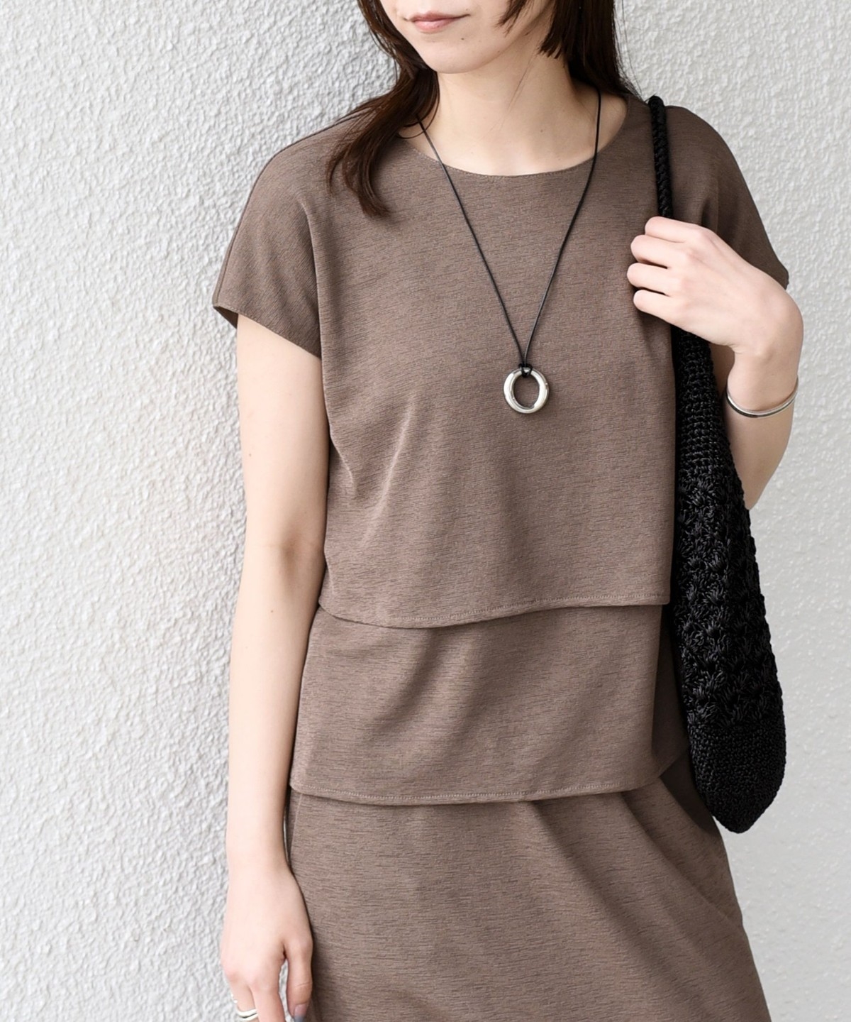 リネンのような表情のカットソー素材が、上品さと軽やかさを演出します。