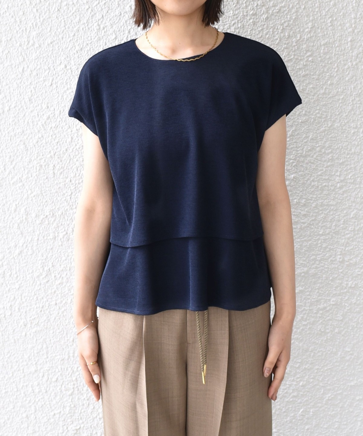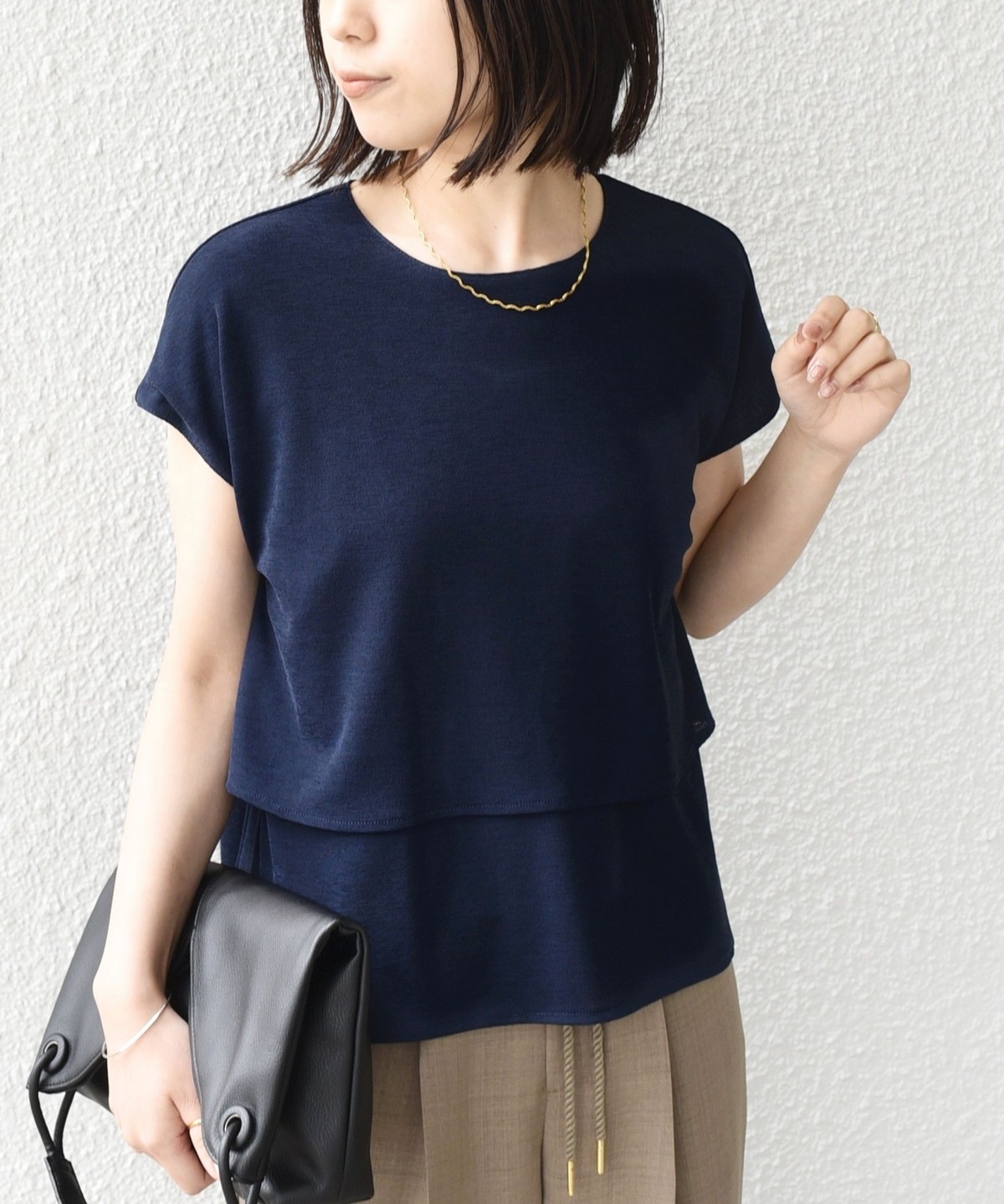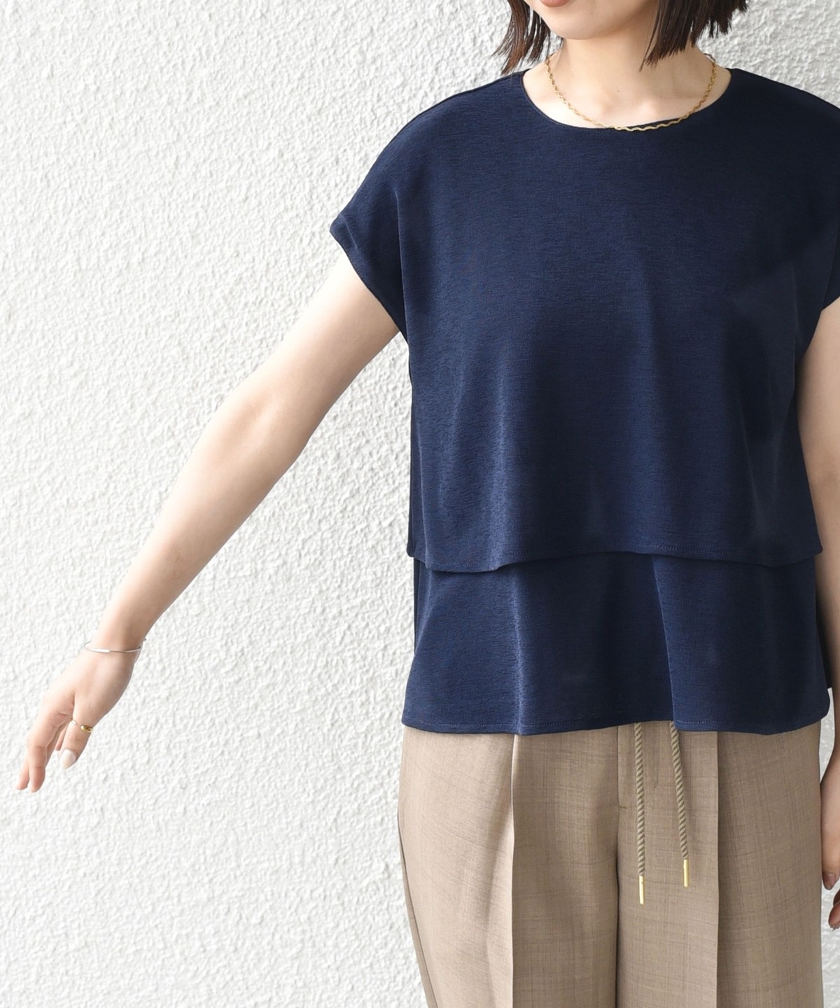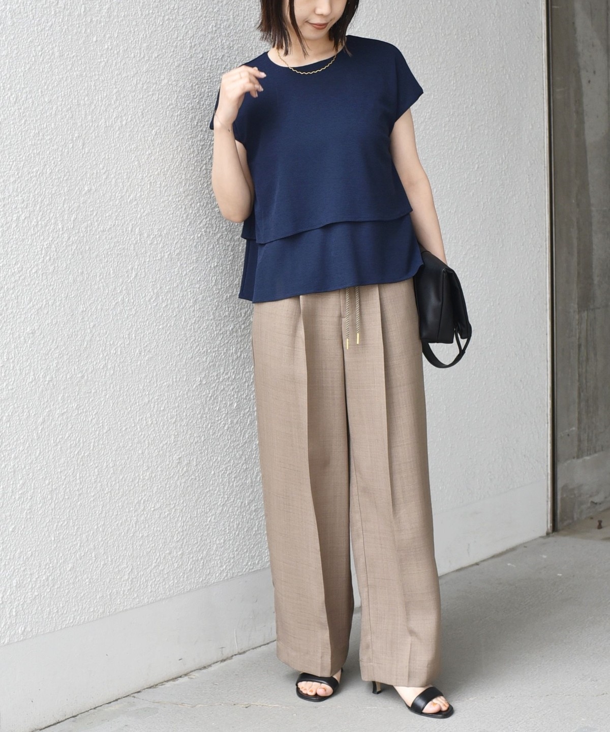 リネンのような表情のカットソー素材が、上品さと軽やかさを演出します。