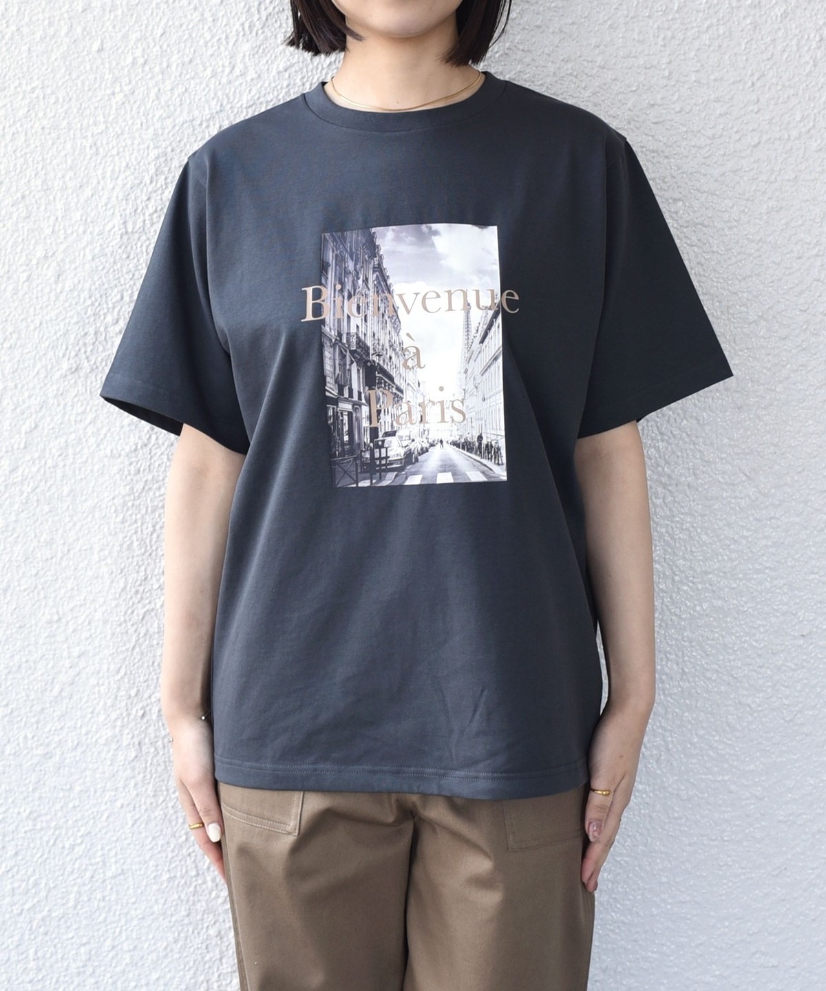 2. 《予約》SHIPS Colors:〈接触冷感・UVカット・洗濯機可能〉PARIS フォト TEE◆ ダークグレー