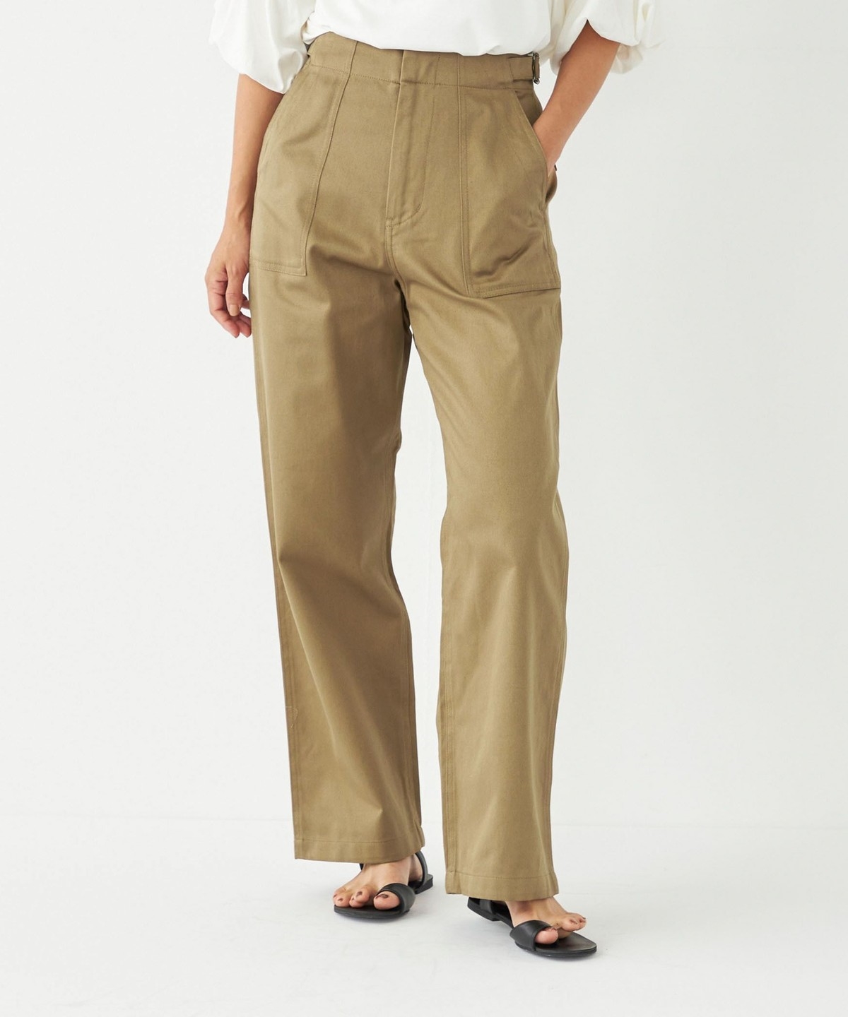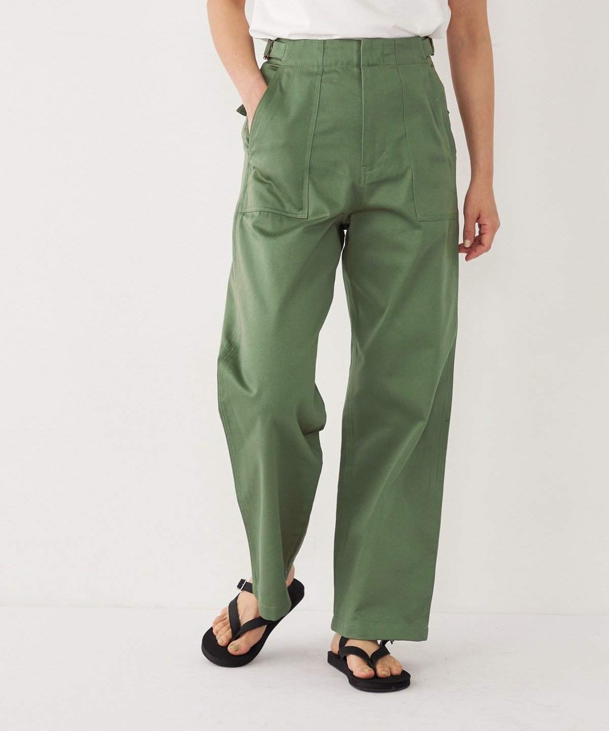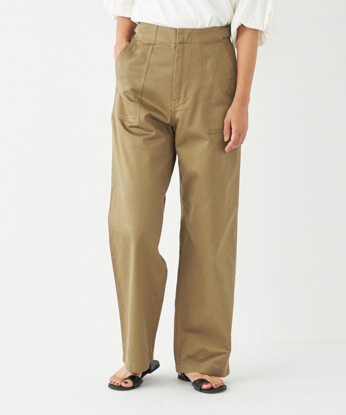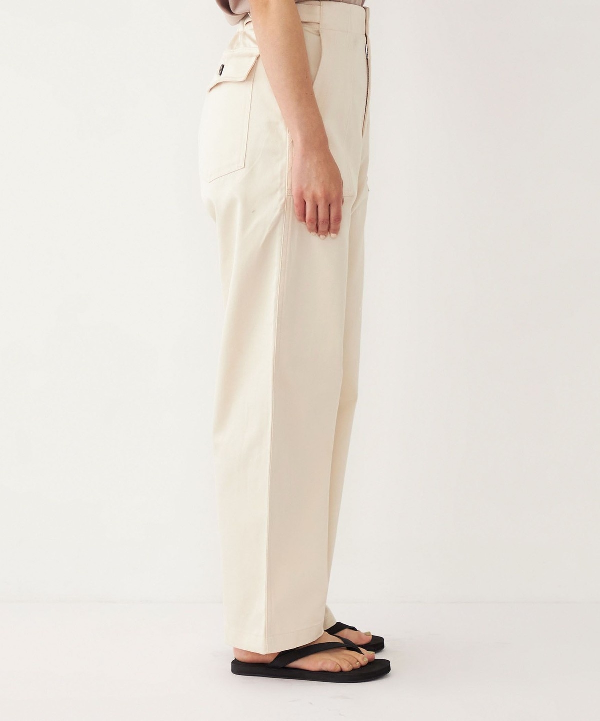 ヒップ下から真っすぐ落ちる、ストレートワイドシルエットが特徴。