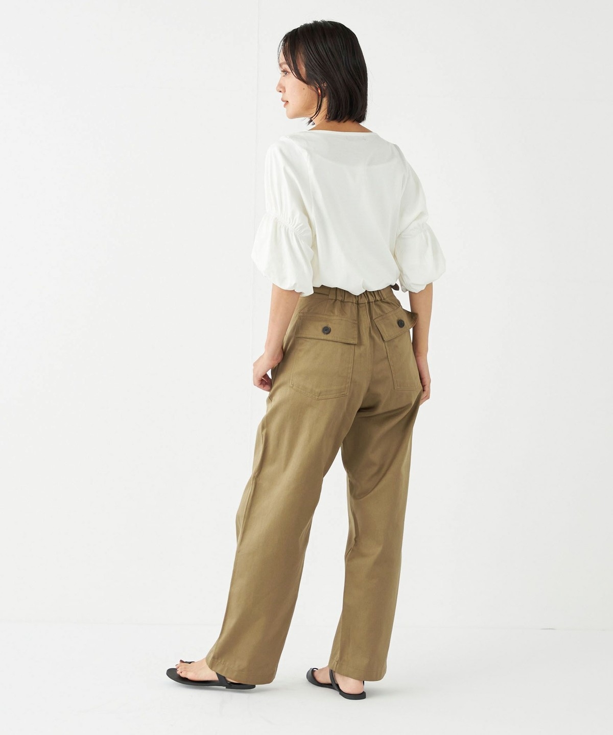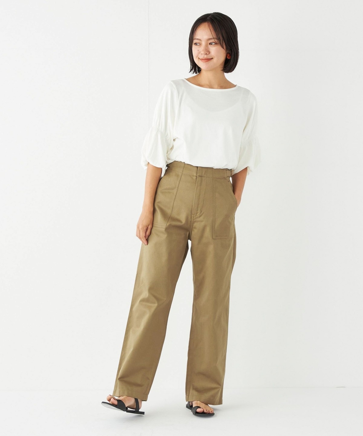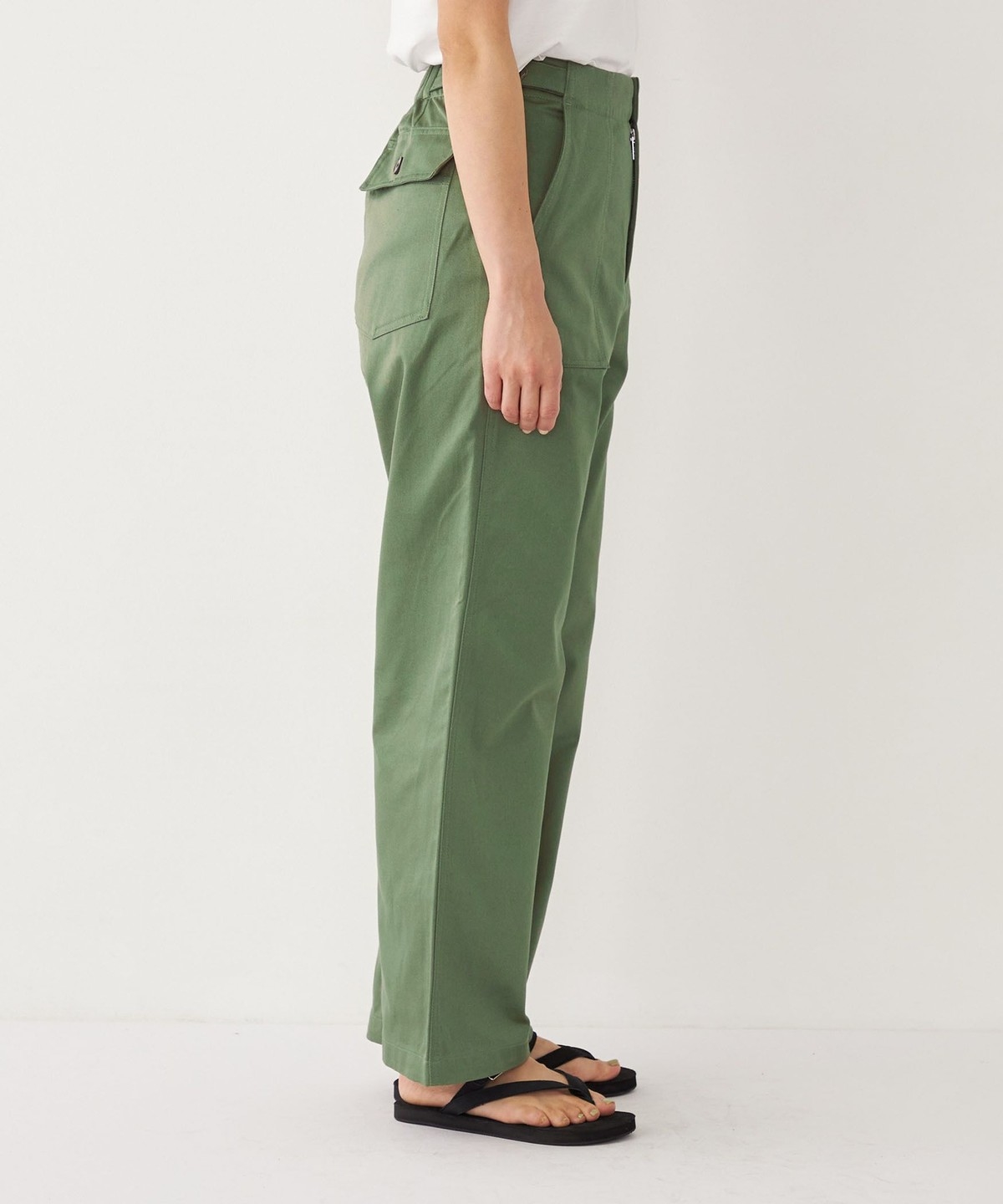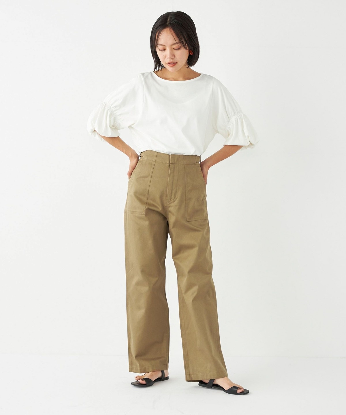 ヒップ下から真っすぐ落ちる、ストレートワイドシルエットが特徴。